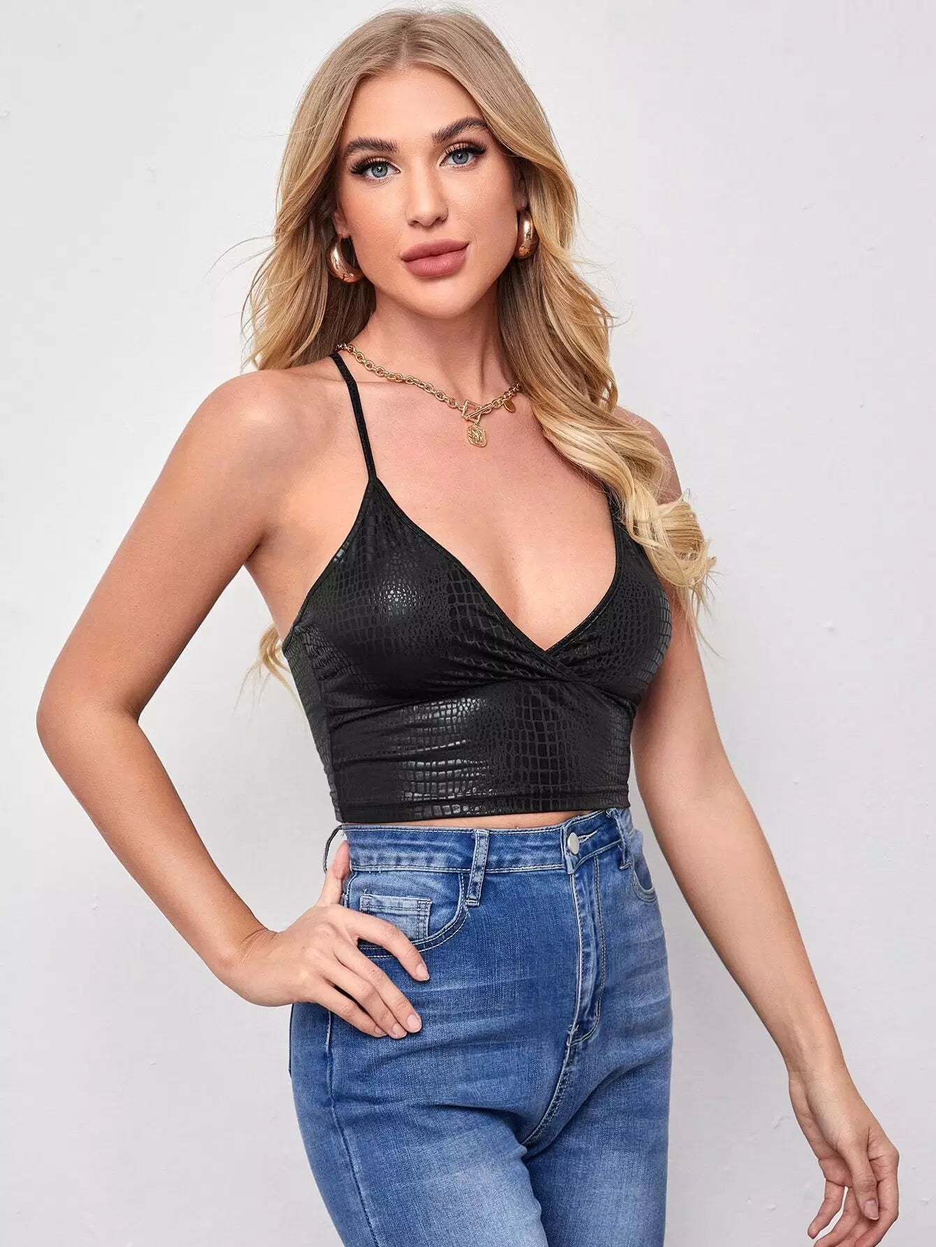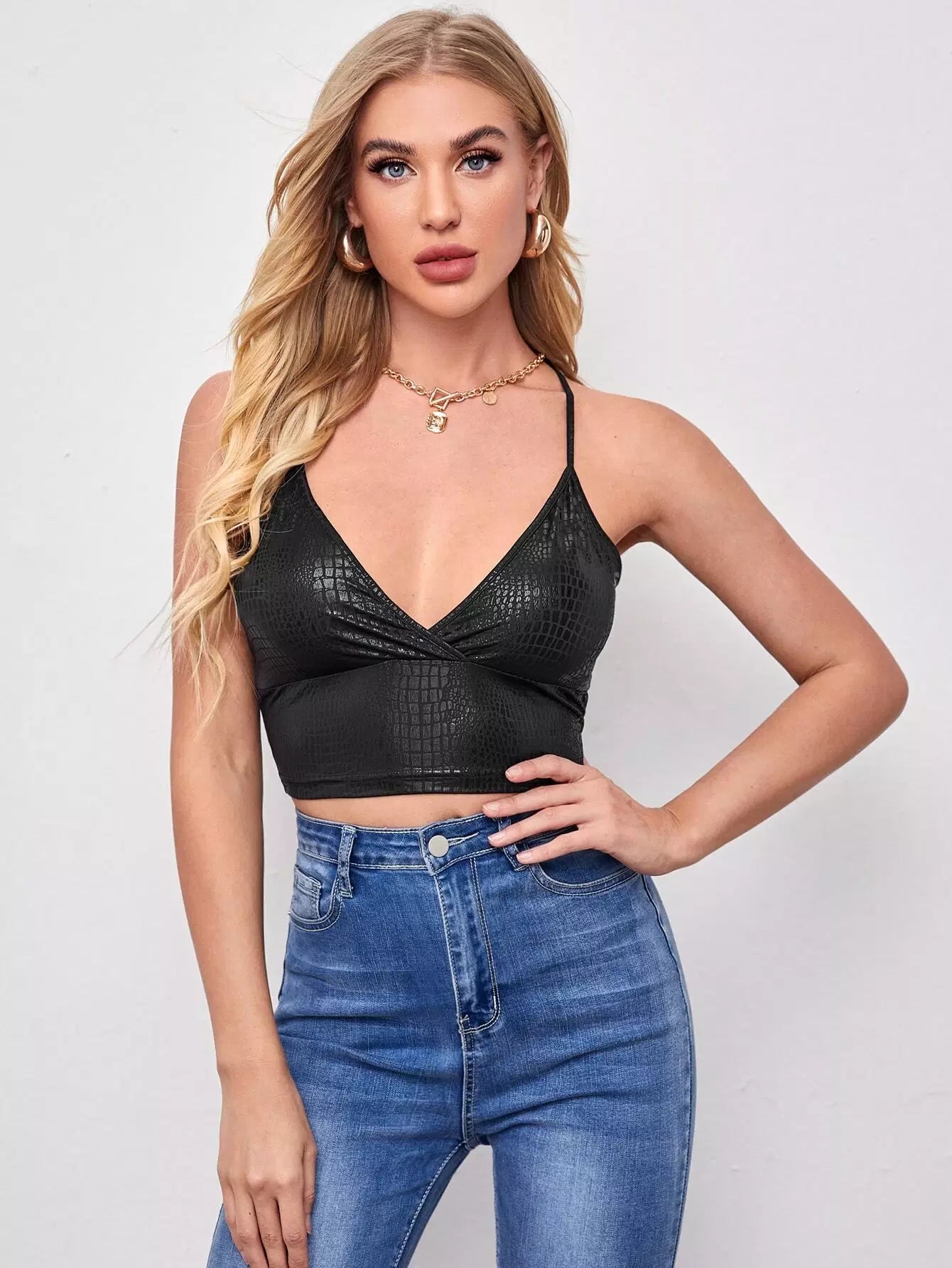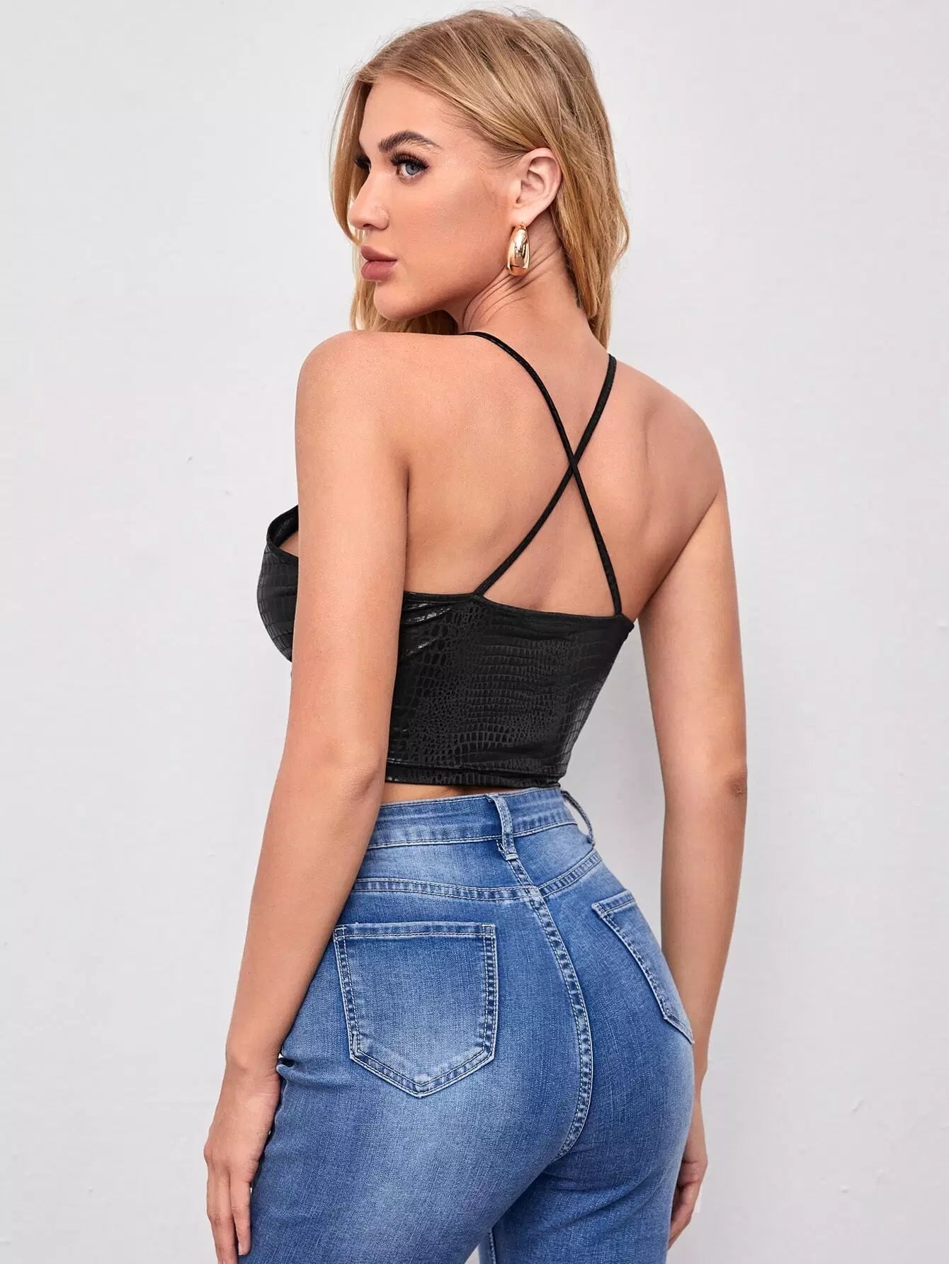قميص كامي منقوش بنقشة جلد التمساح مع ظهر متقاطع