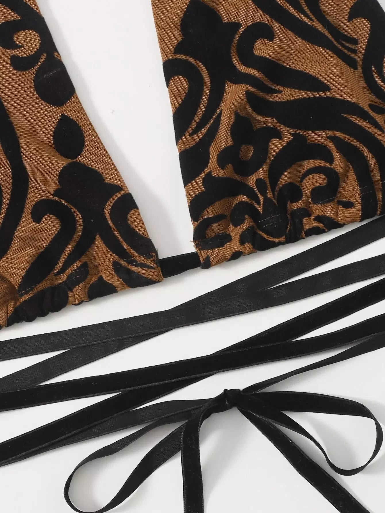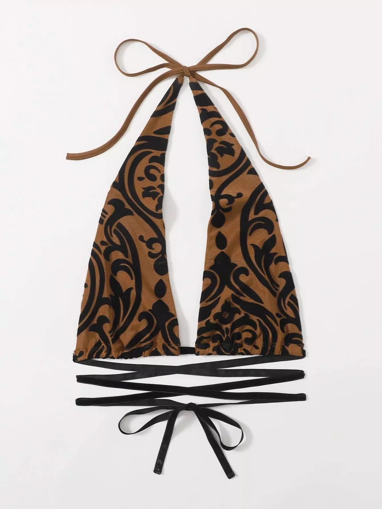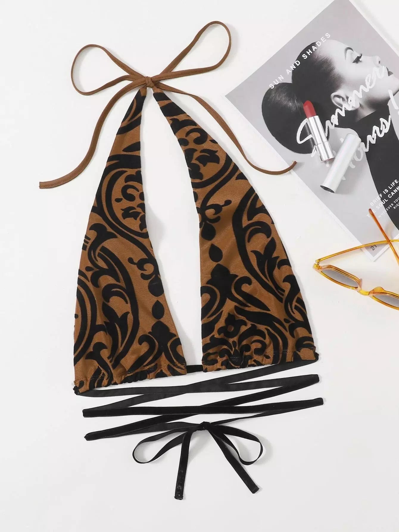 بلوزة كريسكروس بربطة عنق عارية الظهر مطبوع عليها رسومات جرافيك