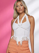 بلوزة كروشيه محبوكة من الكروشيه بفتحة منسدلة
