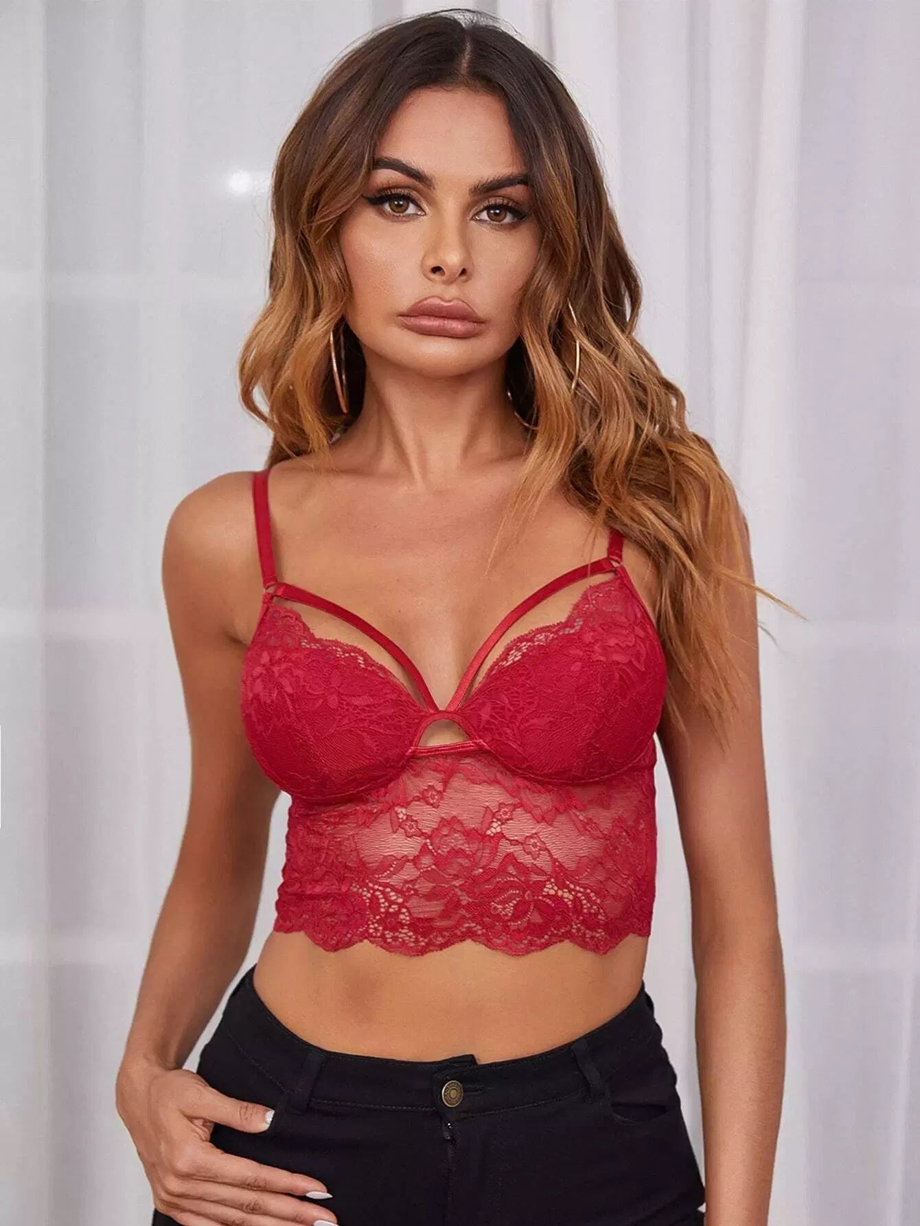 توب قصير من الدانتيل المقطوع