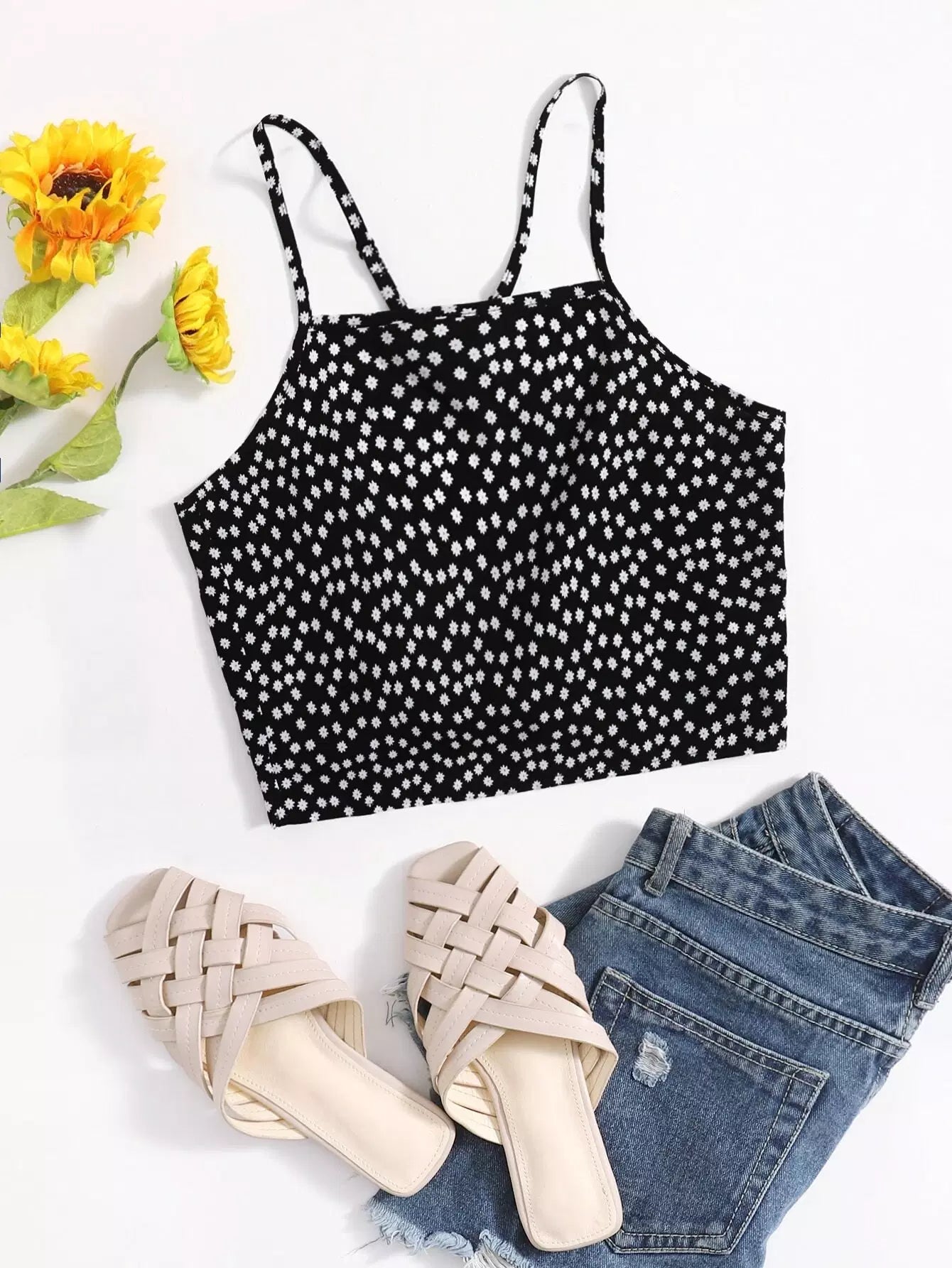 بلوزة كامي مزينة بنقشة زهور صغيرة