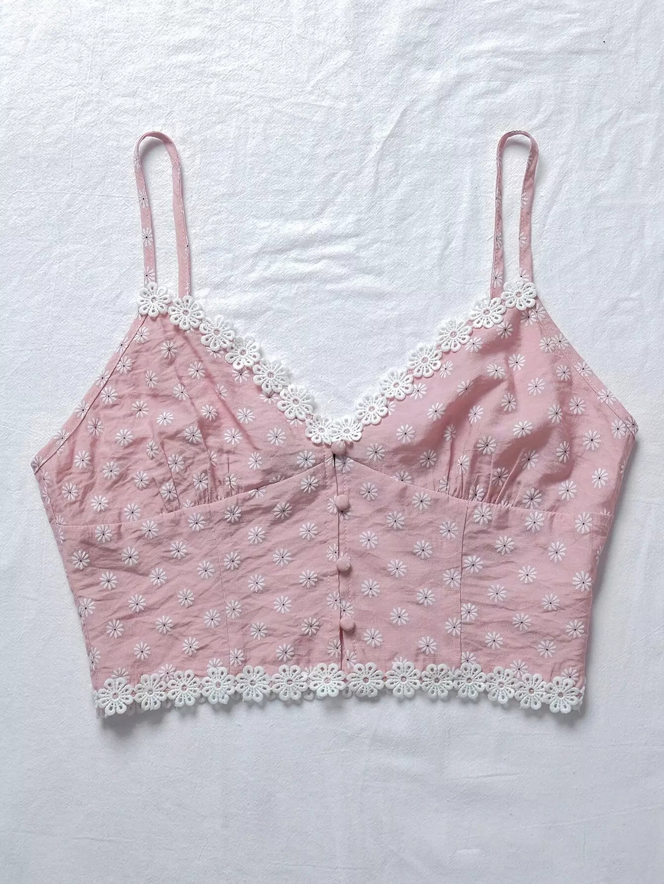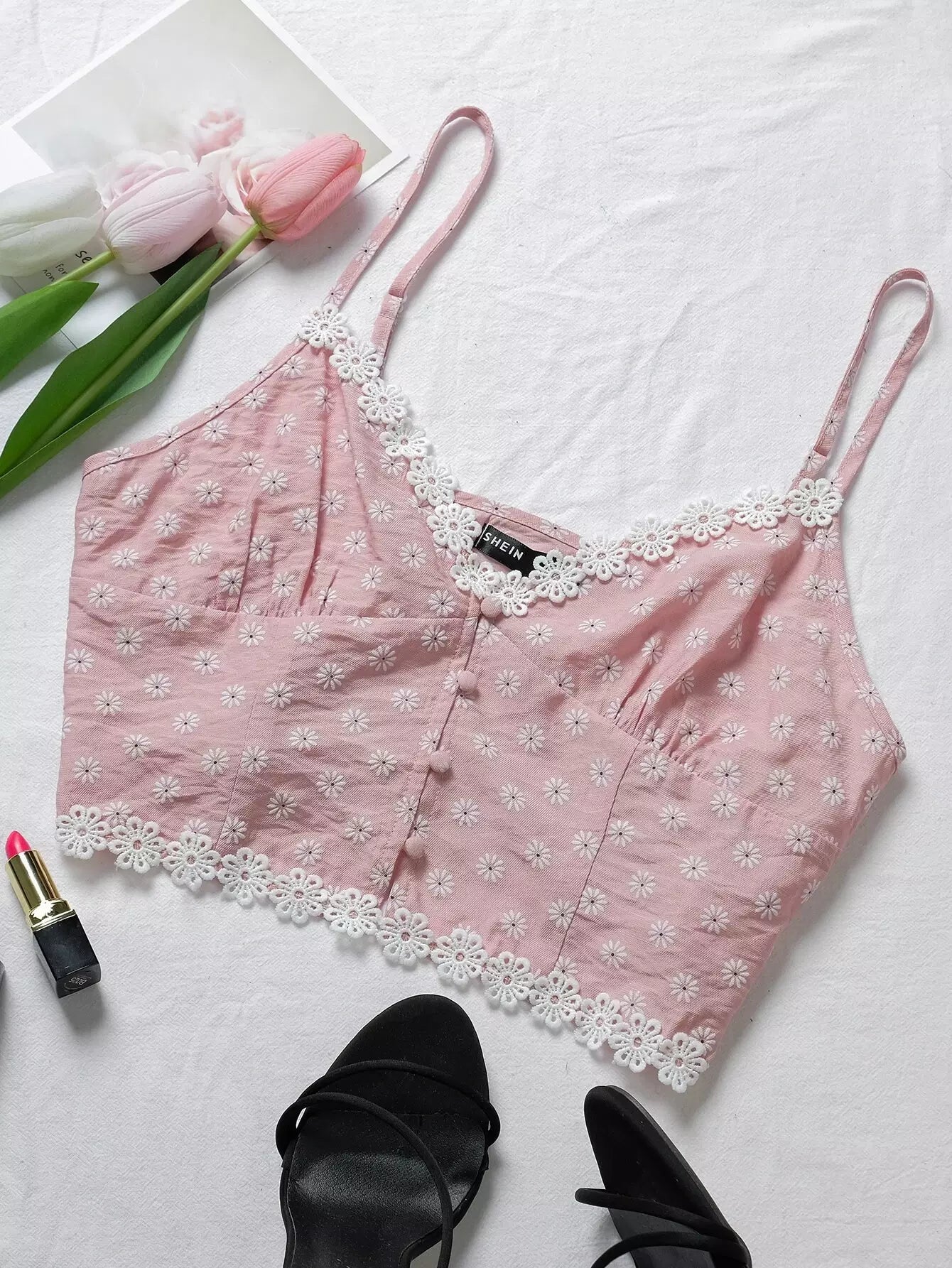 توب كامي مزين بتطريزات زهور ديتسي مزخرف