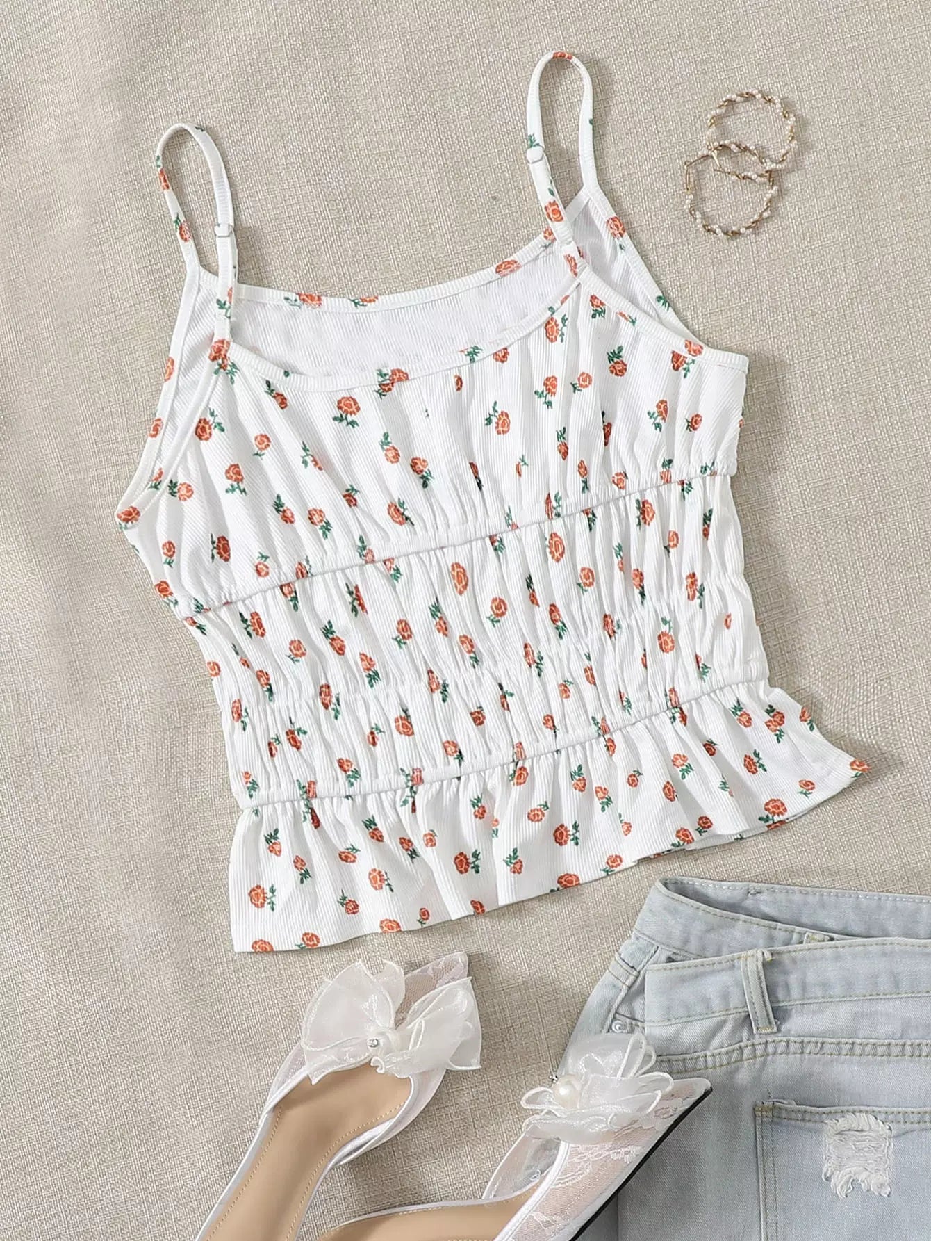 بلوزة كامي مزينة بنقشة زهور صغيرة