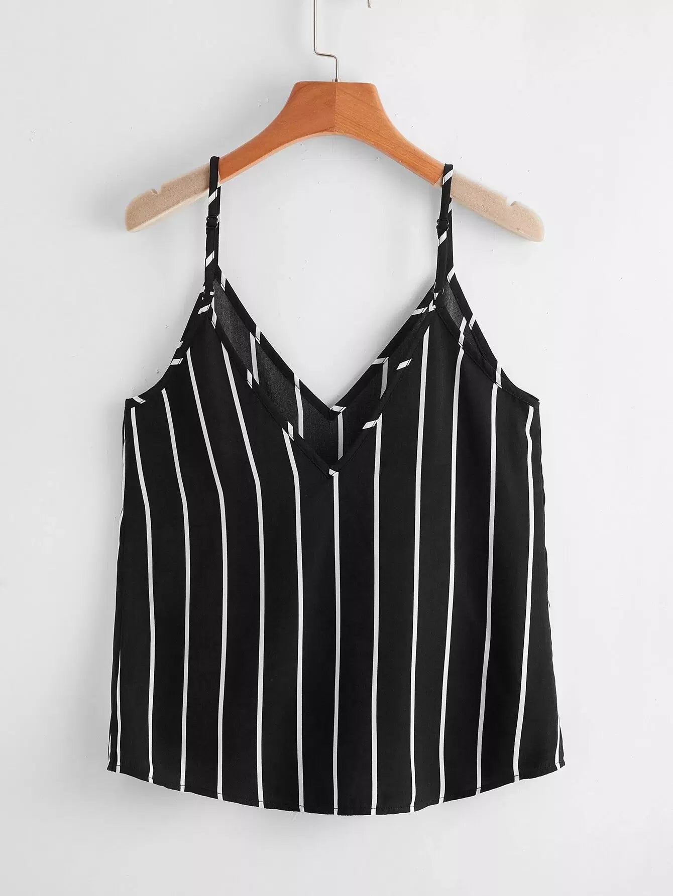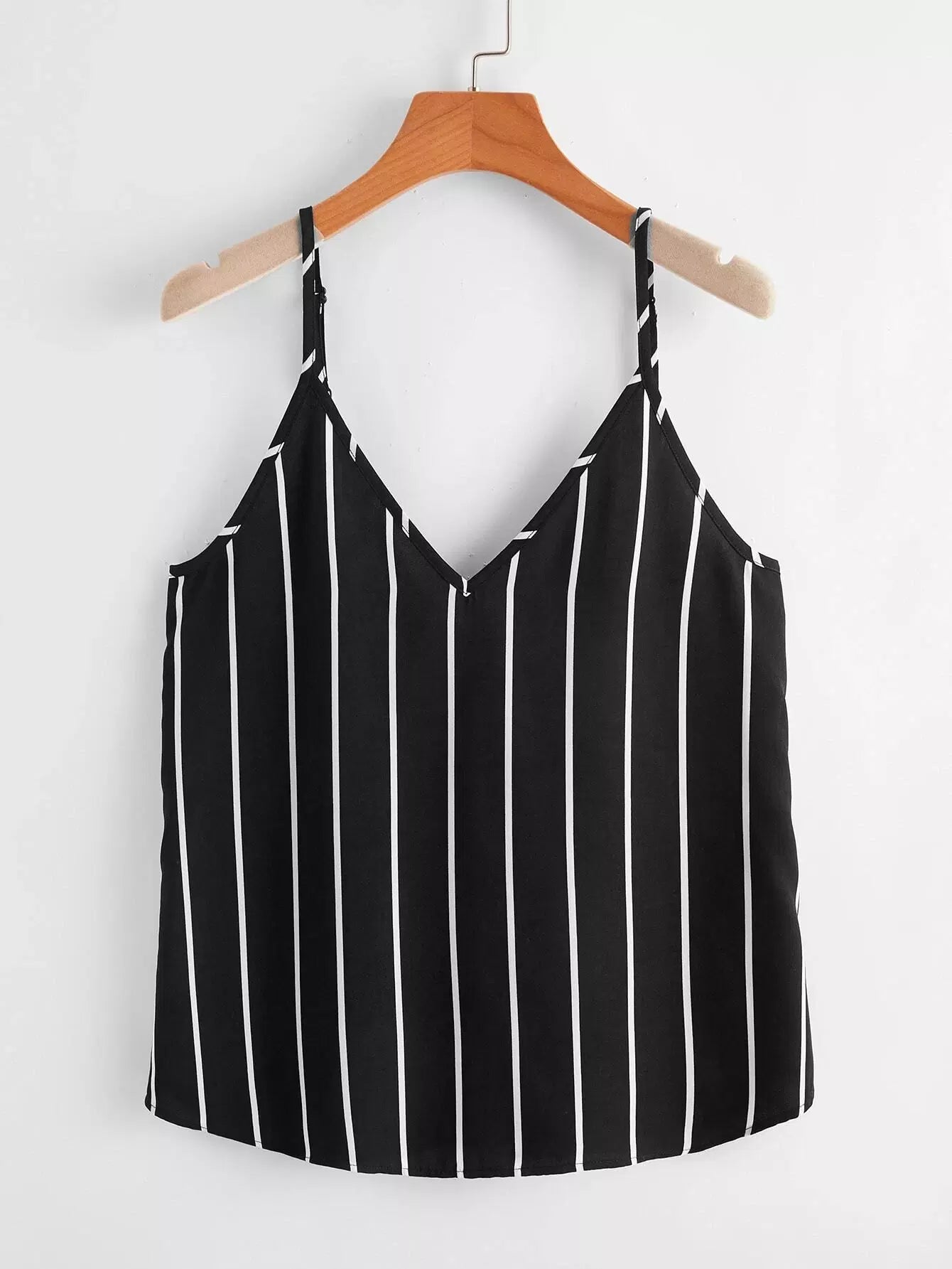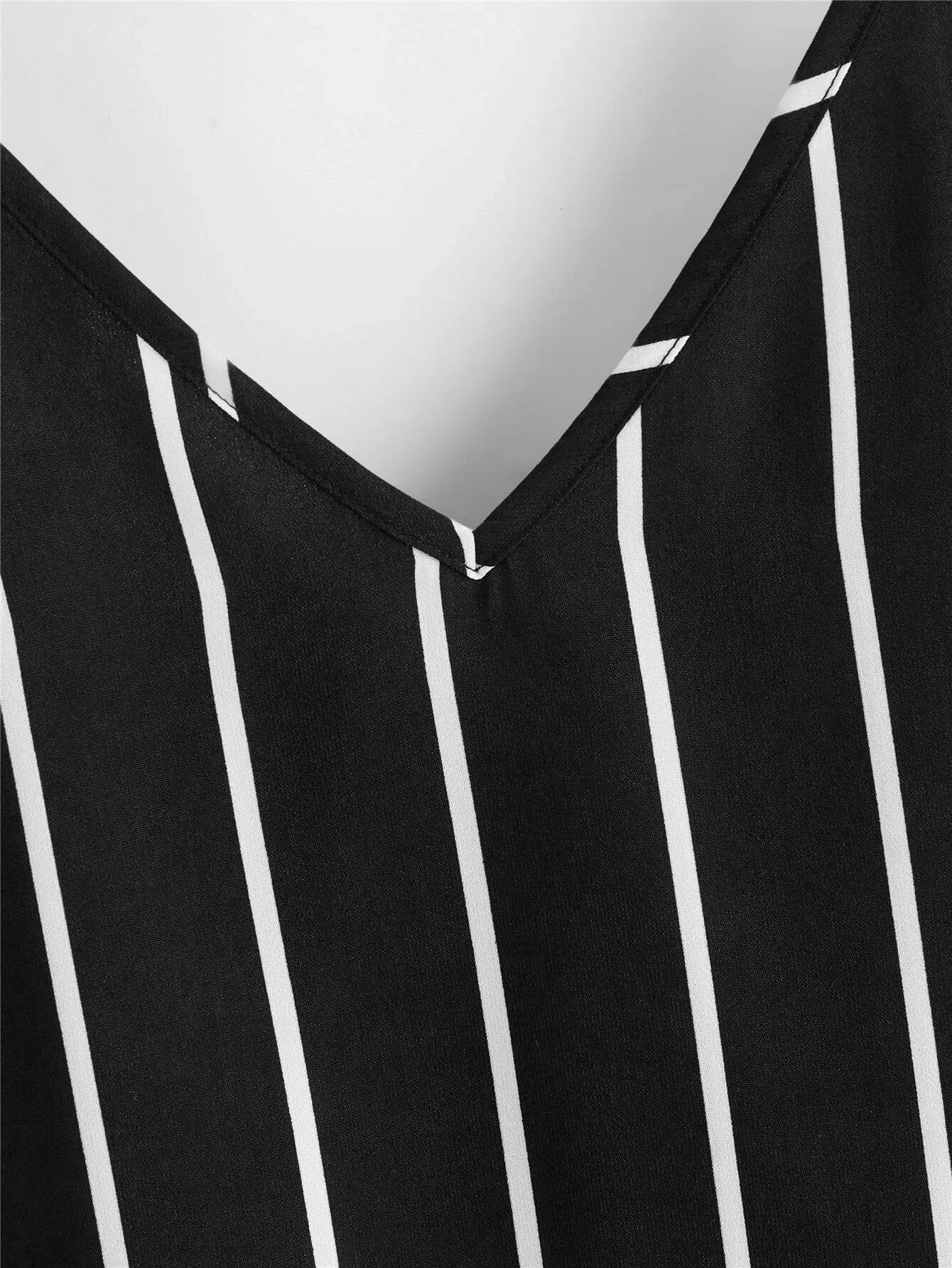 بلوزة برقبة مزدوجة على شكل V مخططة على شكل V