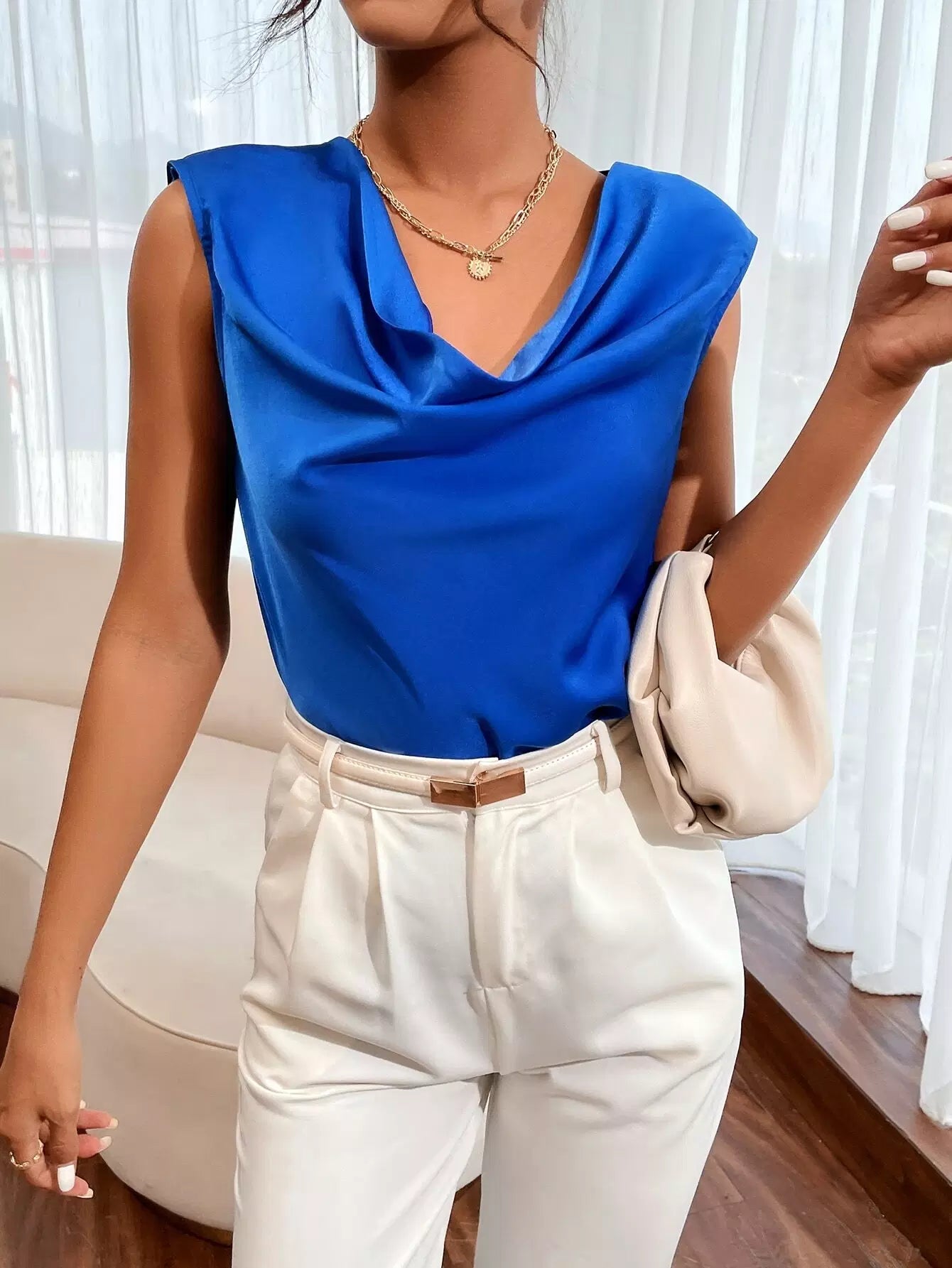 قميص بدون أكتاف بياقة منسدلة على الكتف من الساتان