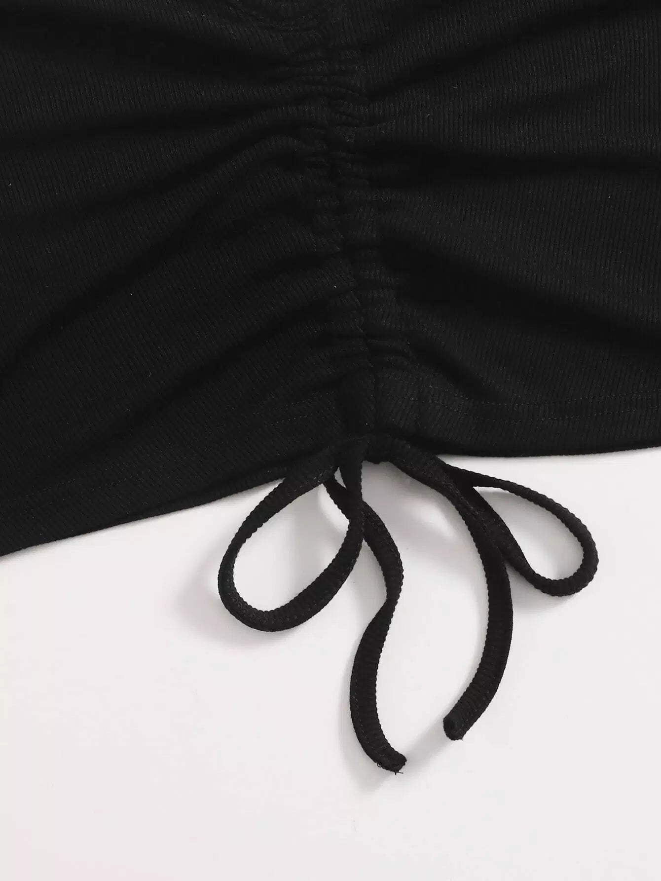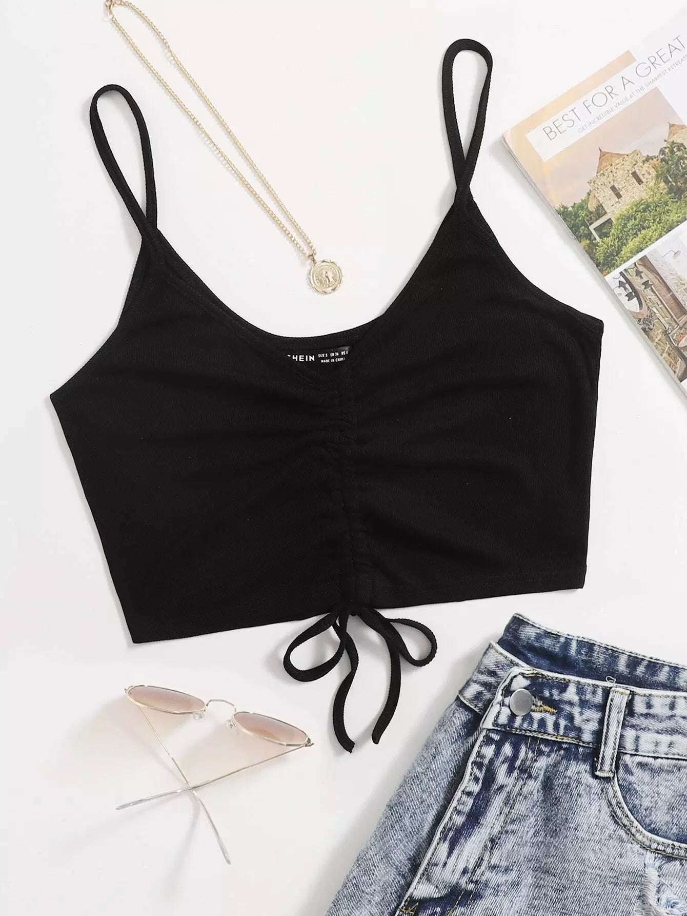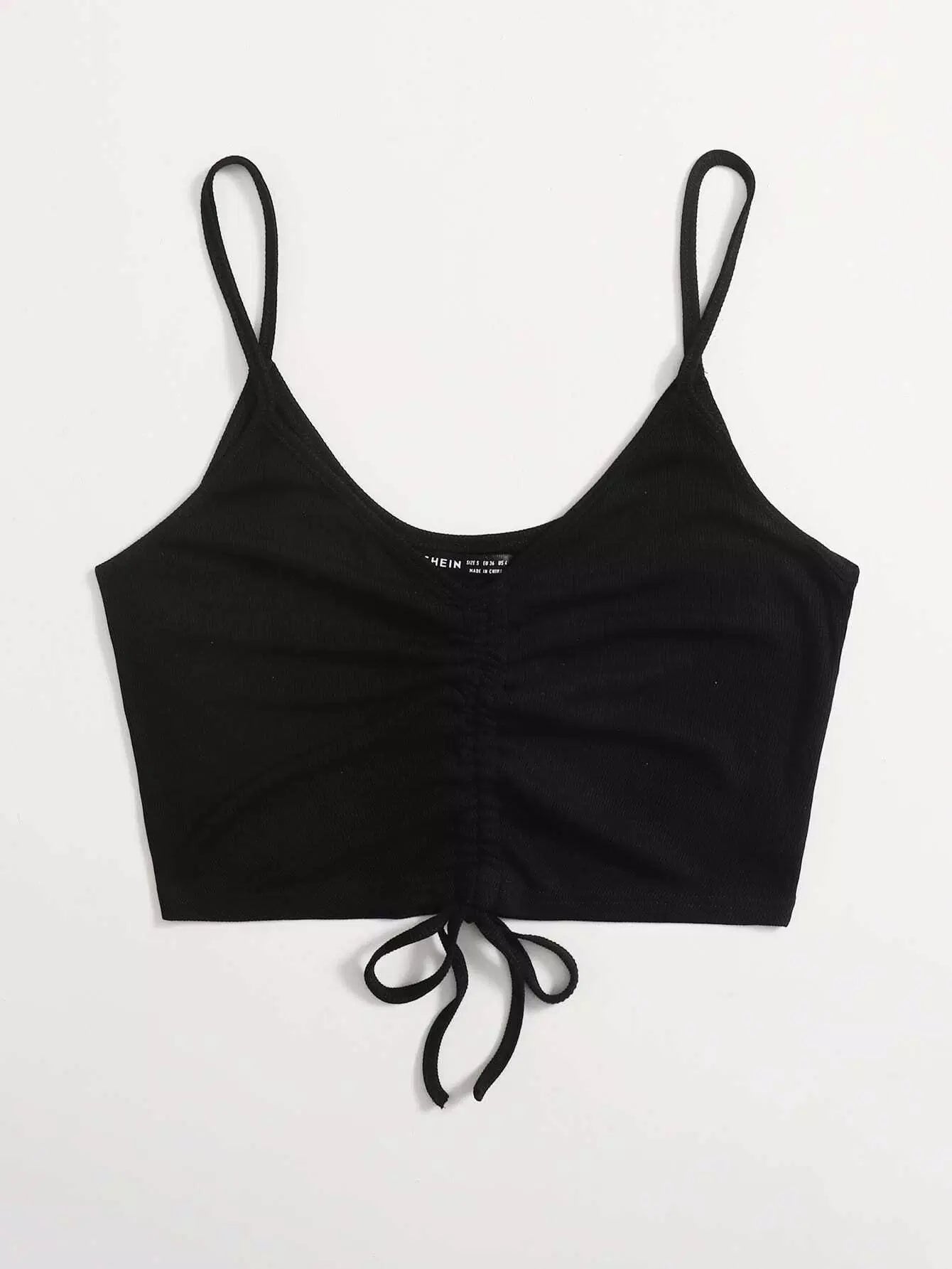 بلوزة كامي محبوكة بضلع أمامي ورباط سحب
