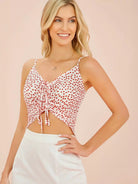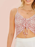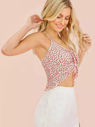 قميص قصير مزين بعقدة أمامية برباط من الأمام بشريط من الخلف مزين بنقشة زهور