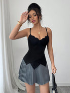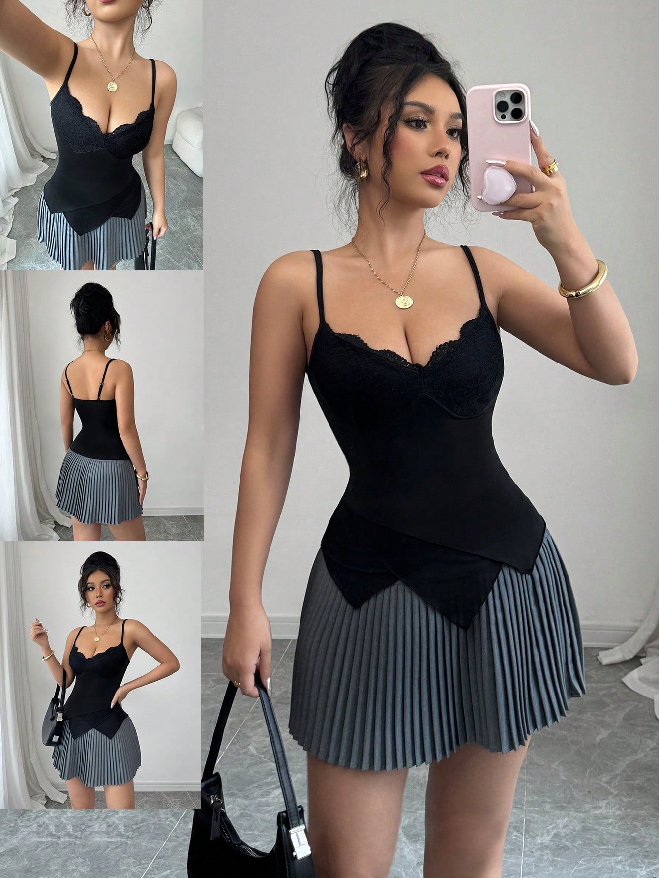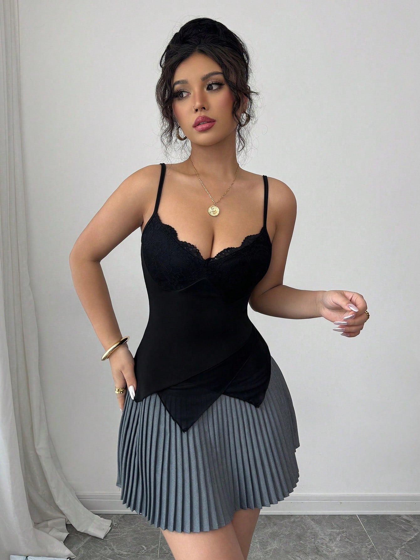 women Elenzga Lace Patchwork Women Spaghetti Strap Asymmetrical Hem Tank Top