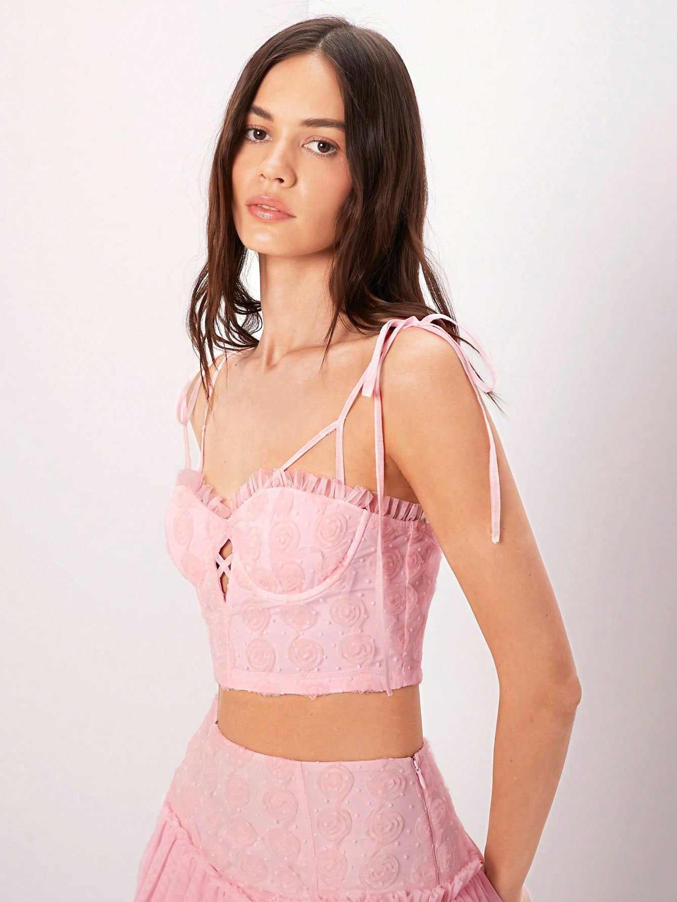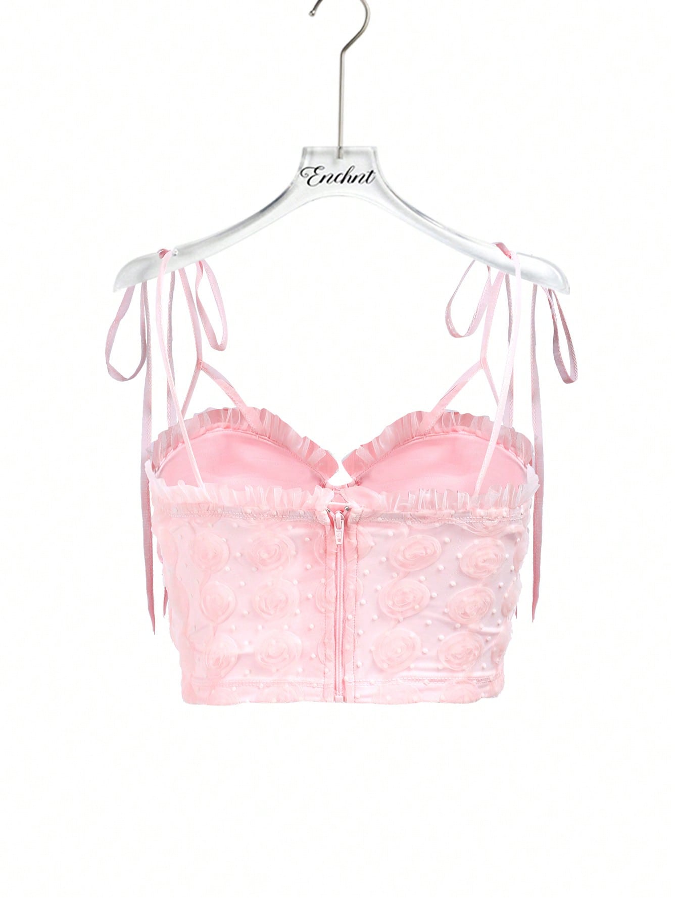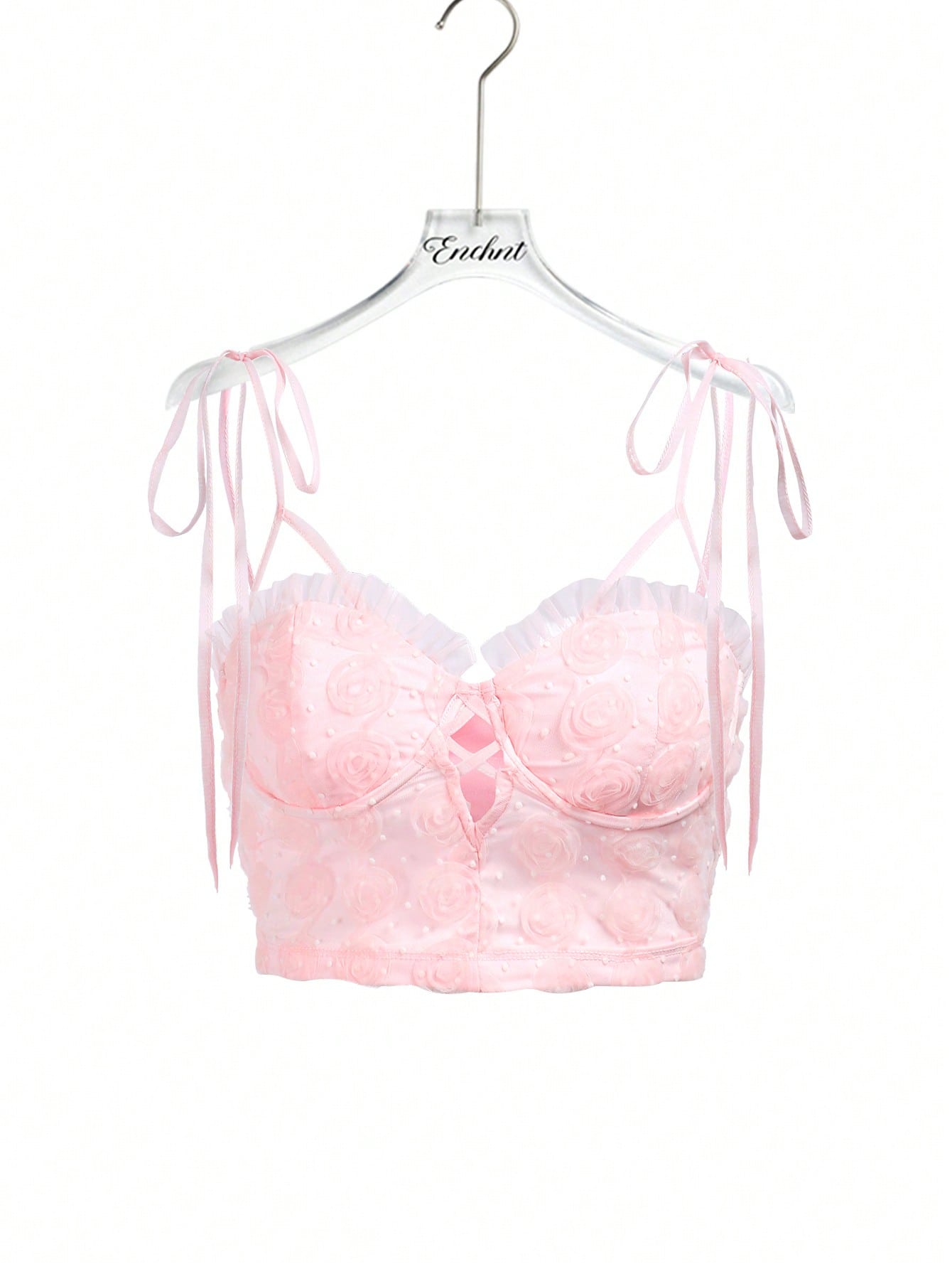 Enchnt Women's Jacquard Frill Trimmed Camisole Tank Top