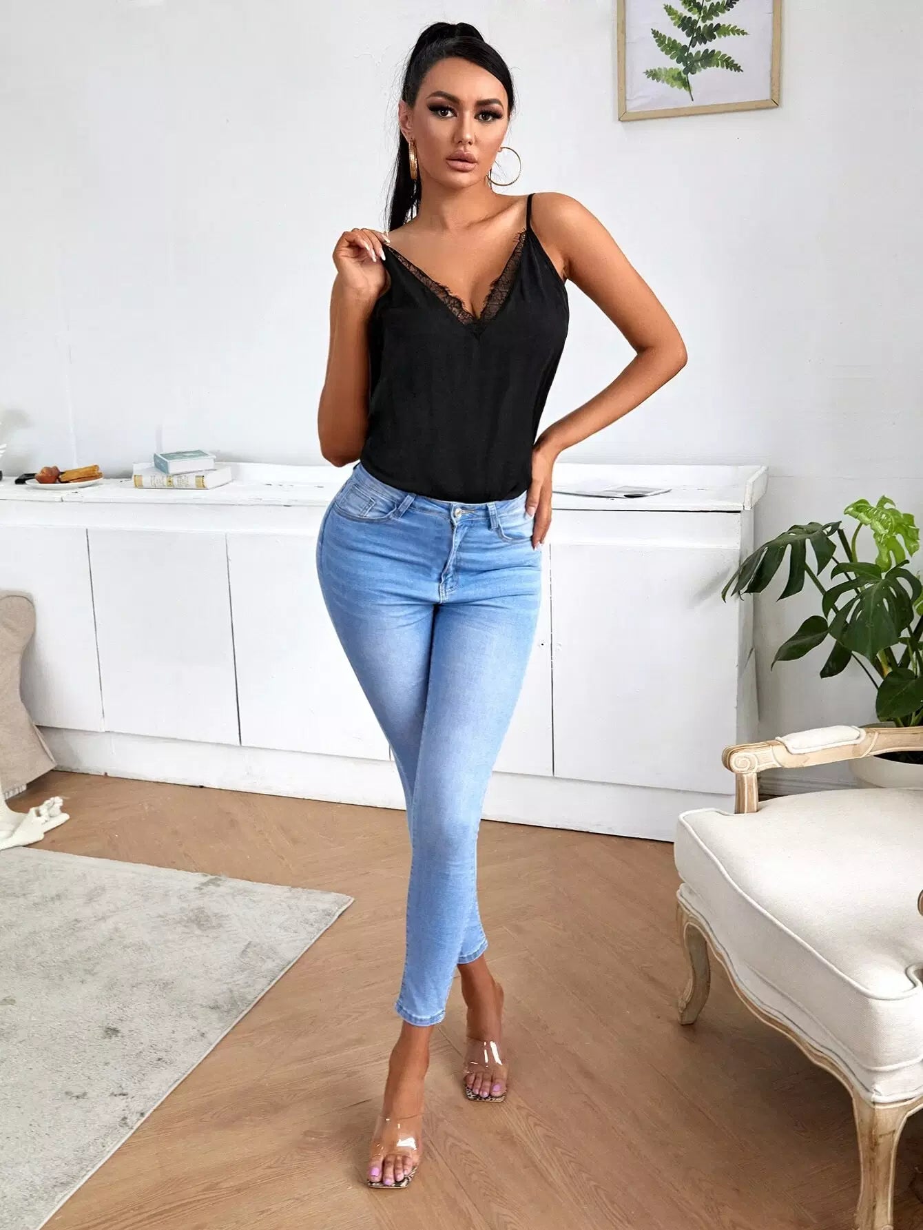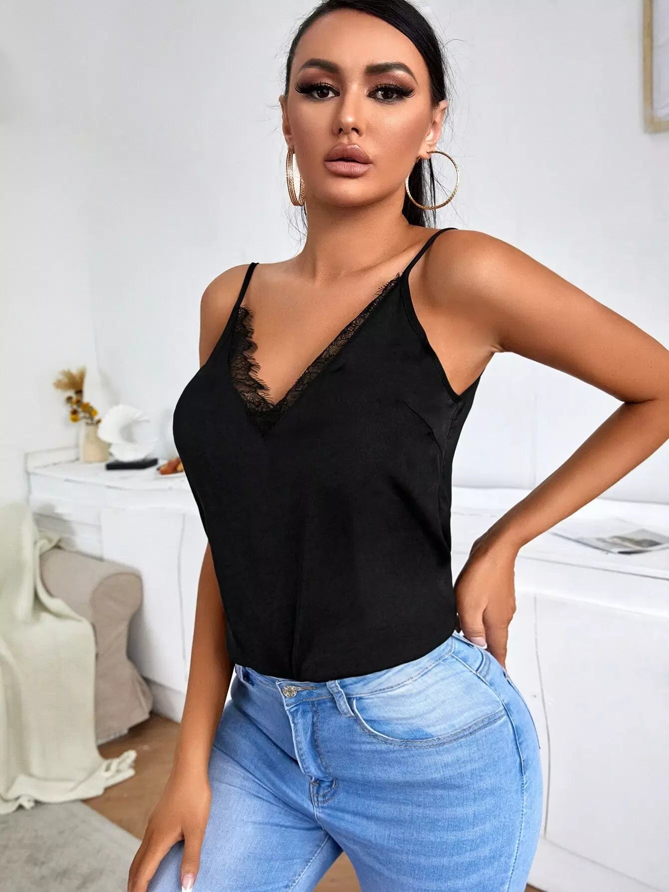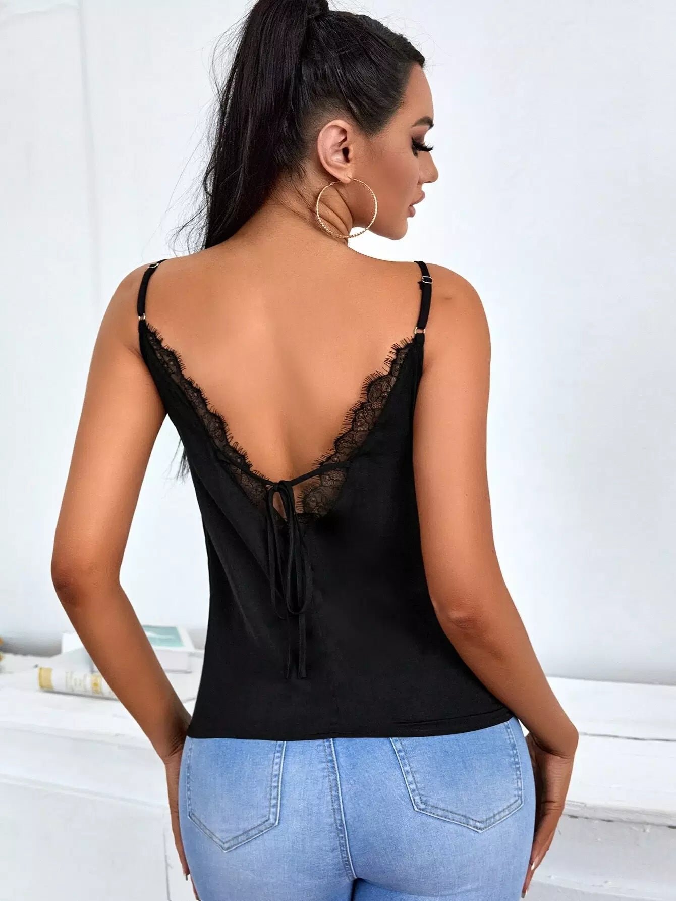 بلوزة كامي بحواف من الدانتيل مع رموش