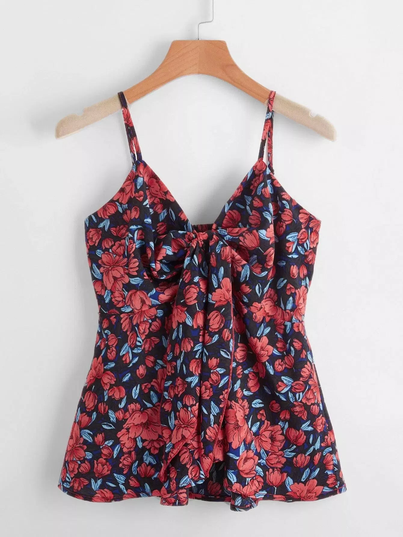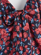 بلوزة كمي بطبعة زهور مطبوع عليها ربطة عنق أمامية
