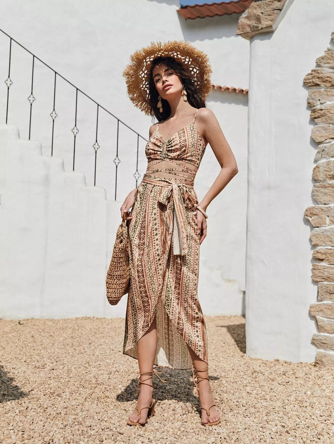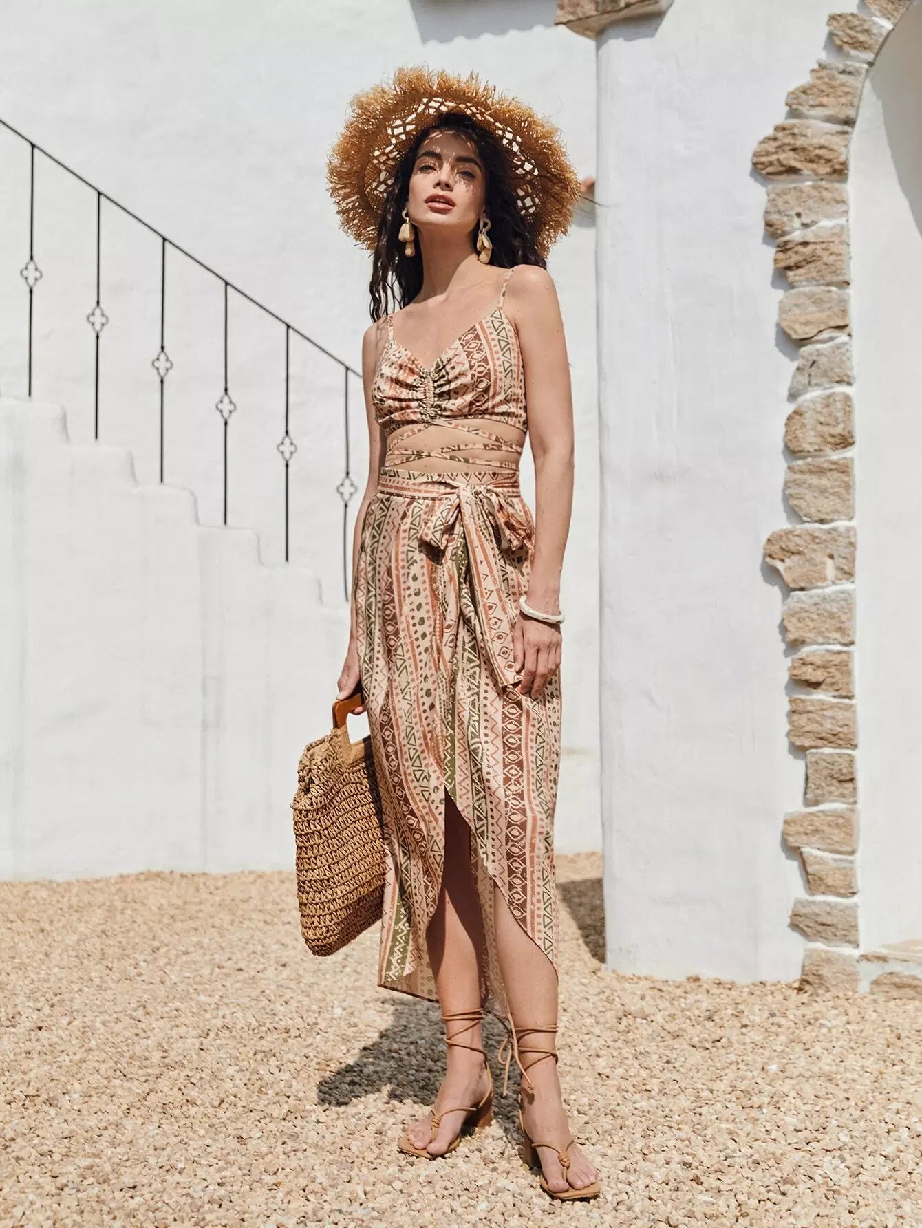 قميص قصير بنقشة جيو بطبعة جيو كروس برباط على الظهر