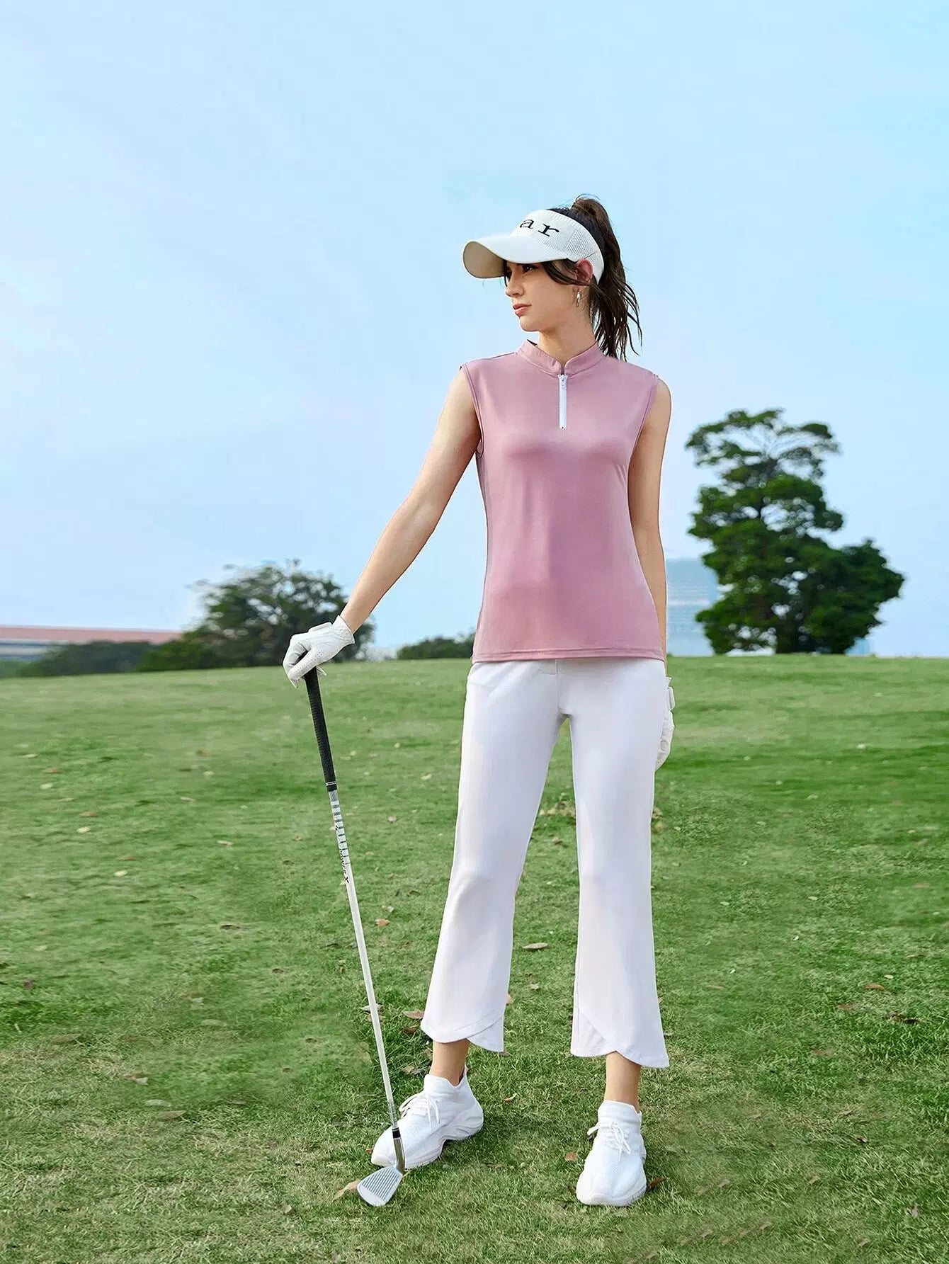 للنساء - قميص بدون أكمام بسحاب ربع جولف