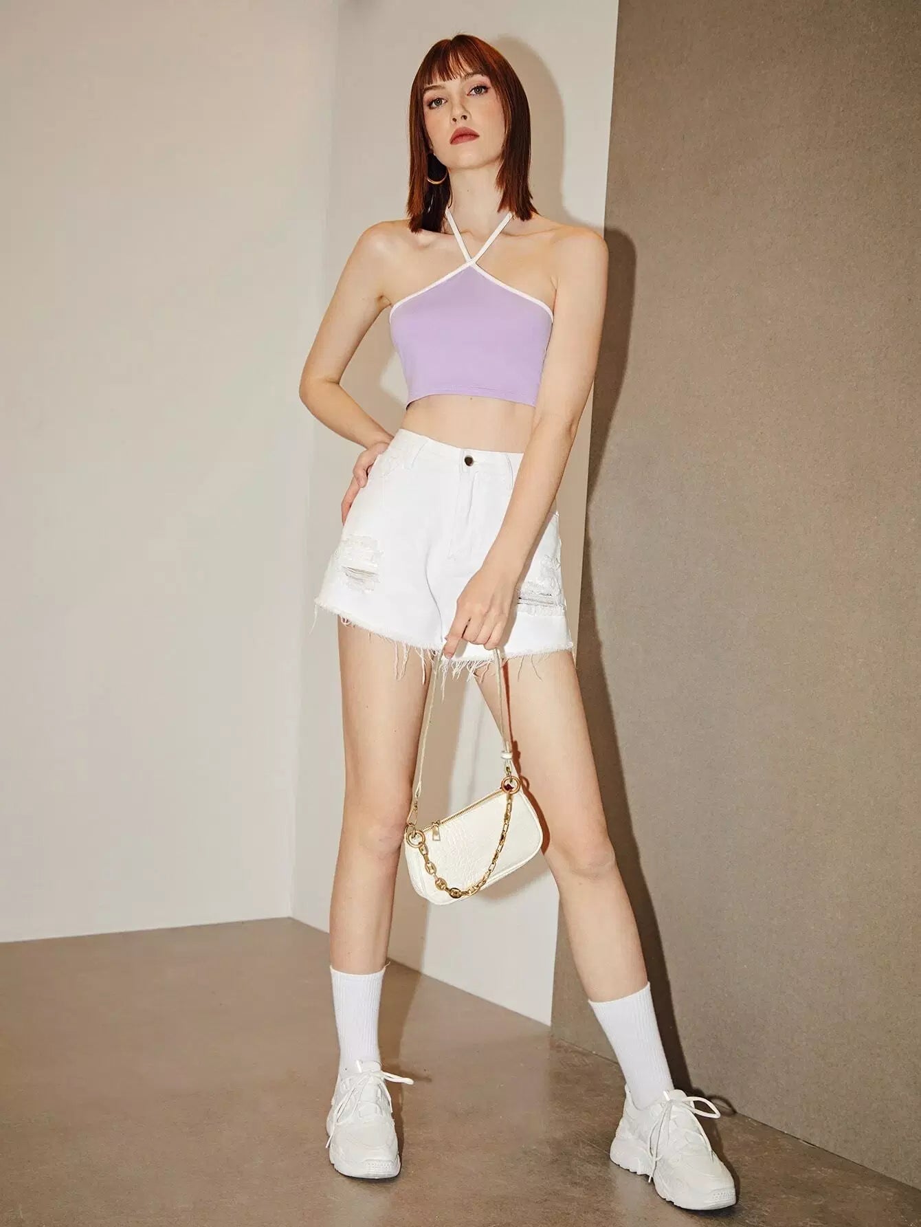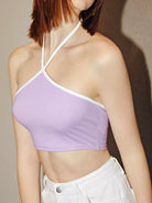 بلوزة قصيرة بياقة قصيرة بياقة نصف رقبة متباينة