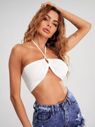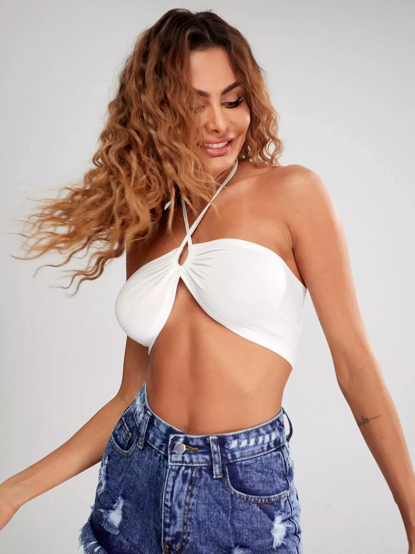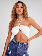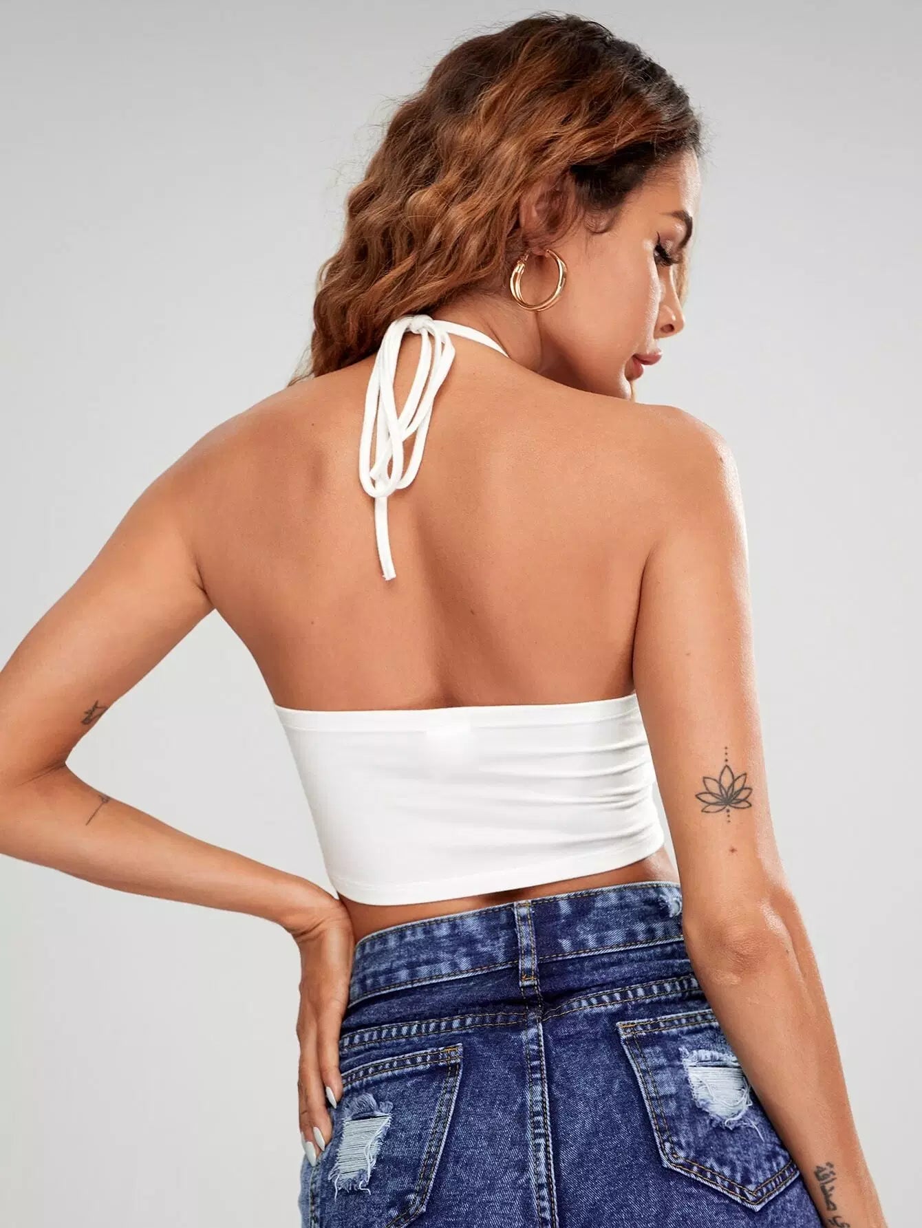 بلوزة قصيرة قصيرة بياقة قصيرة بفتحة من الخلف وربطة عنق حول العنق