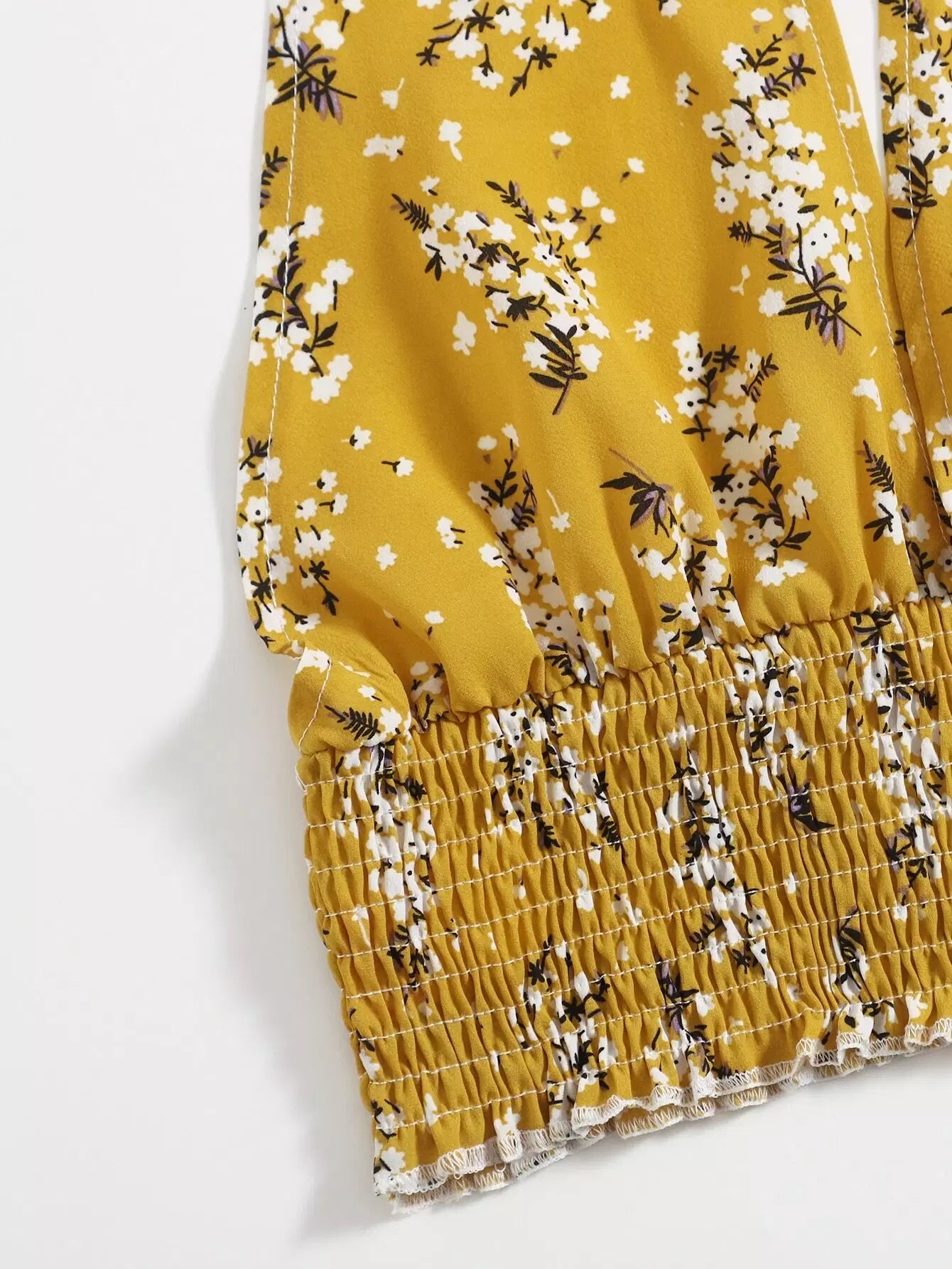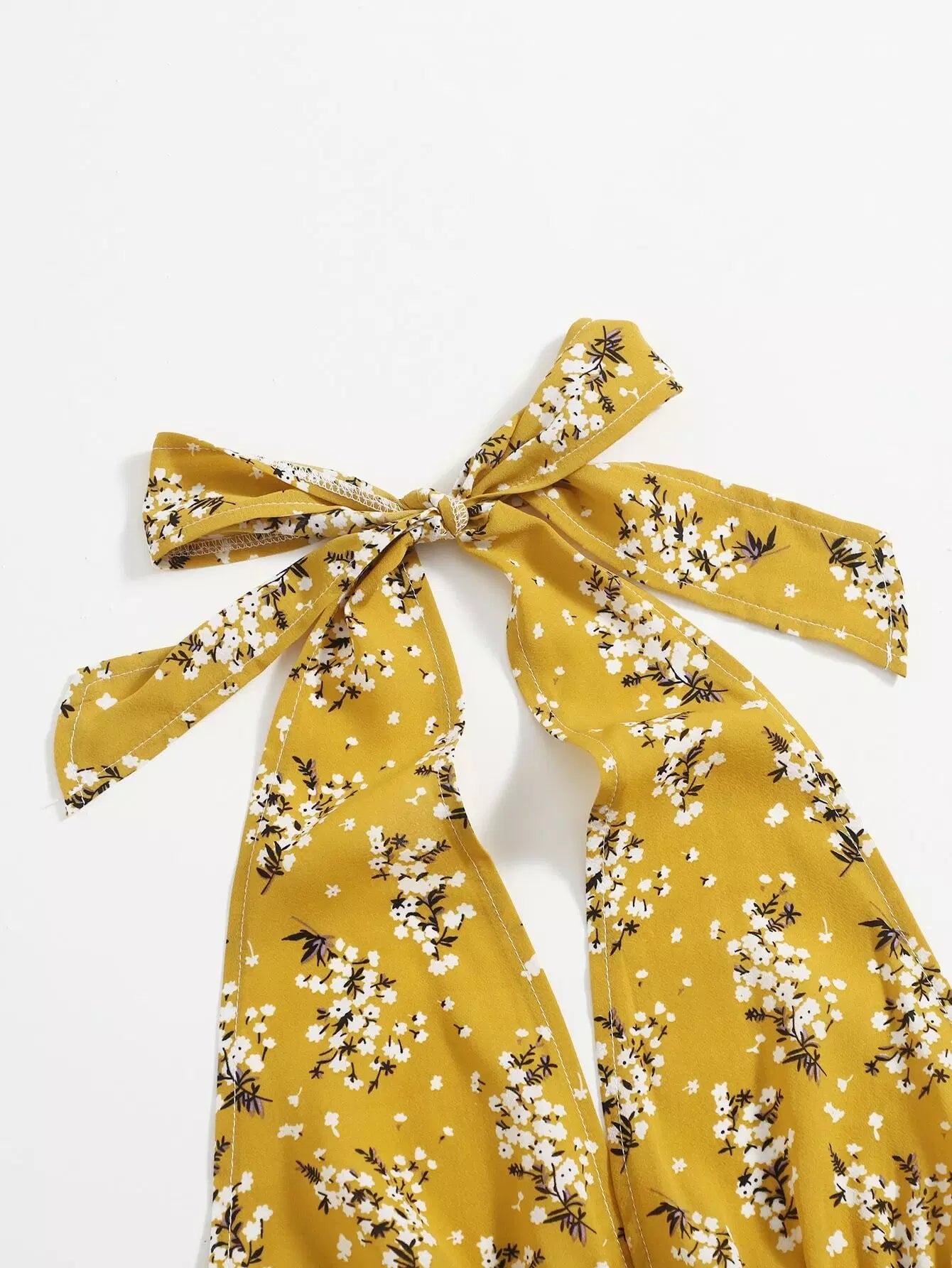 النساء - بلوزة بنقشة الزهور مع ربطة عنق وربطة خلفية