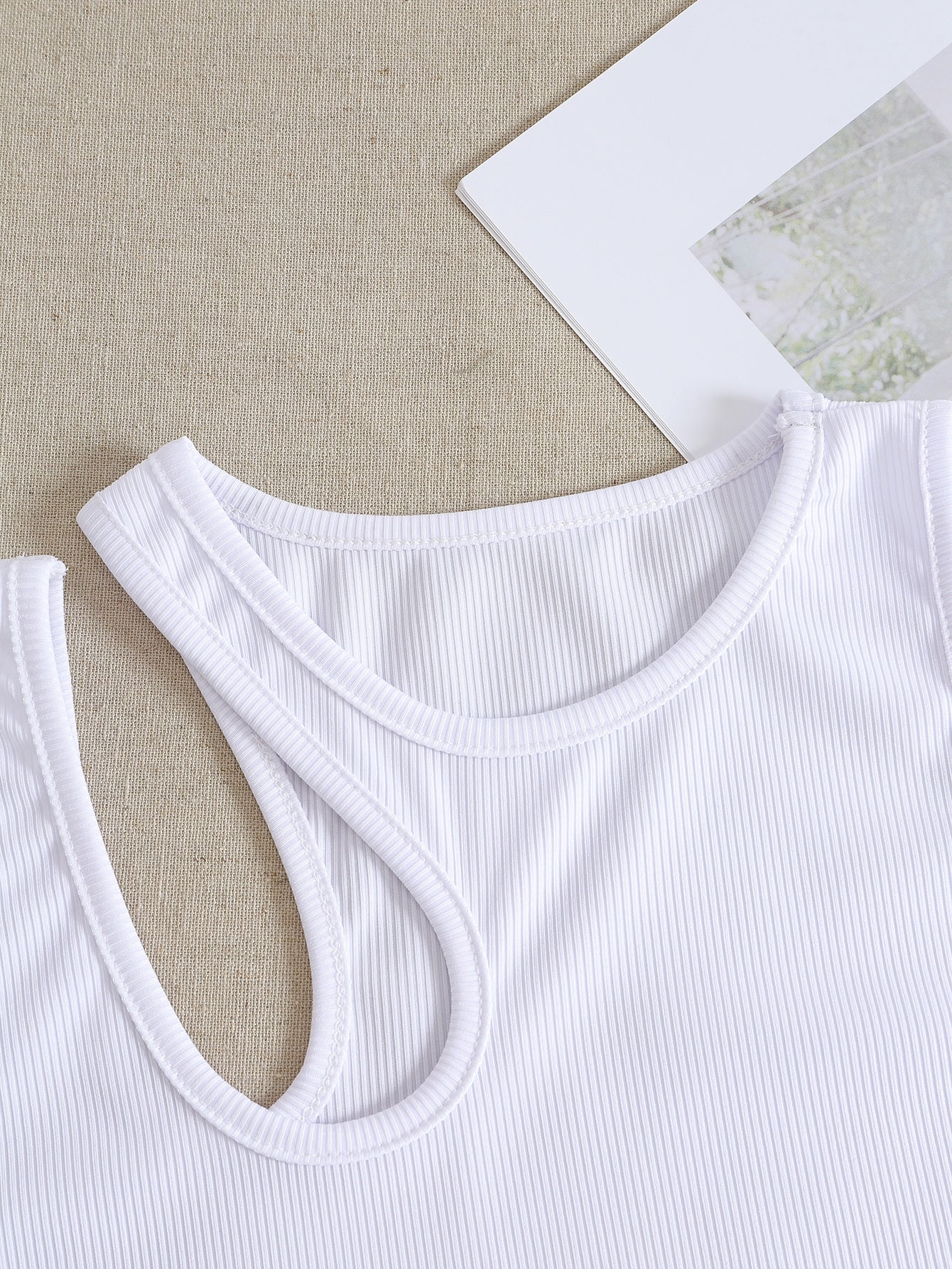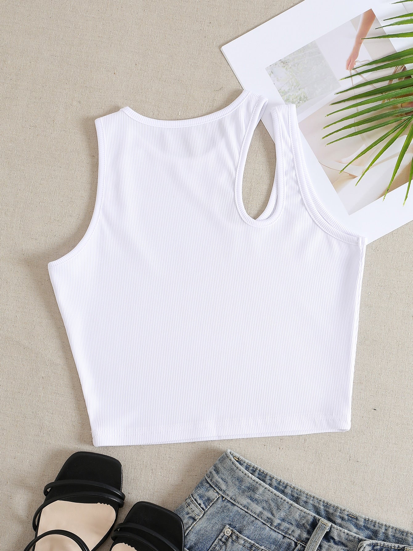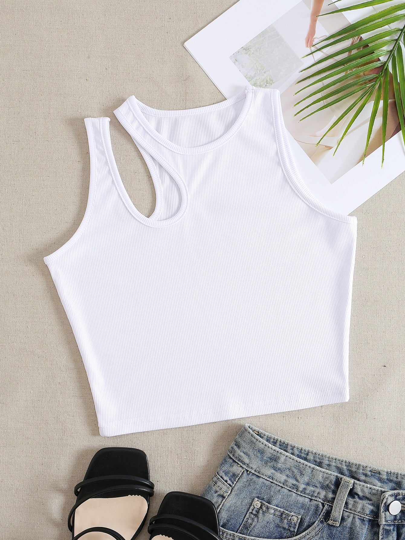 women INAWLY Solid Cut Out Shoulder Ribbed Knit Tank Top For Summer