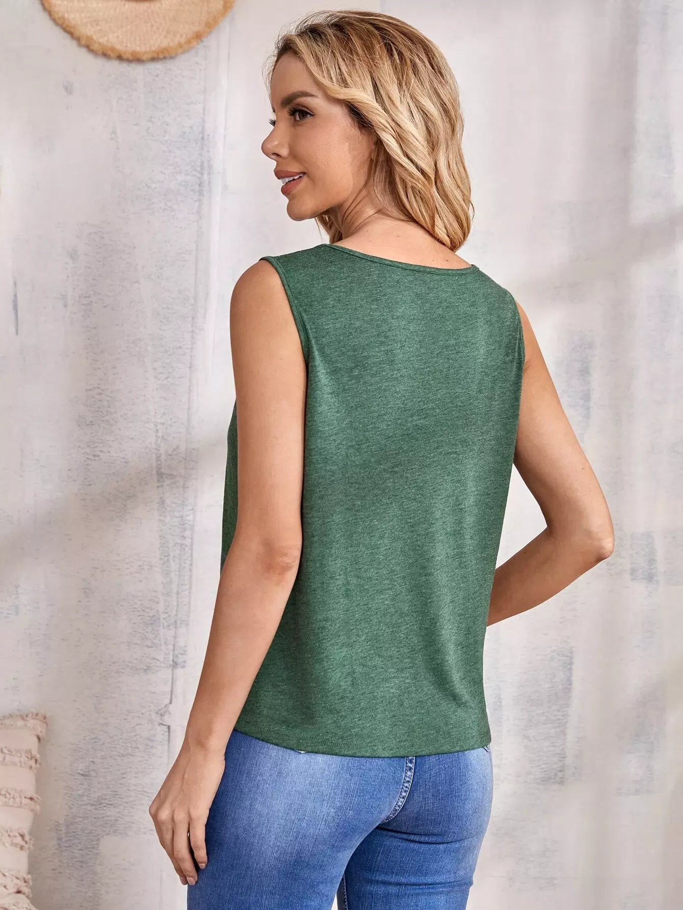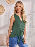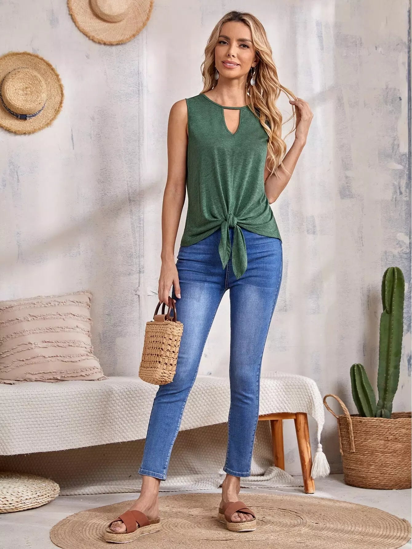 تانك توب بفتحة رقبة على شكل ثقب مفتاح وحاشية عقدة