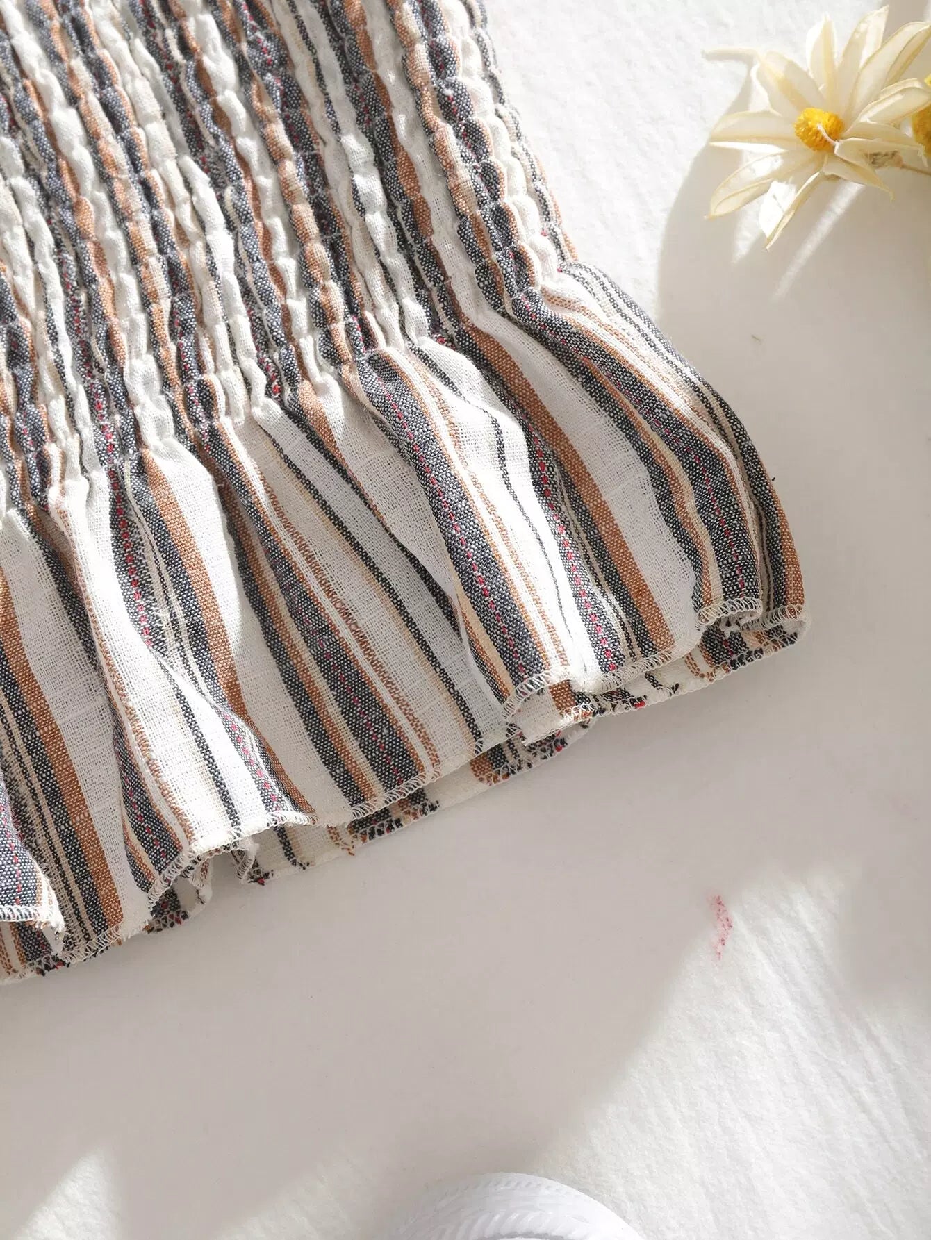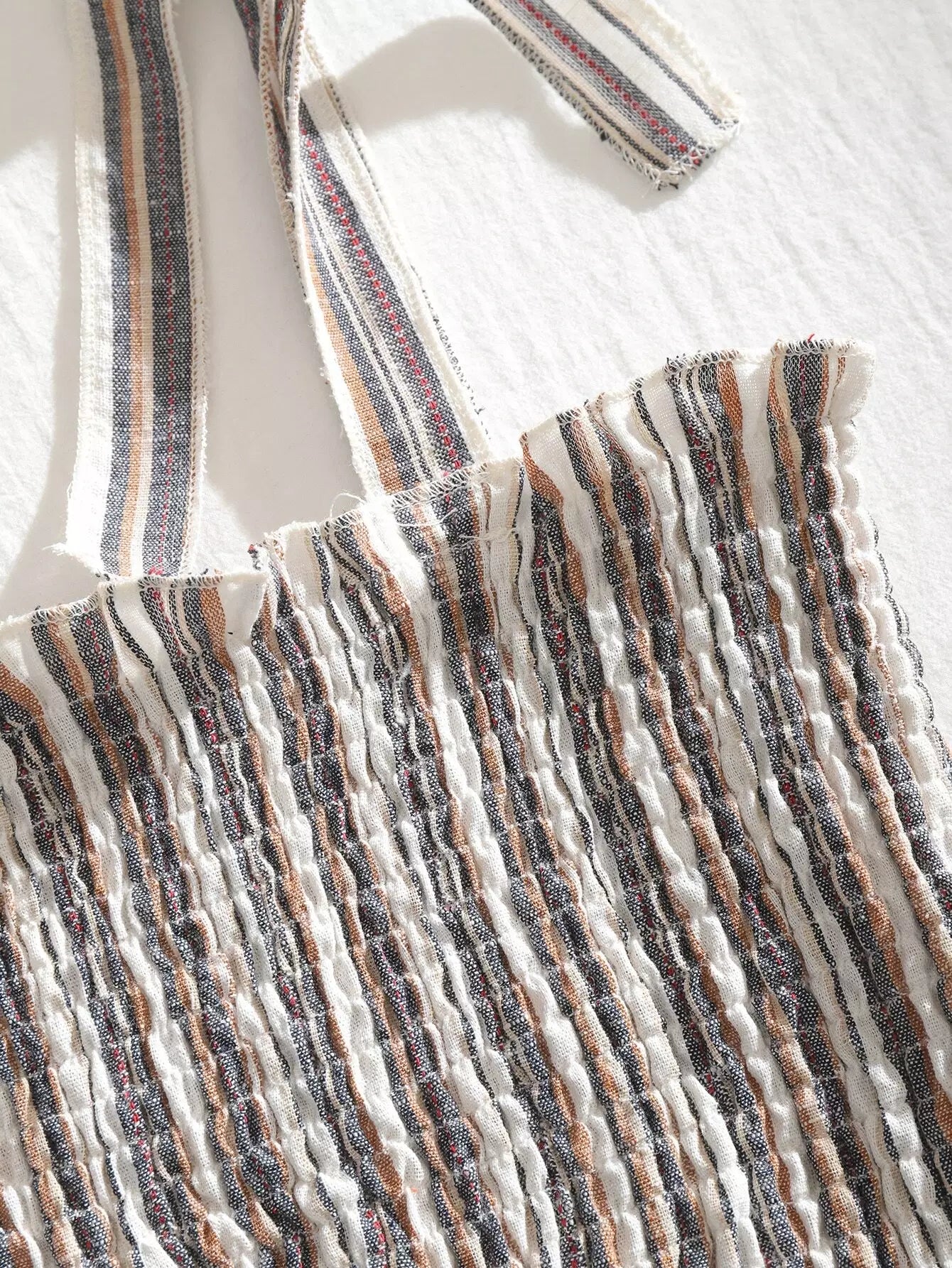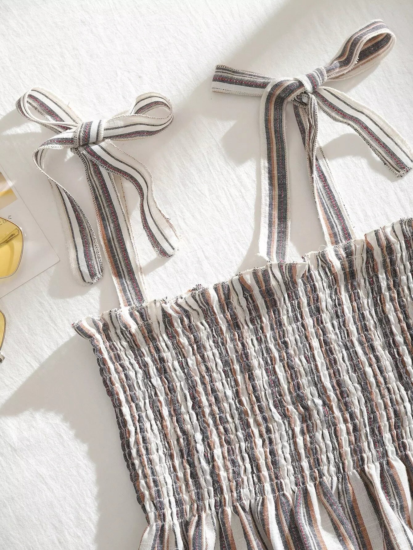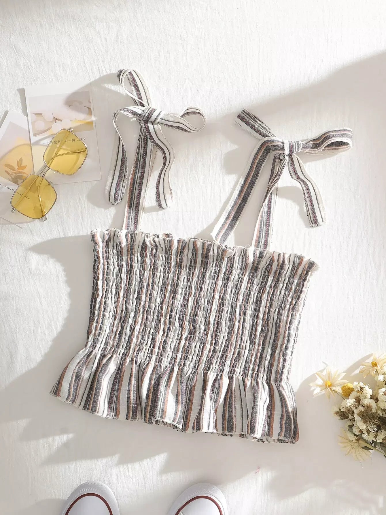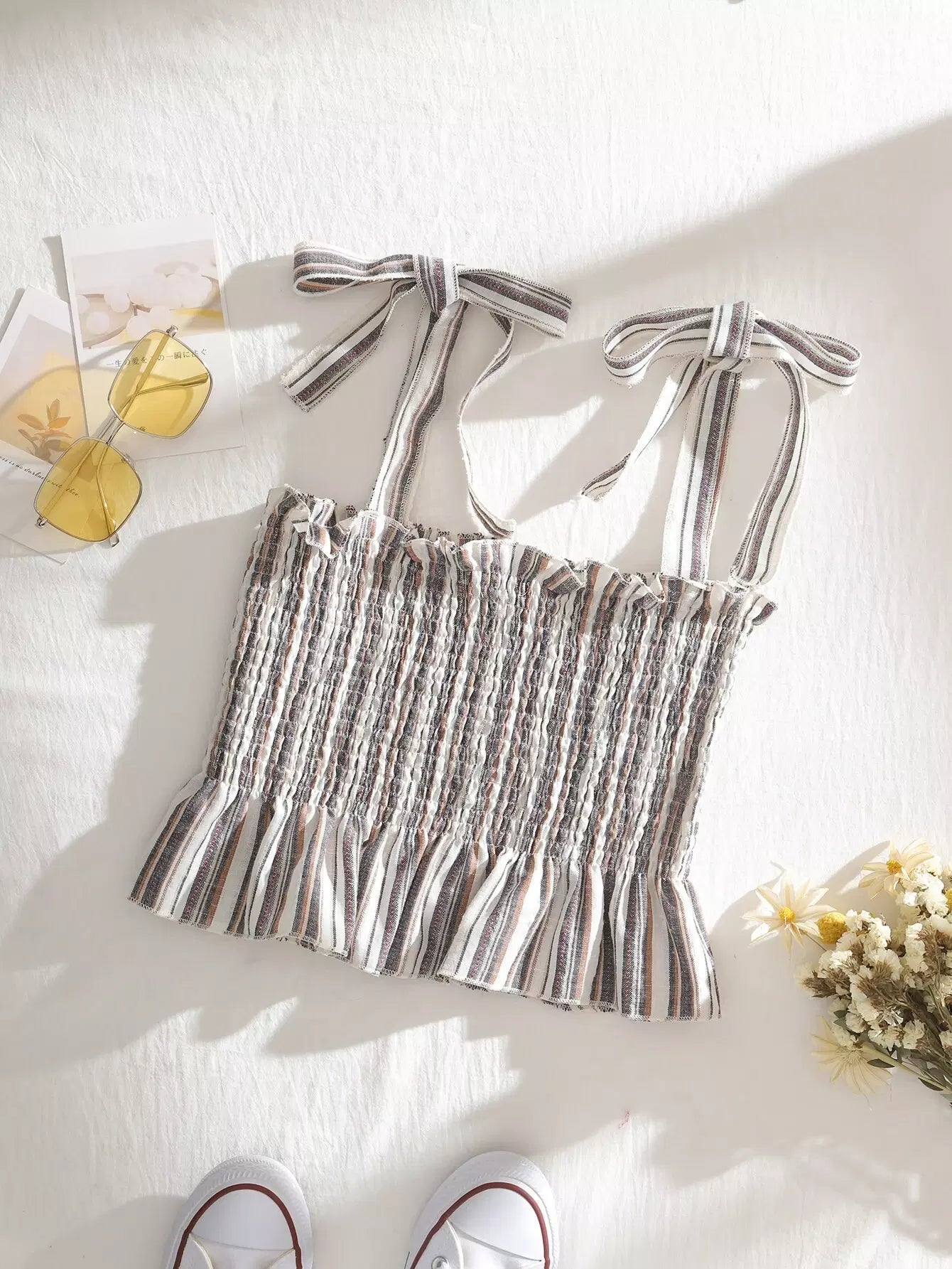 تي شيرت بحمالات بأشرطة على شكل عقدة مخططة على شكل بيبلوم
