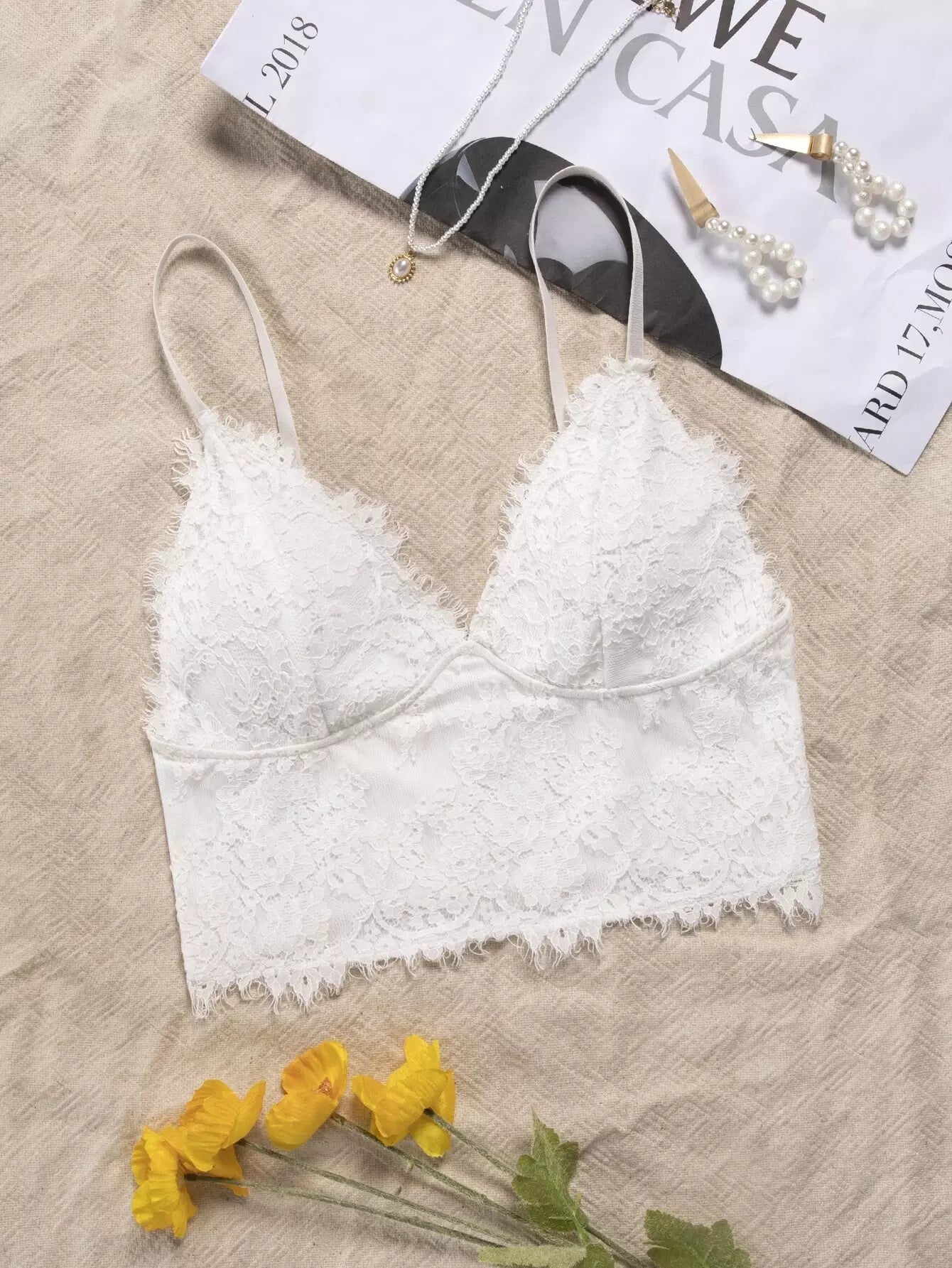 بلوزة قصيرة قصيرة من الدانتيل