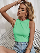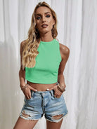 تانك بدون أكمام محبوك من الدانتيل ومفتوح من الخلف برباط منشق ومحبوك على شكل ضلع