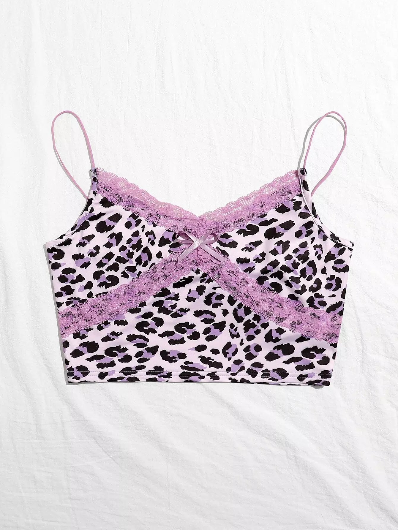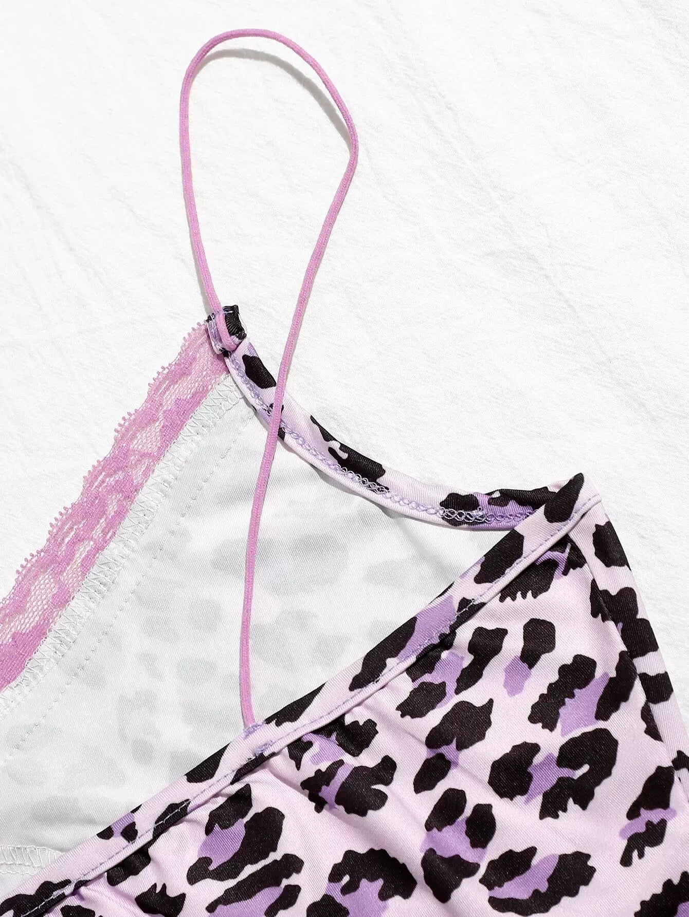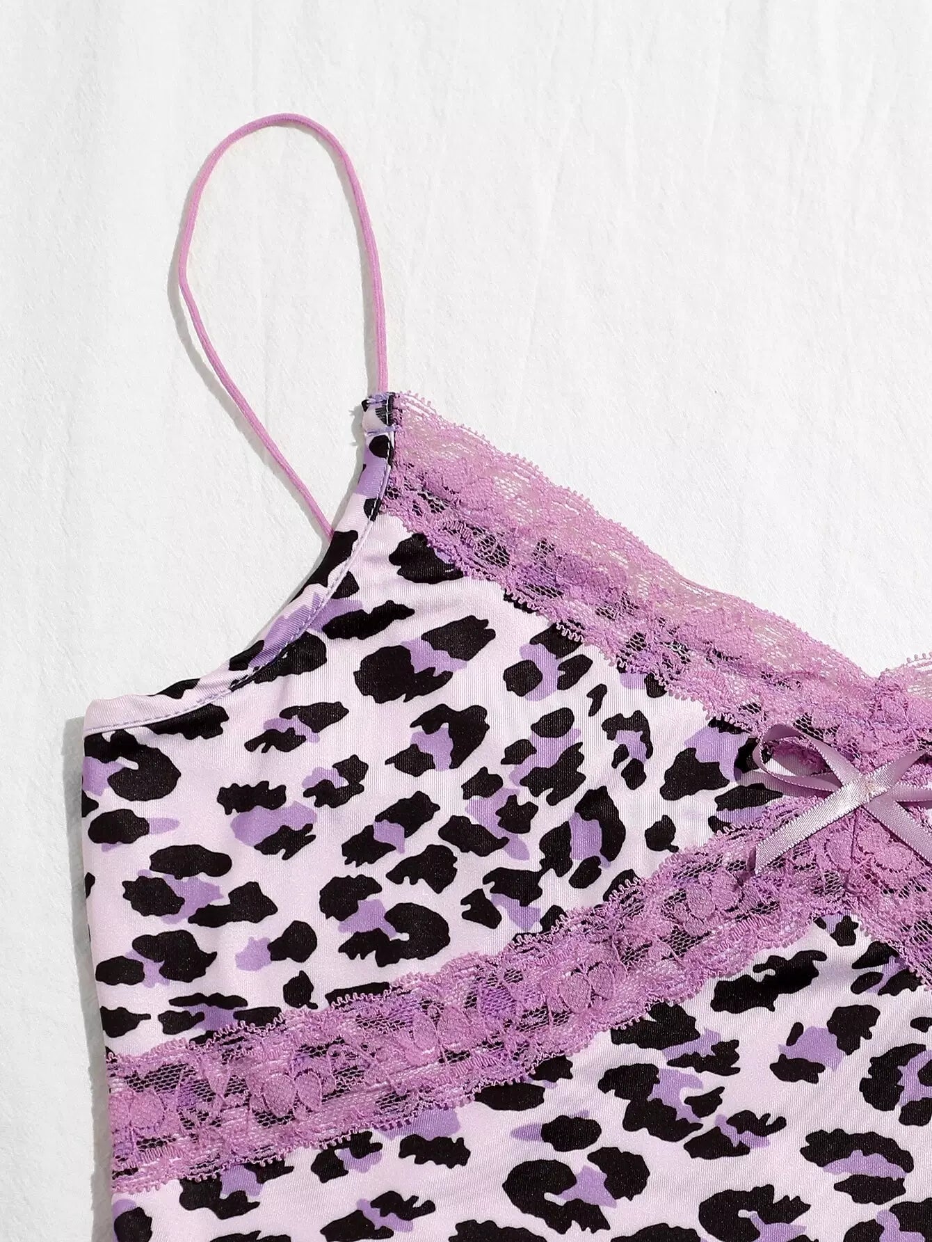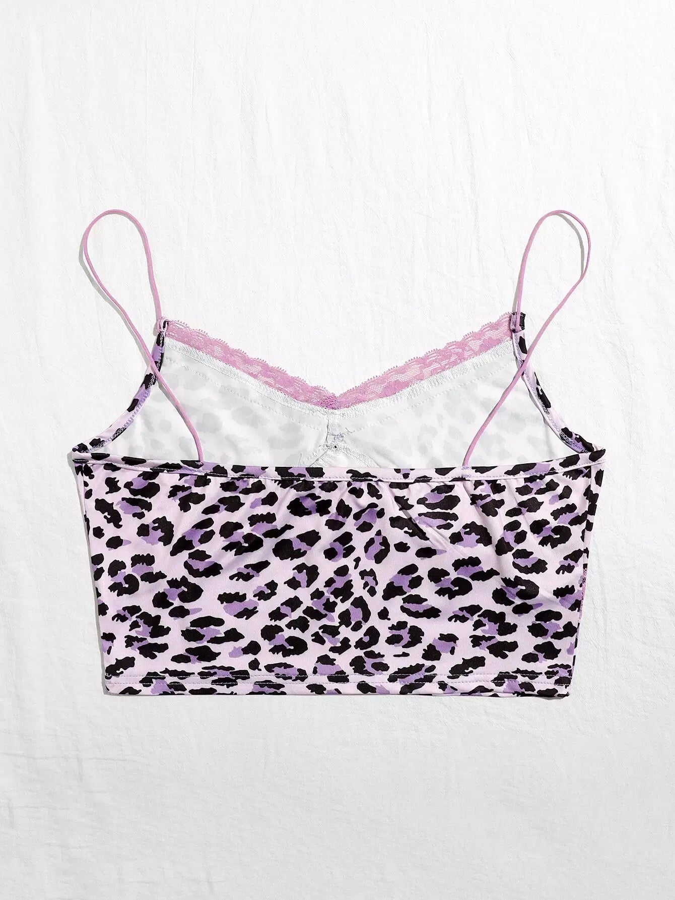 قميص قصير قصير بنقشة جلد الفهد من الدانتيل