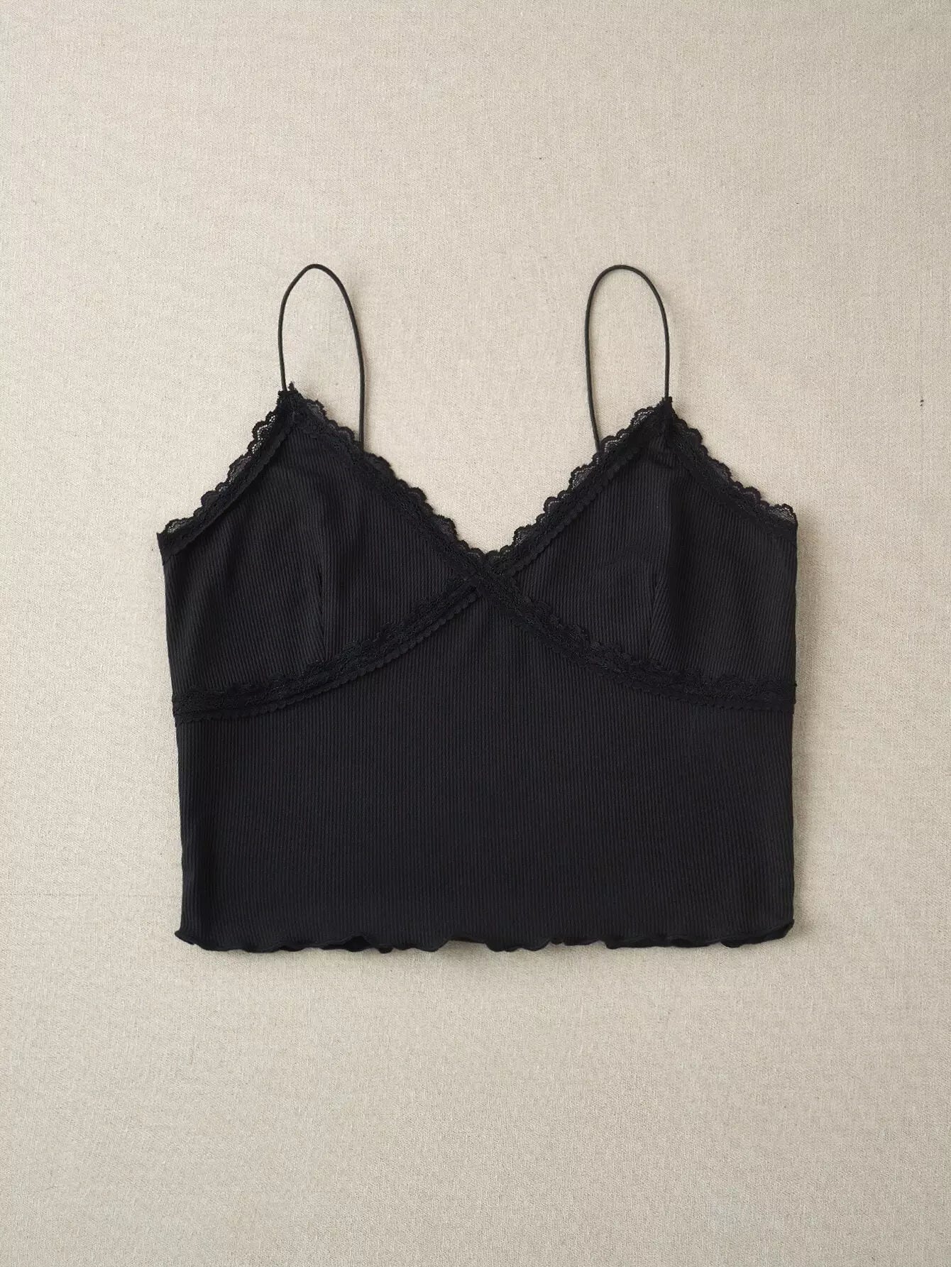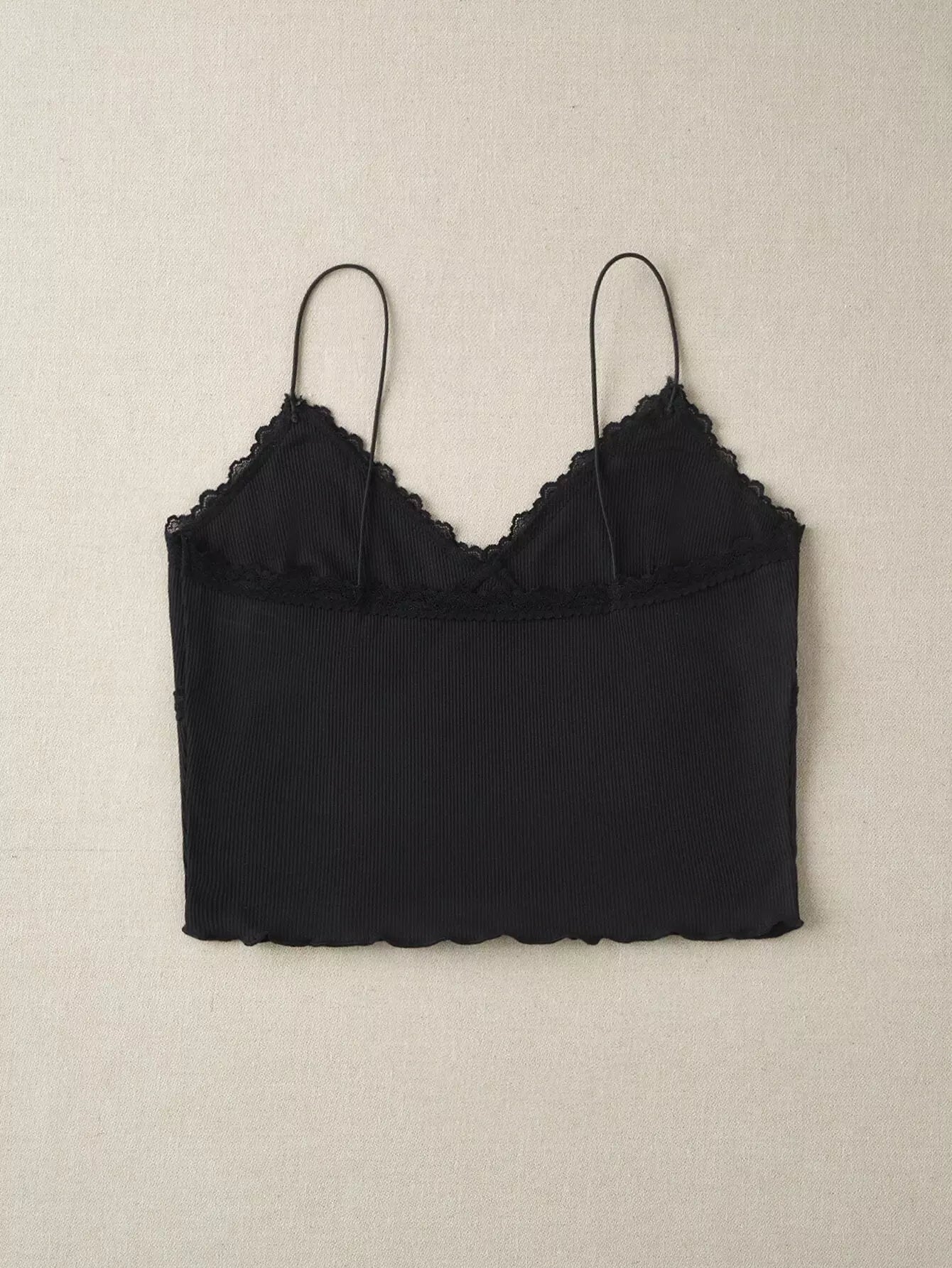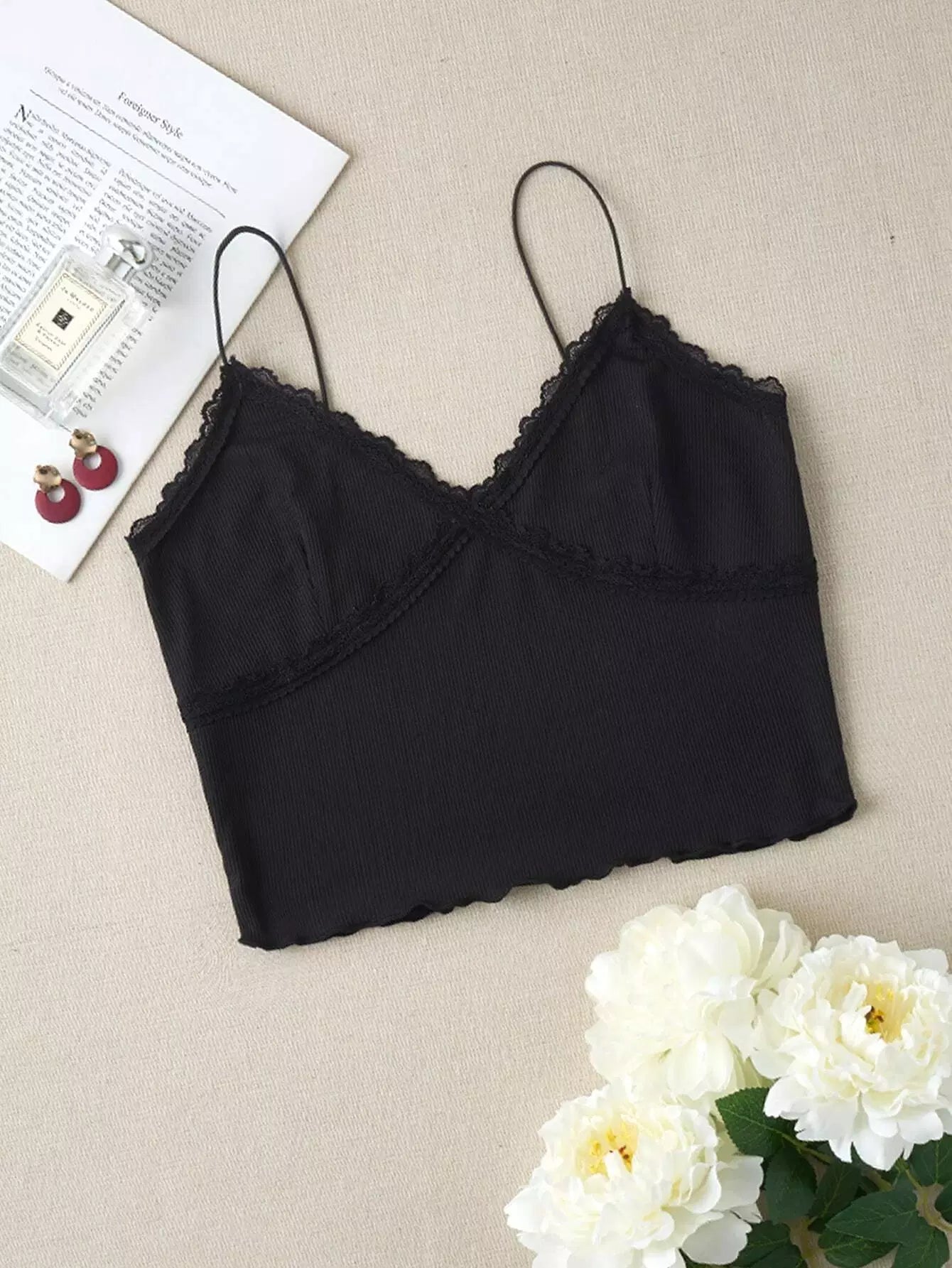 قميص قصير بحواف من الدانتيل بحواف من الخس