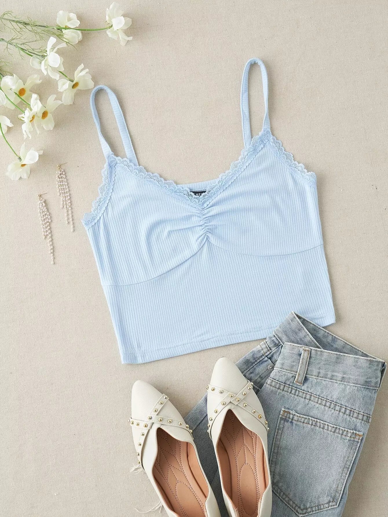 بلوزة كمي دانتيل بحياكة مضلعة من الدانتيل