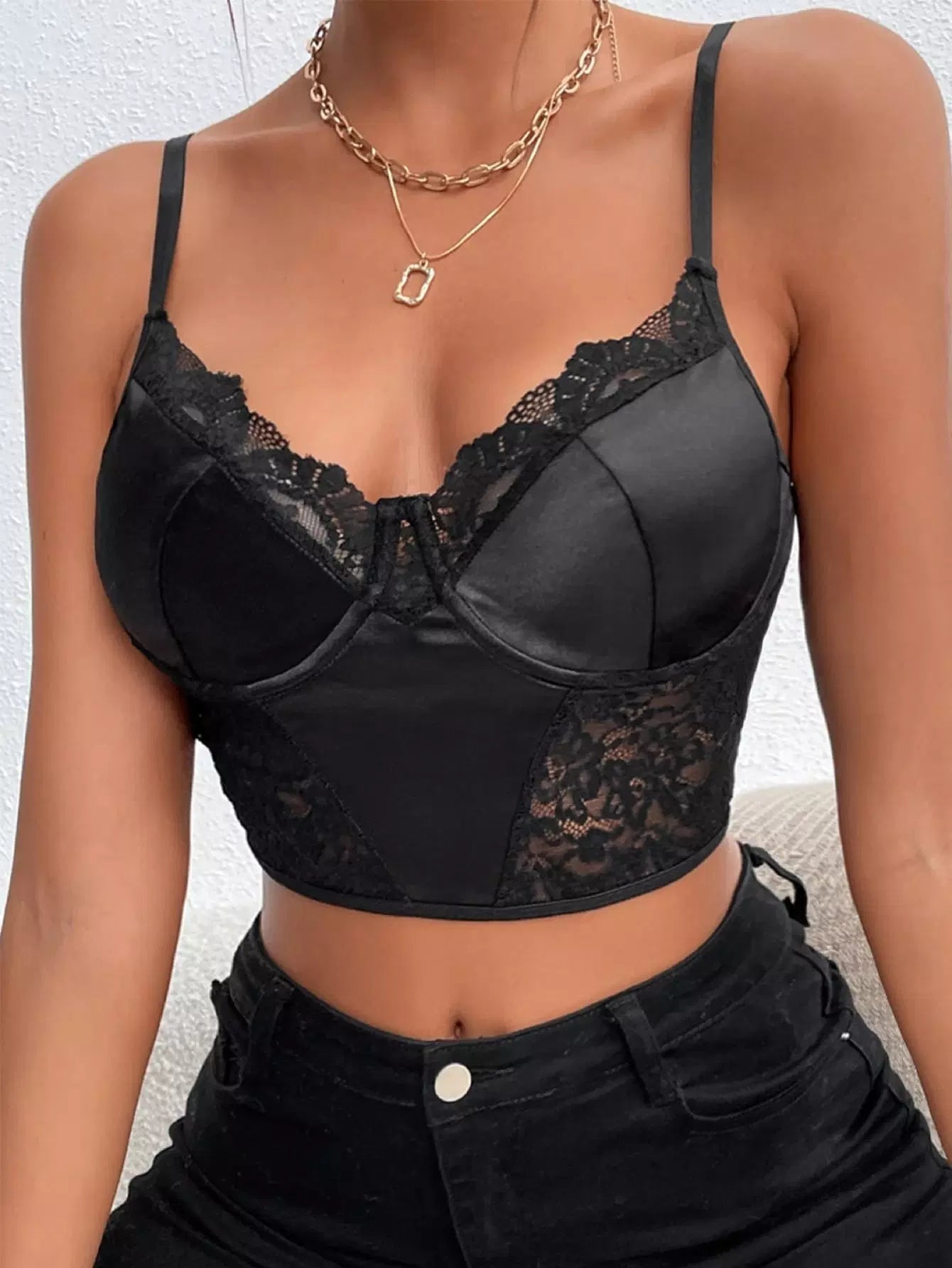 قميص قصير بحواف من الدانتيل بحاشية من الدانتيل