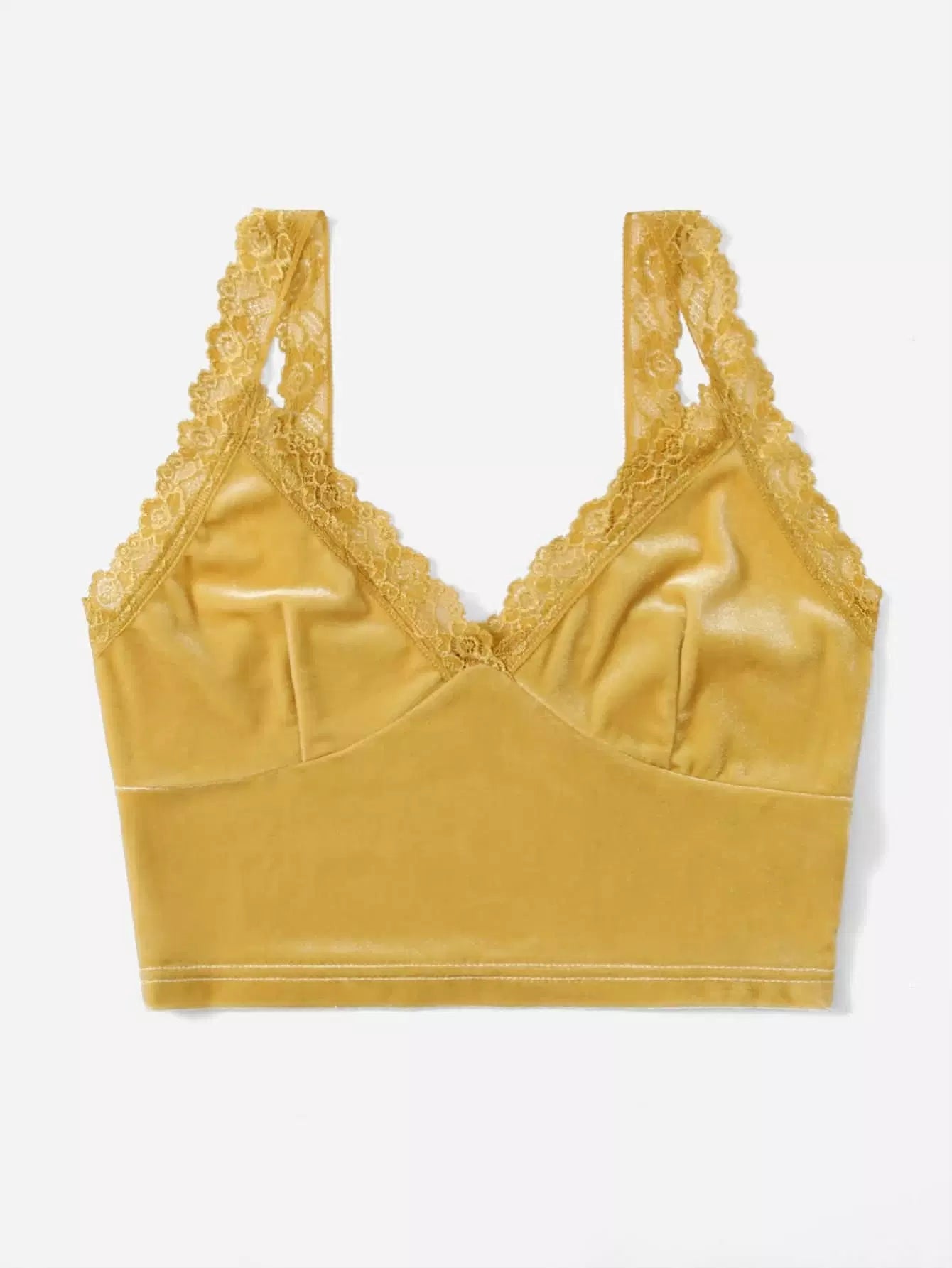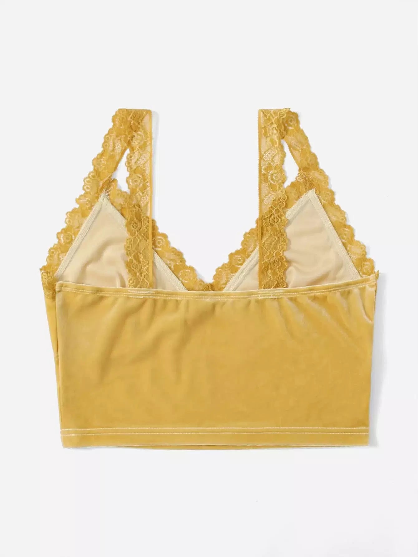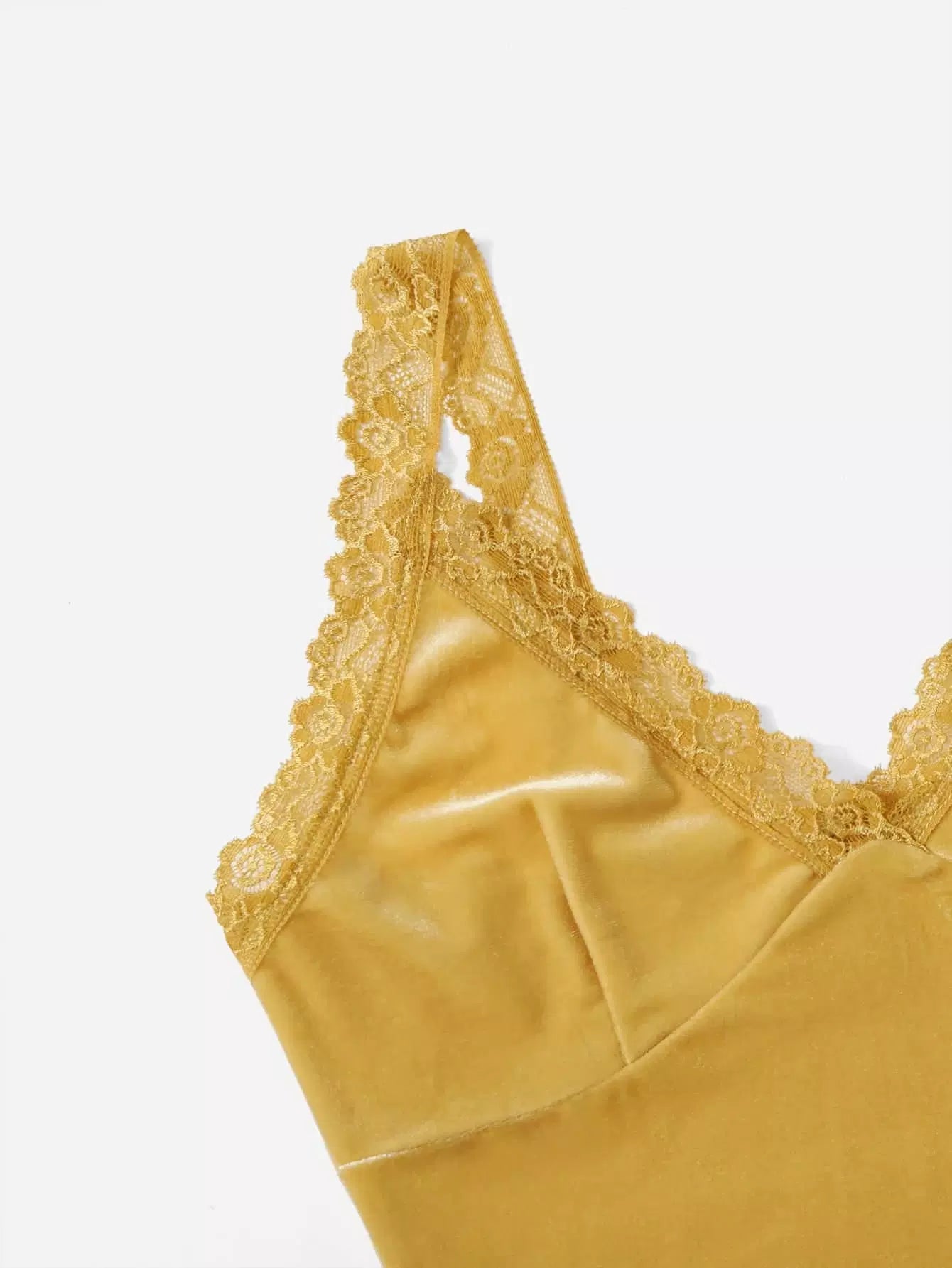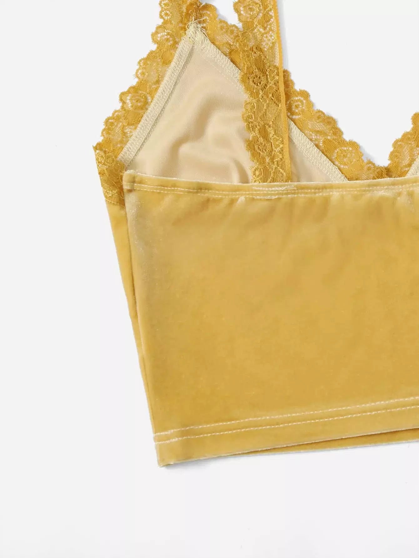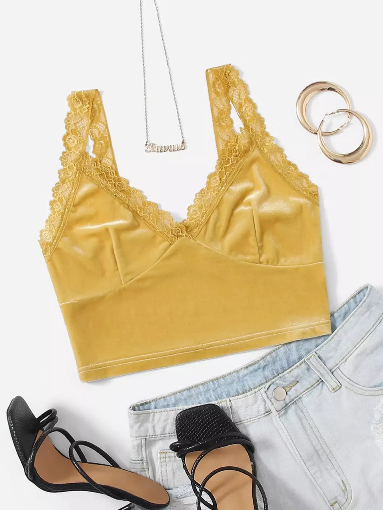 قميص قصير مخملي قصير بحواف من الدانتيل