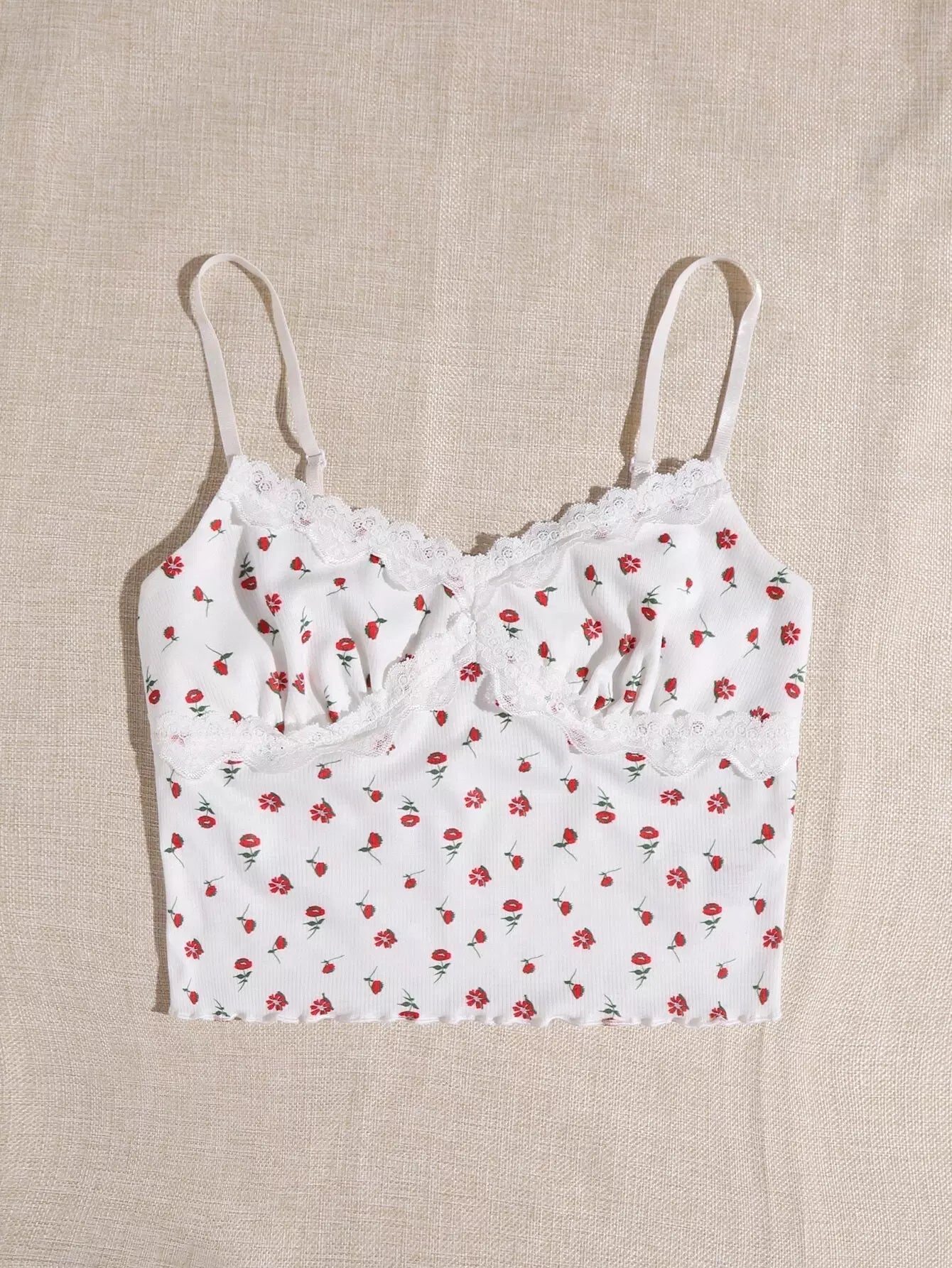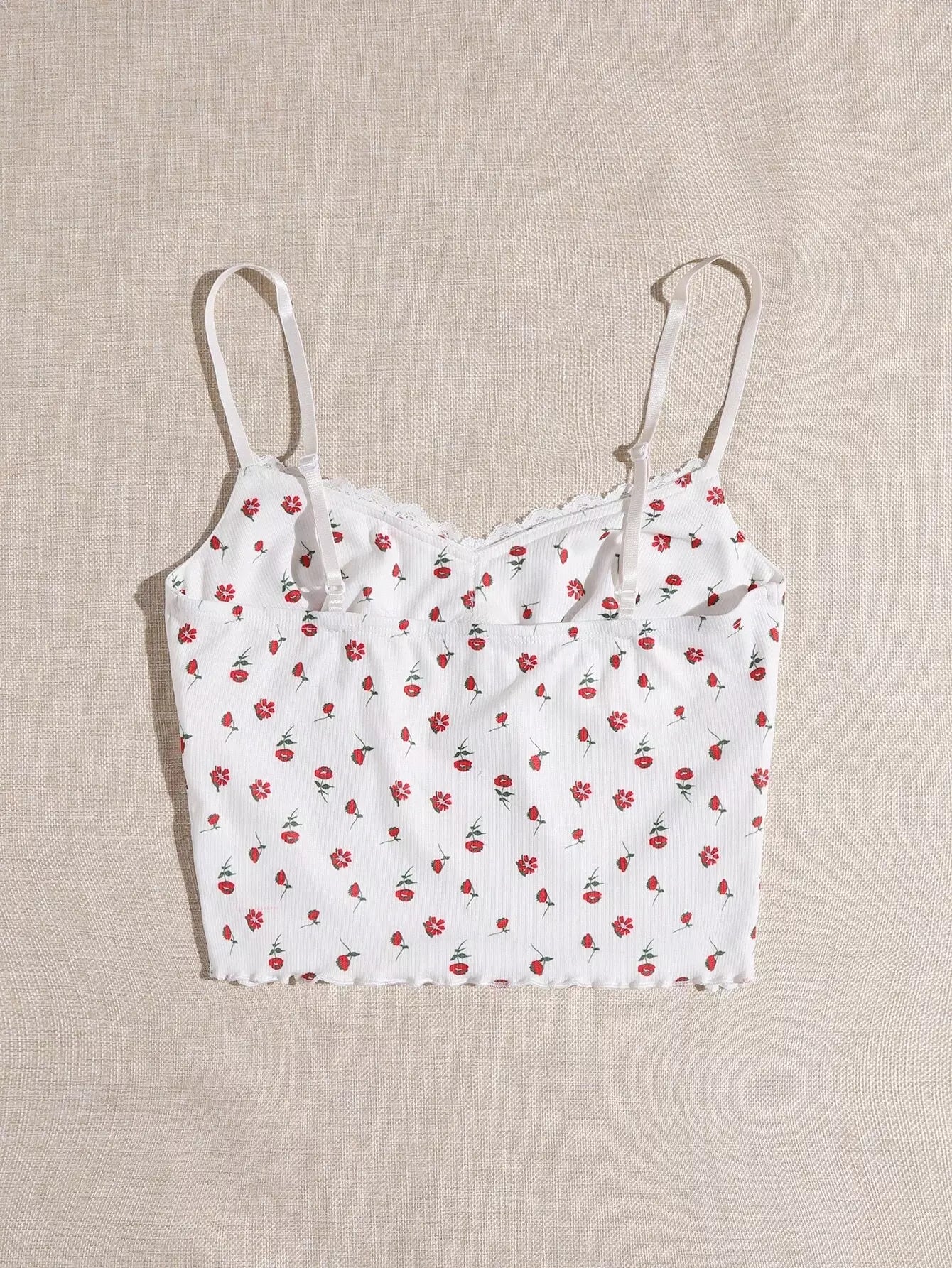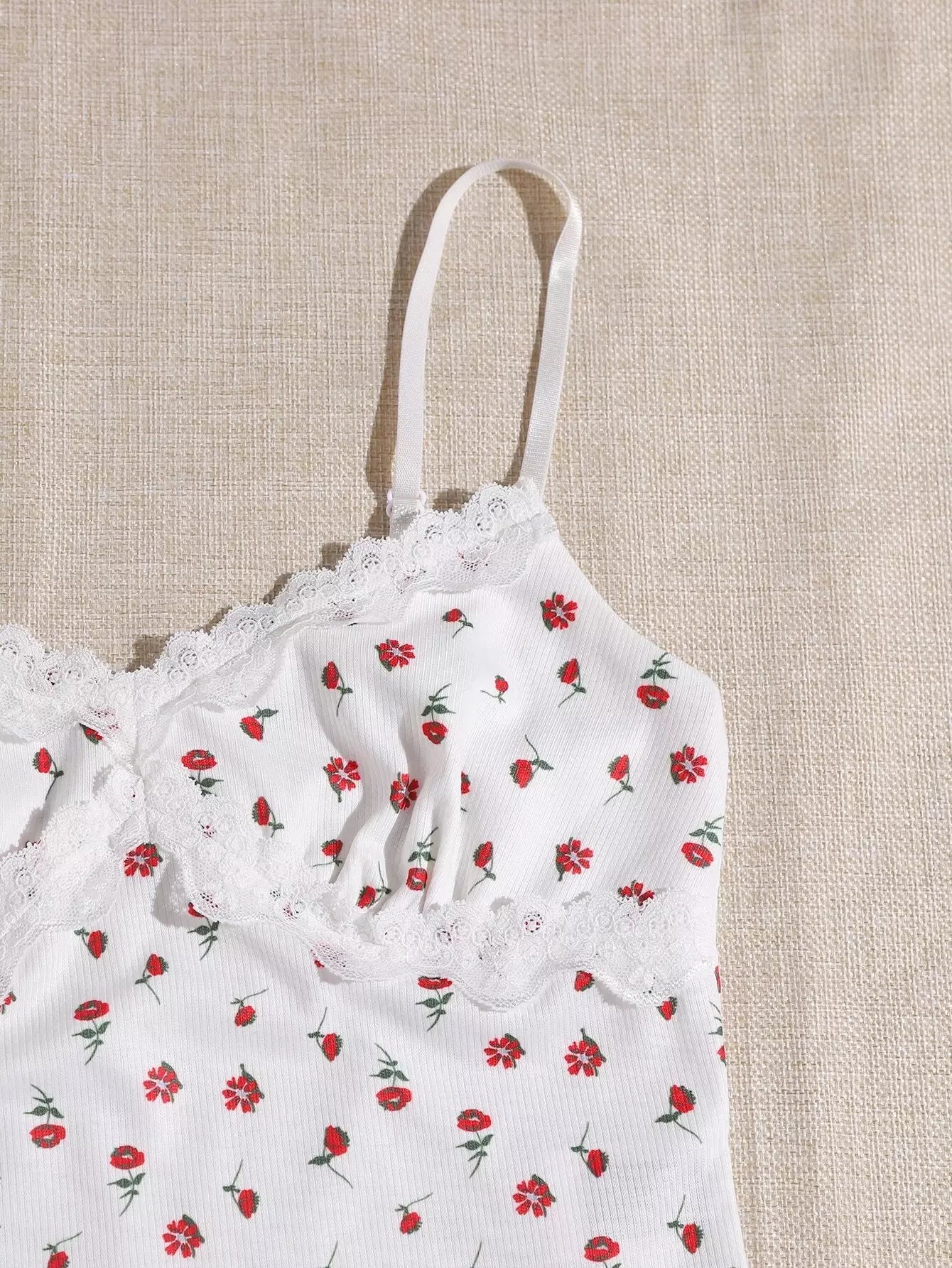 قميص قصير مزين بدانتيل بحواف من الدانتيل مزين بزهور ديتسي