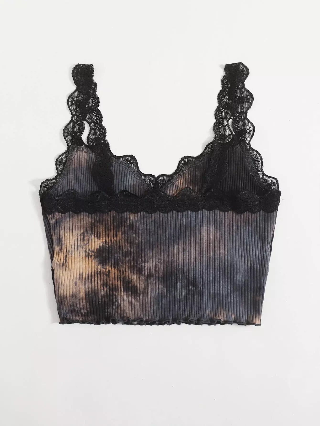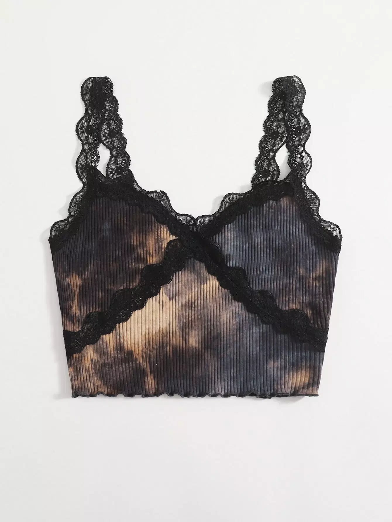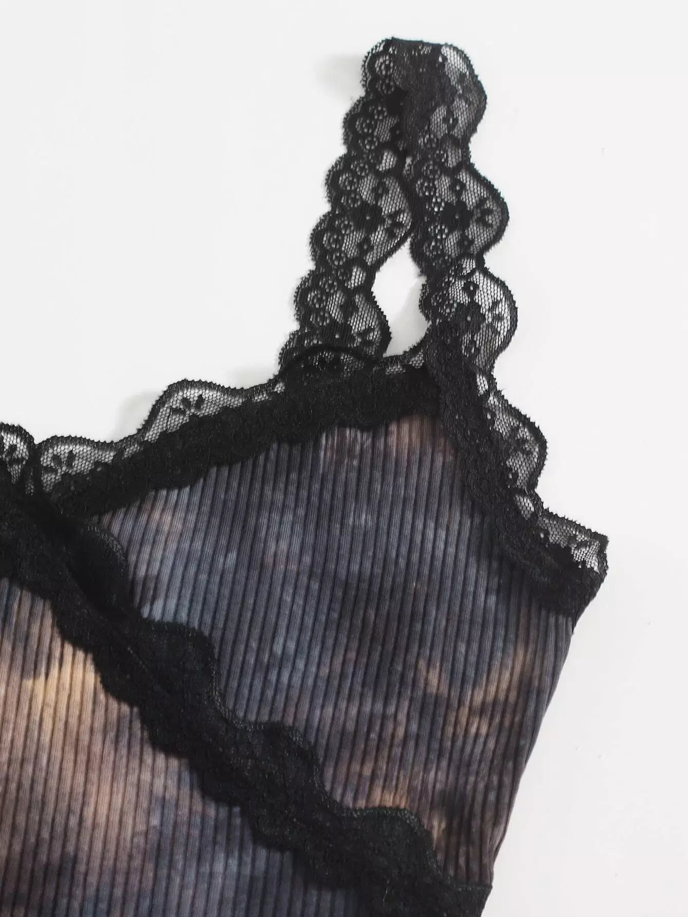 تيشيرت بحواف من الدانتيل بحواف من الدانتيل والخس مع ربطة عنق مصبوغة