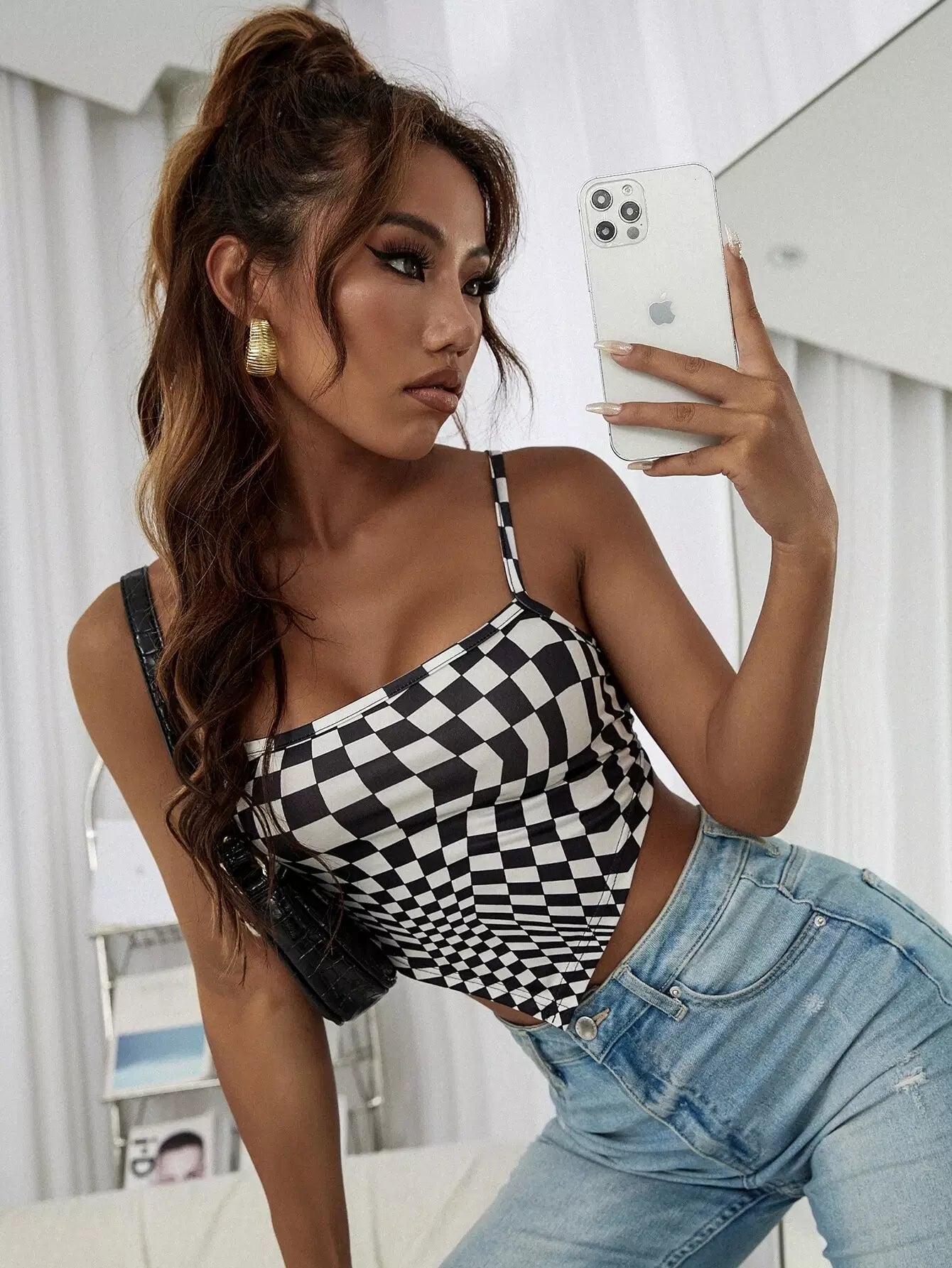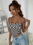 قميص قصير بدون أكمام بأربطة بدون أكمام بمربعات من الخلف