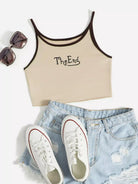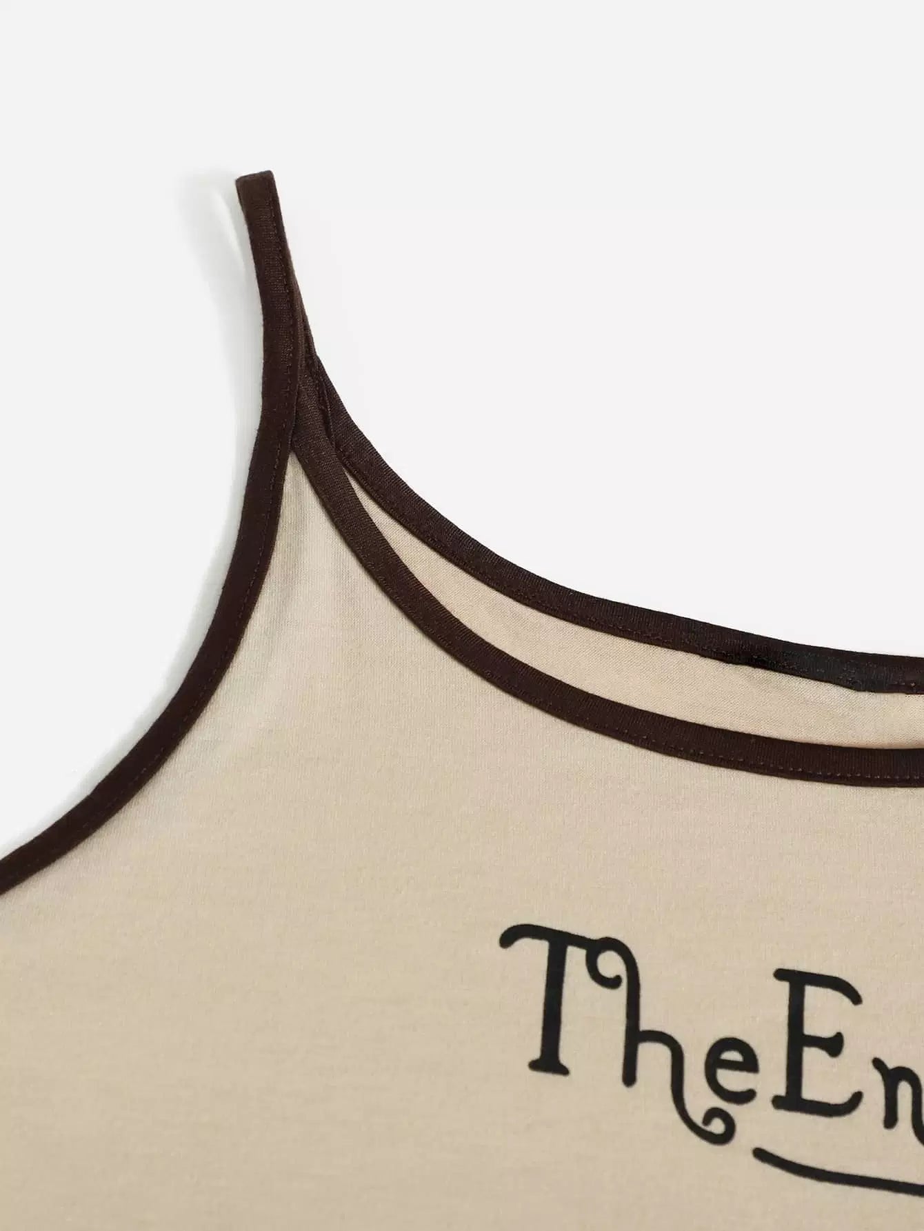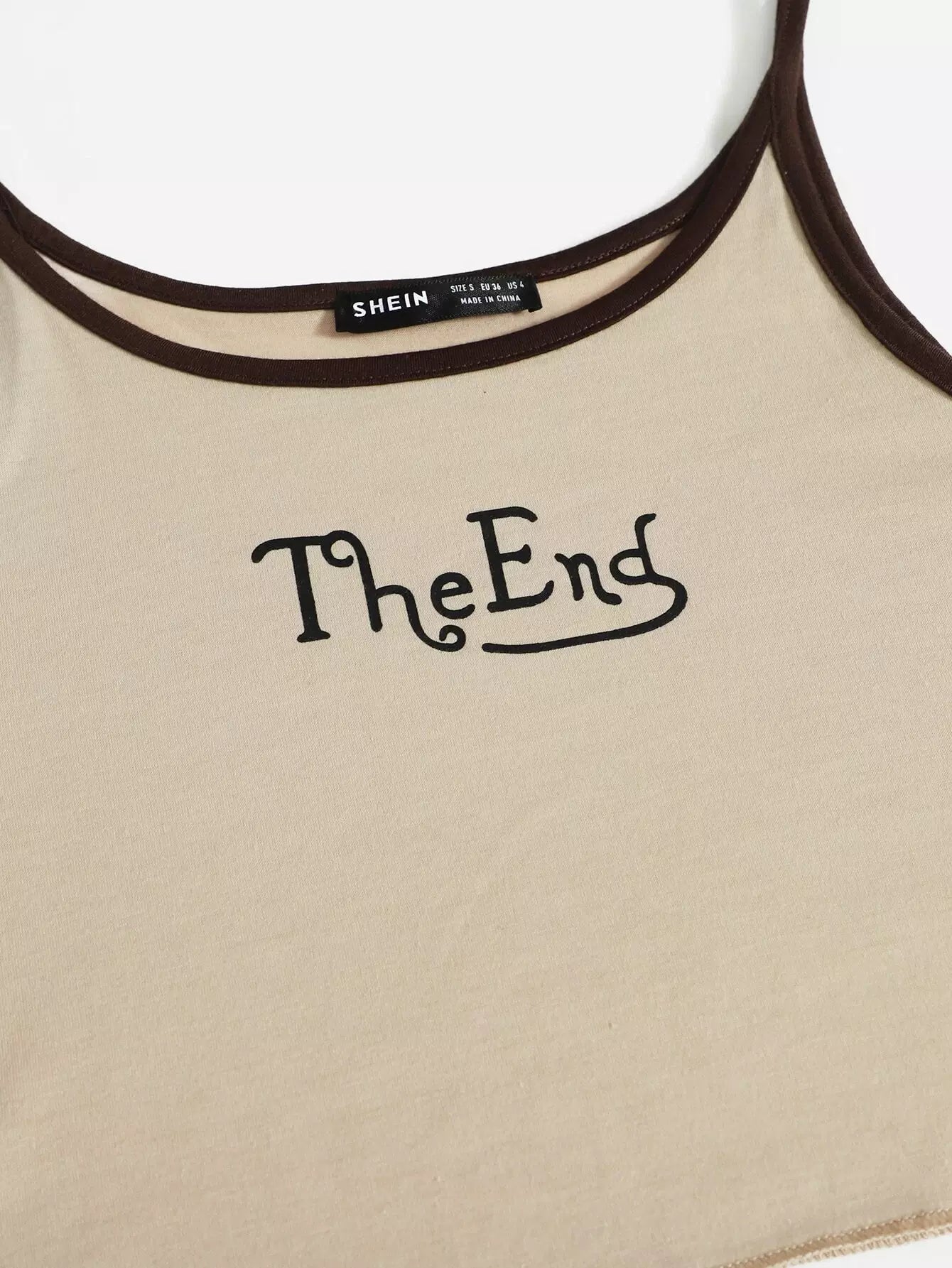 بلوزة كمي برسومات حروف متباينة ملزمة بلون مغاير