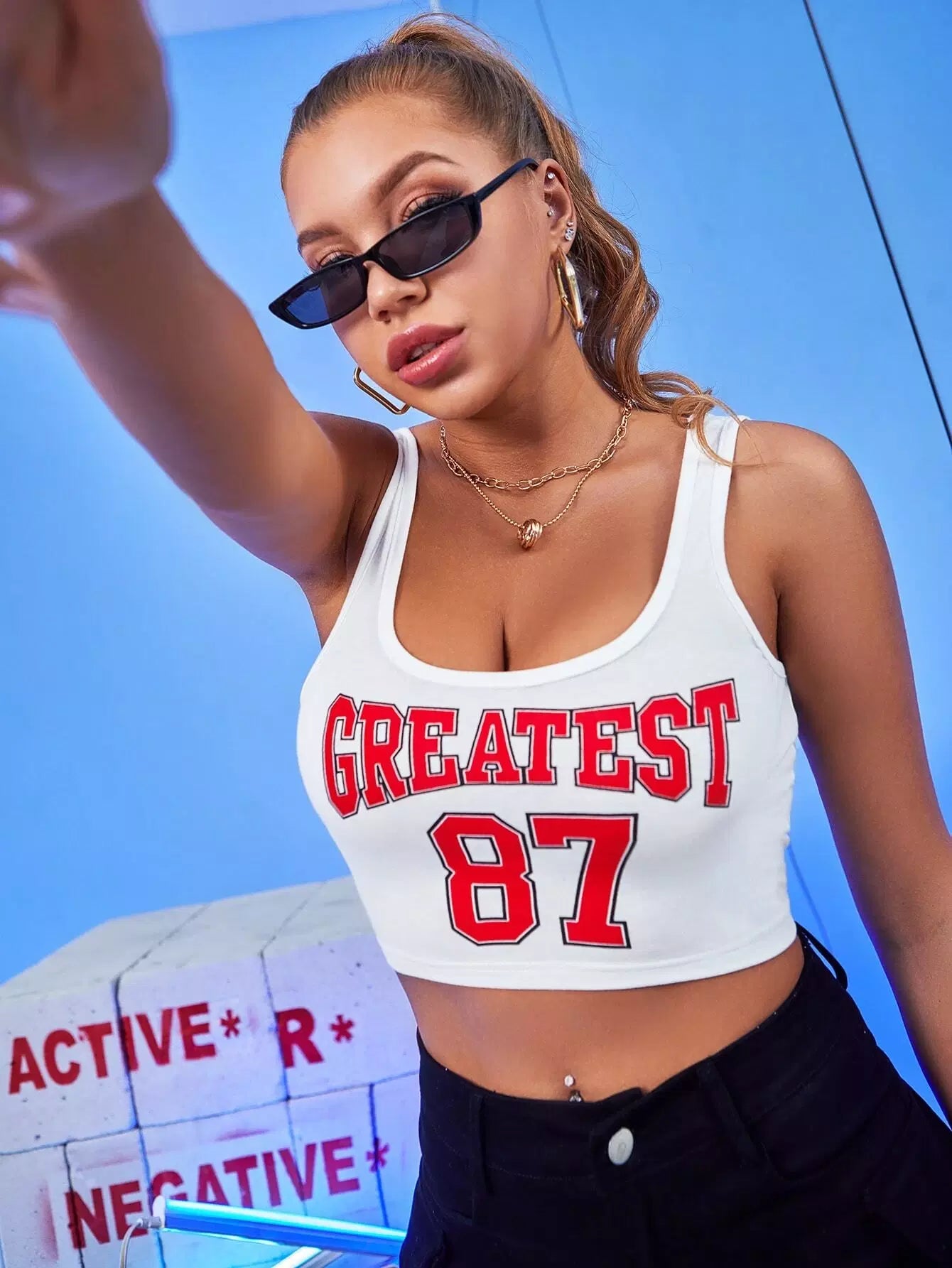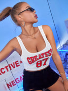 تيشيرت بدون أكمام قصير قصير برسومات على شكل حرف