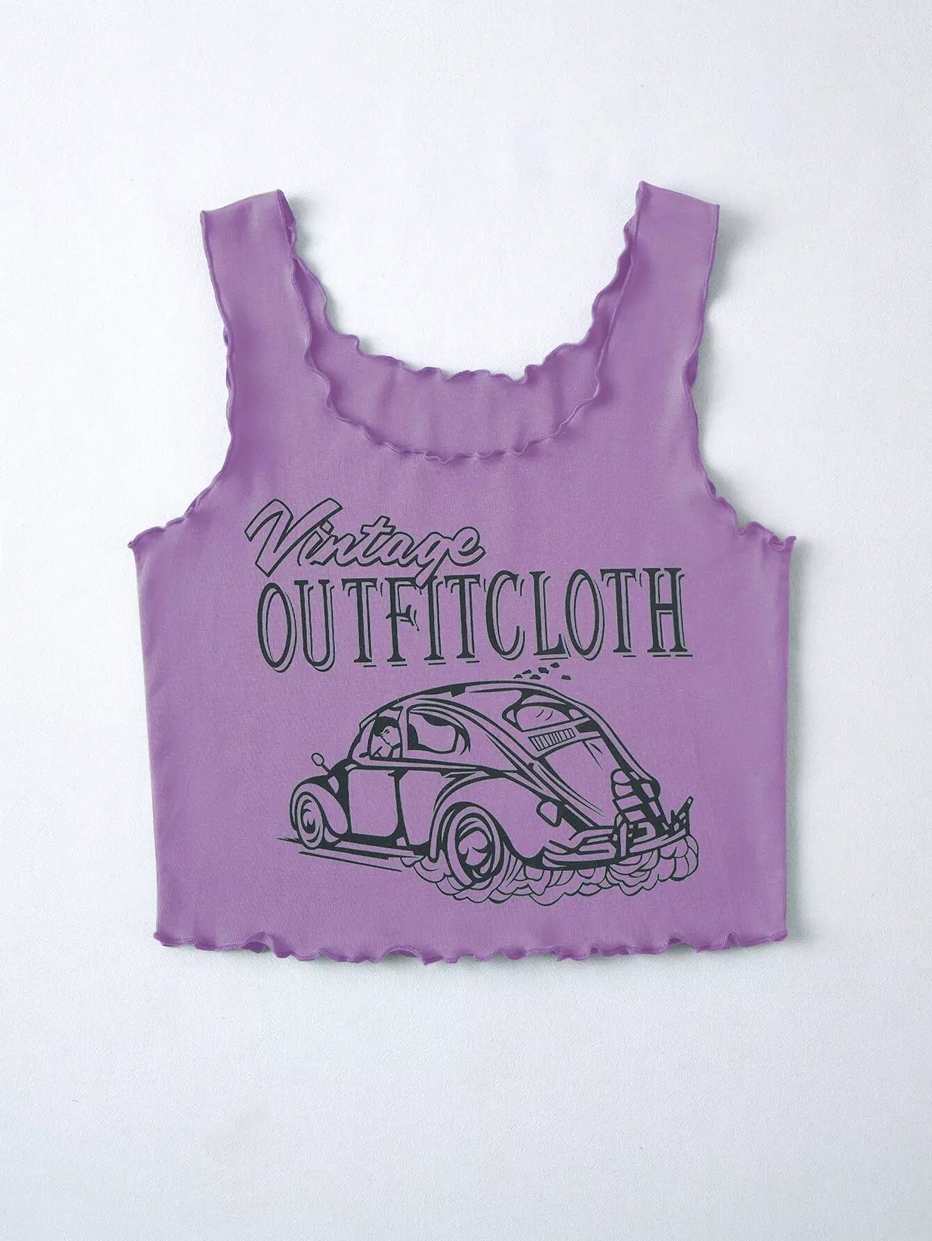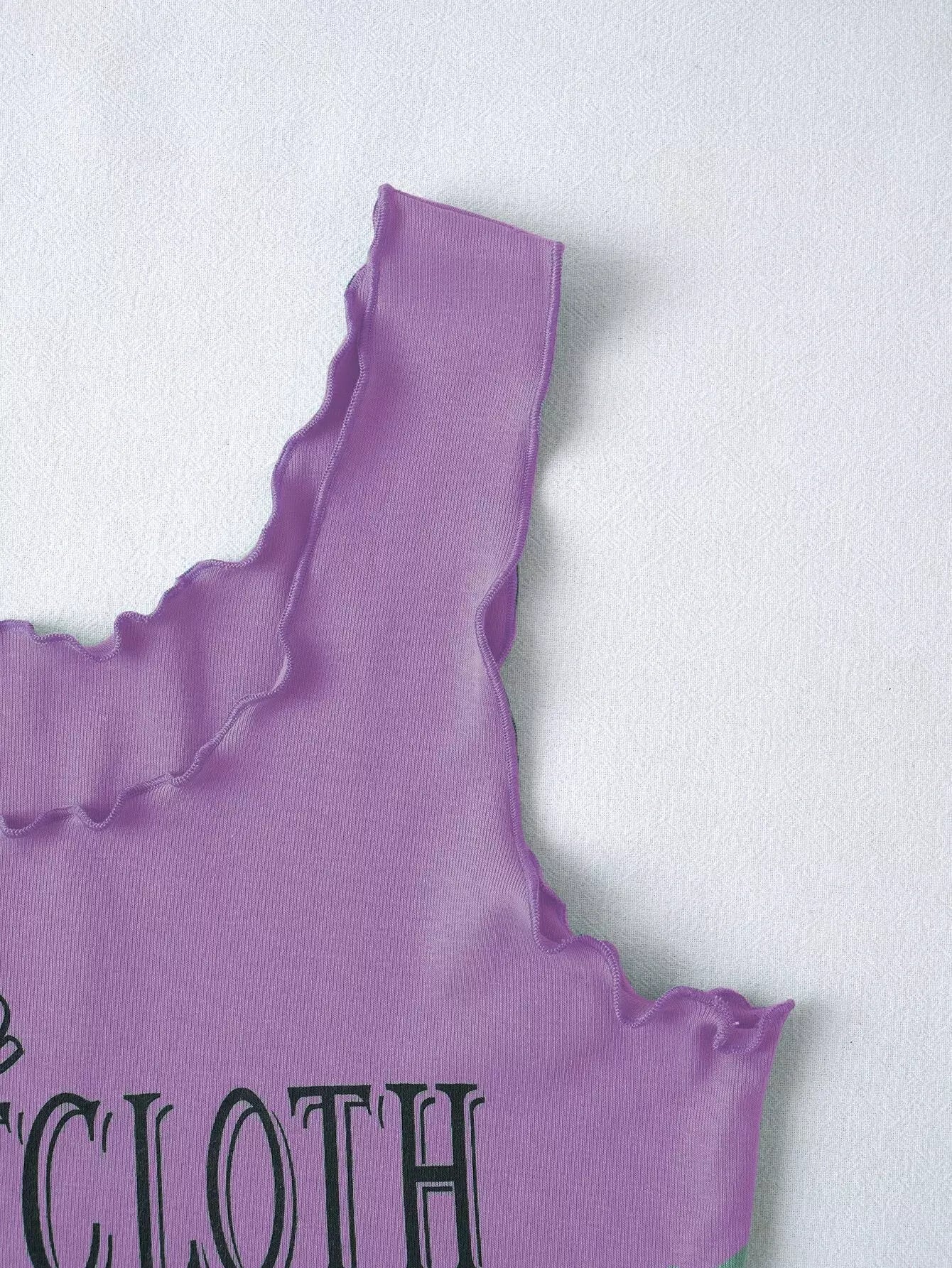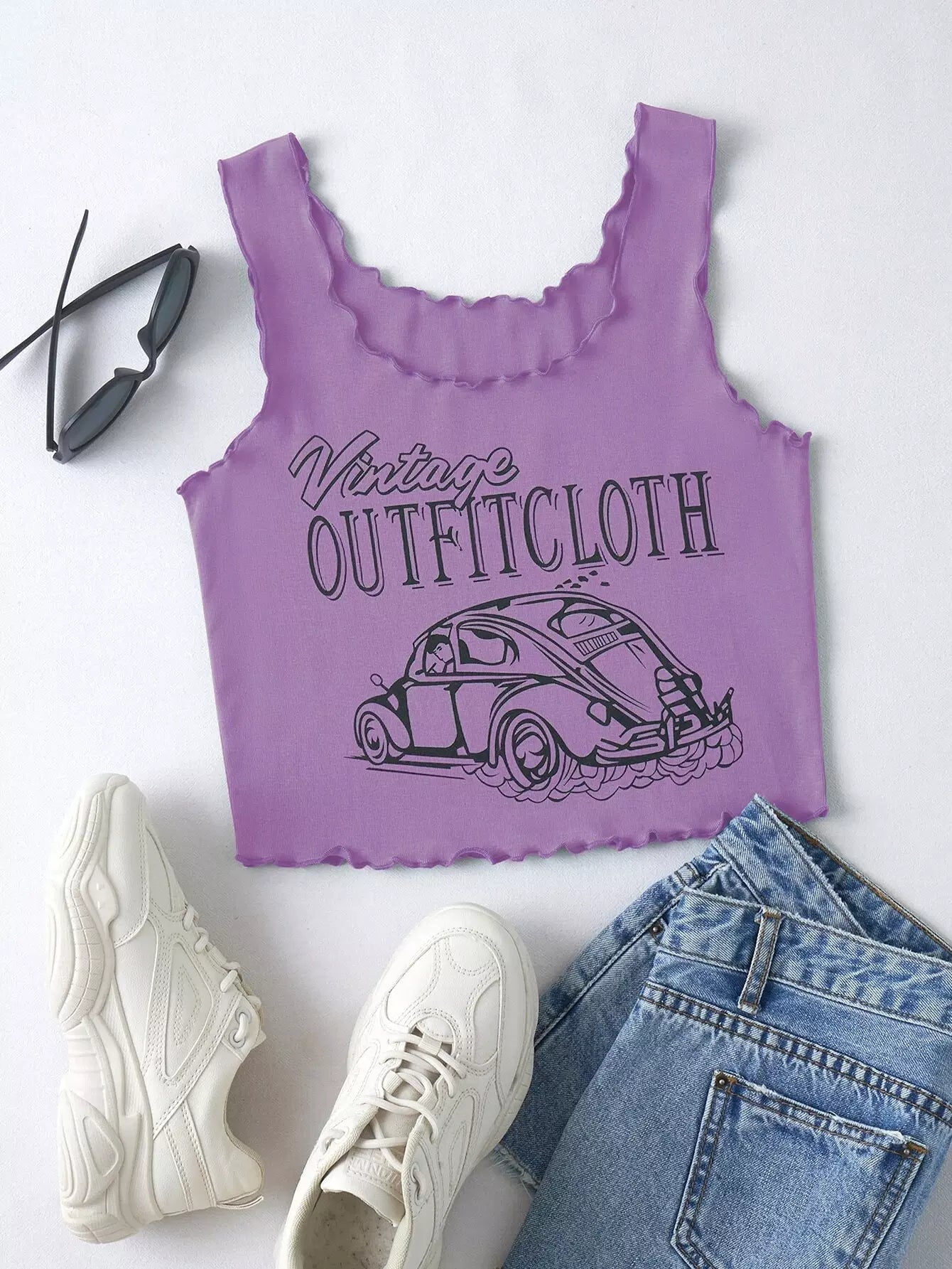 تيشيرت بدون أكمام مزين برسومات حروف على شكل خس