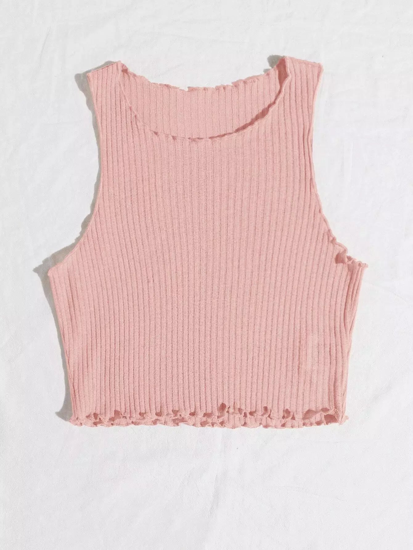 تانك بدون أكمام بنقوش رسومات على شكل ضلع محبوك بحروف
