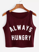 توب قصير قصير بدون أكمام بطبعة حروف