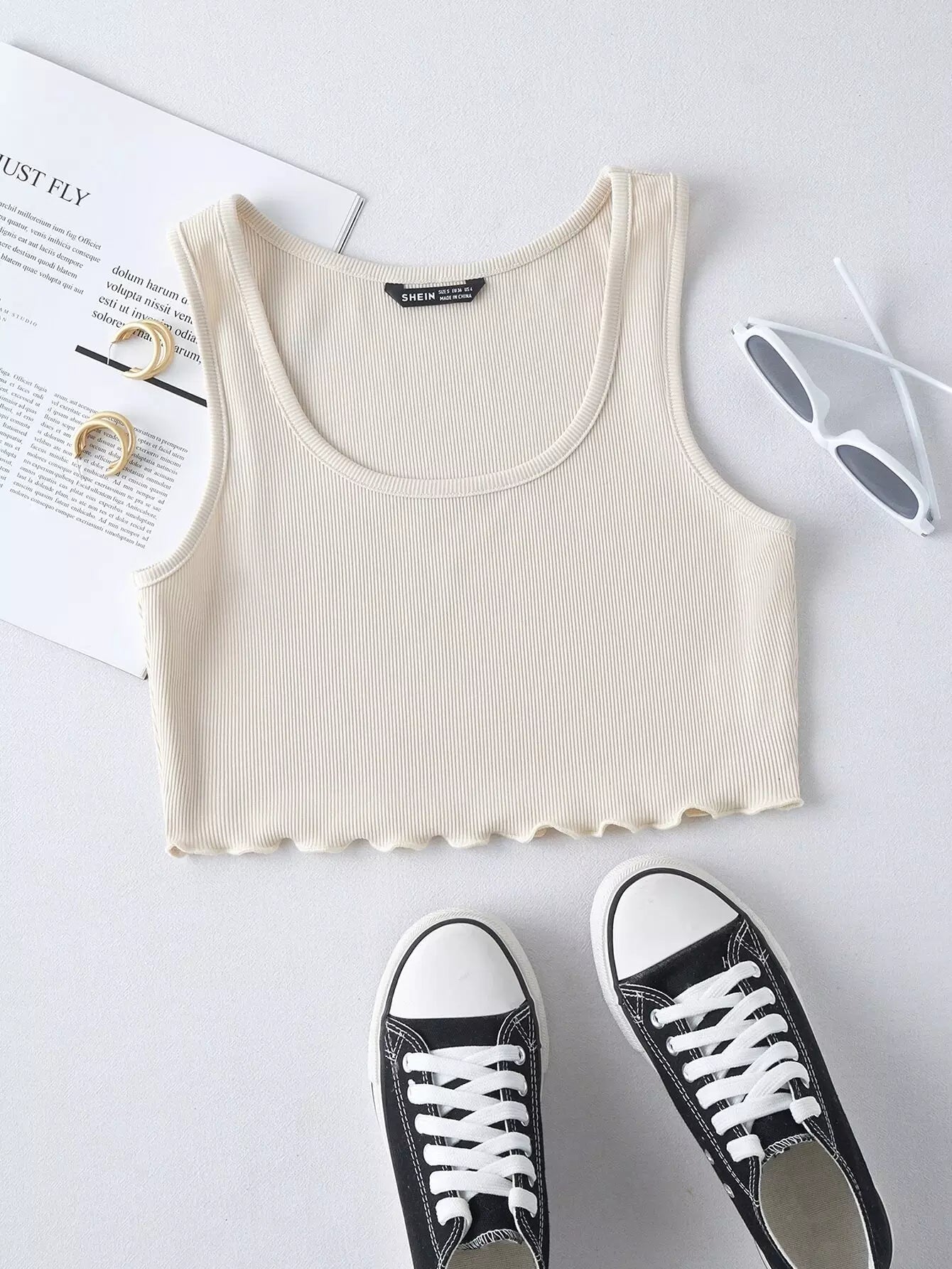 قميص بدون أكمام بدون أكمام سادة بحاشية خس