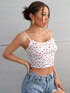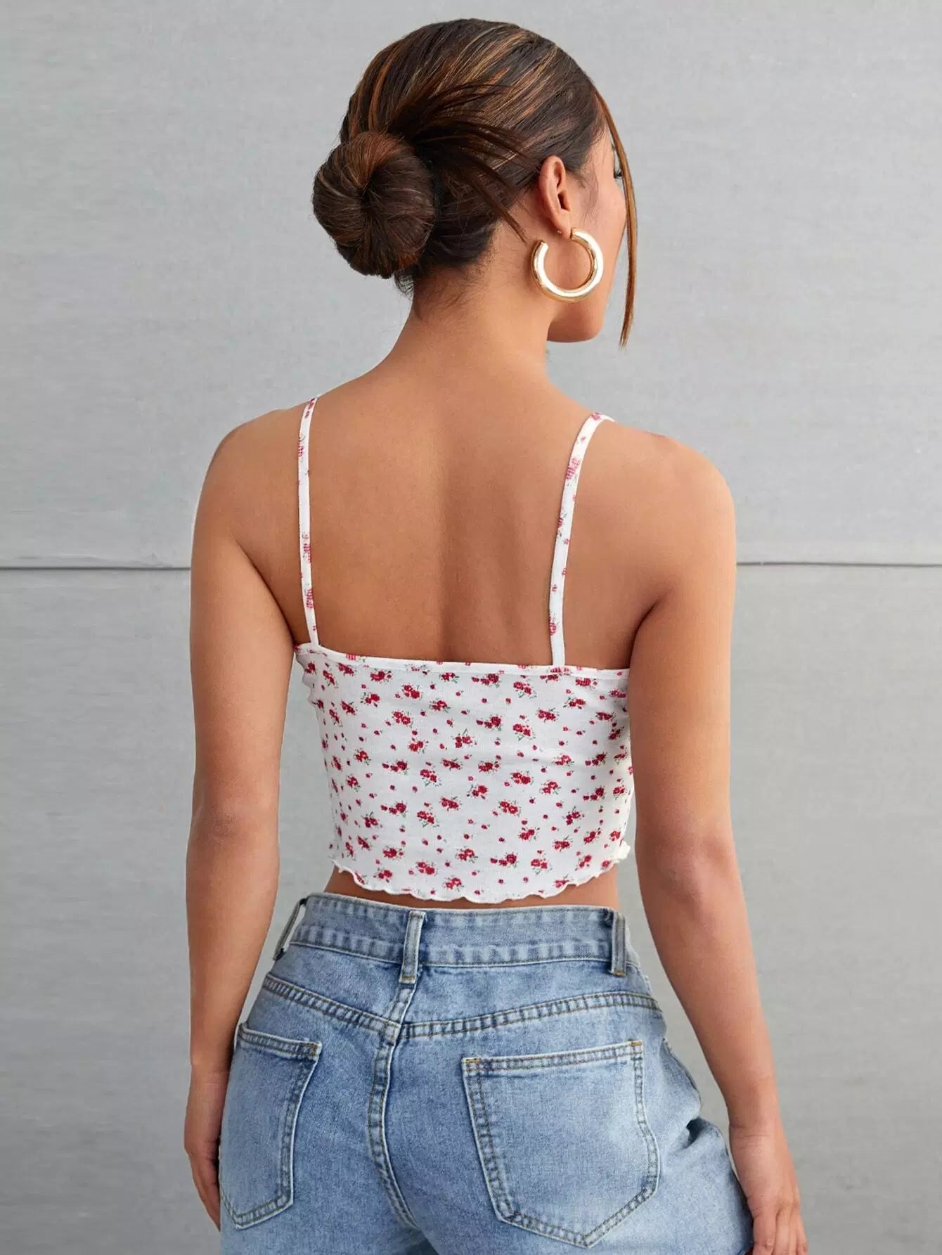 قميص قصير مزين بالخس مزين بنقوش الزهور