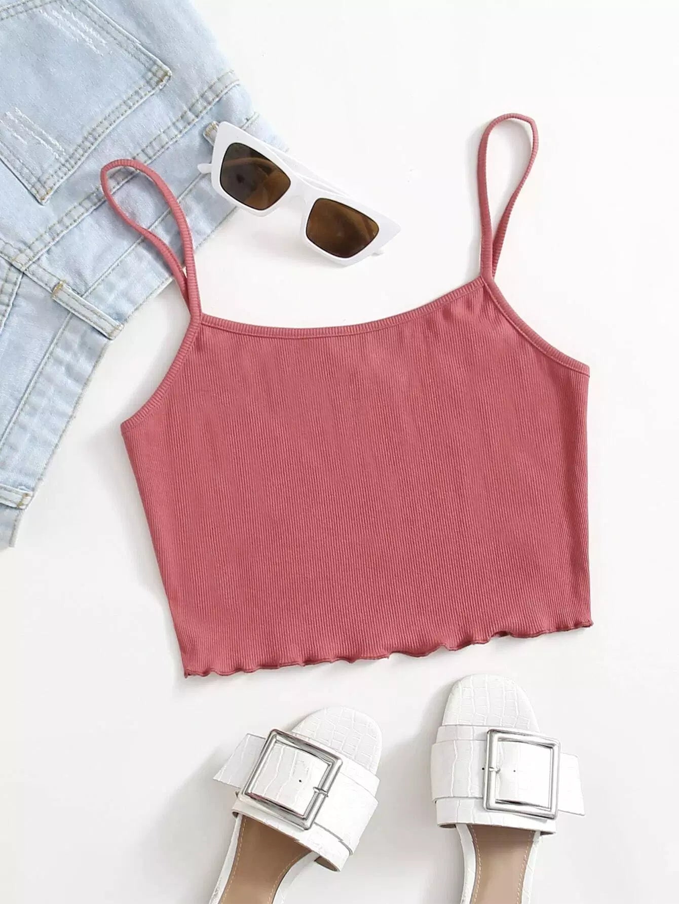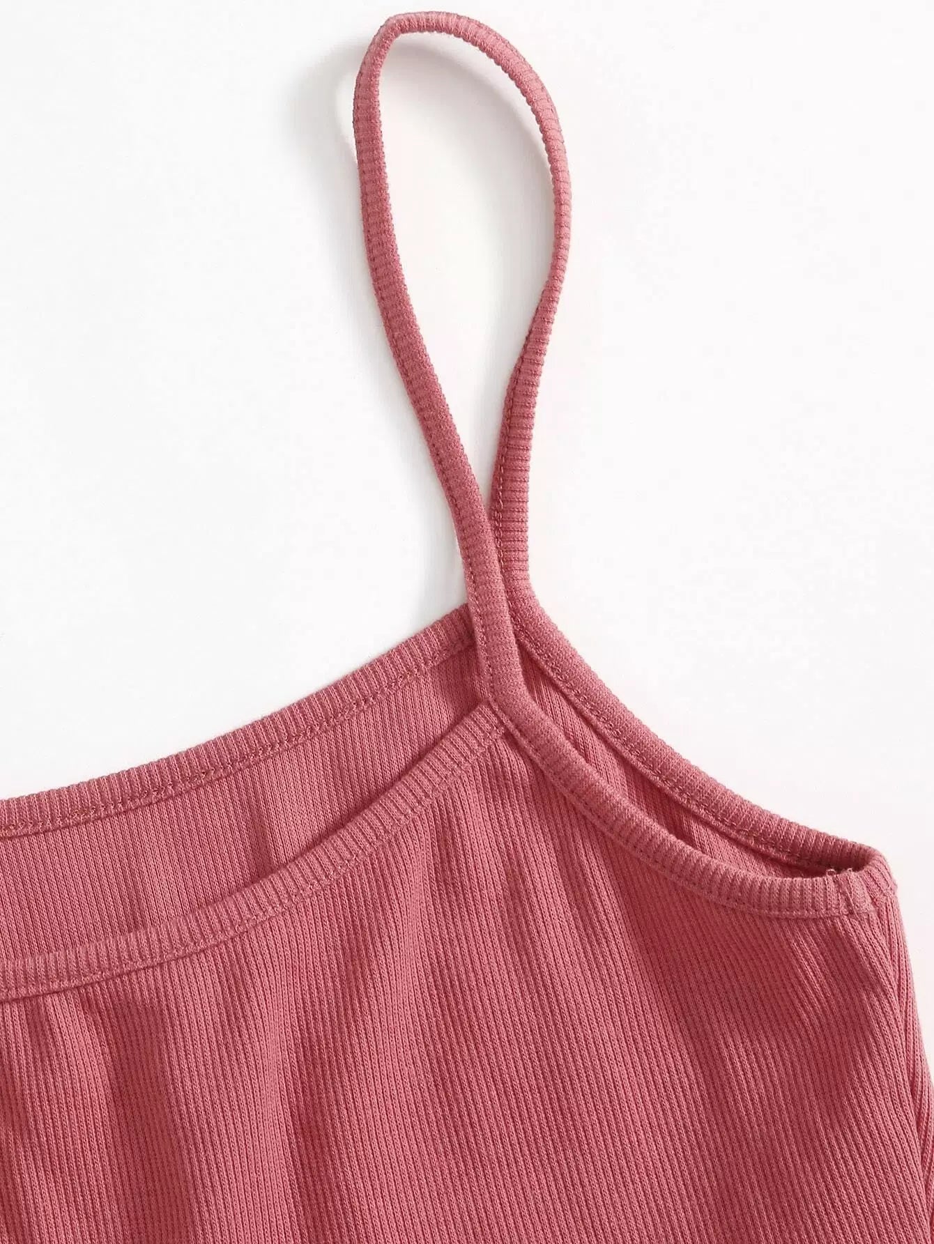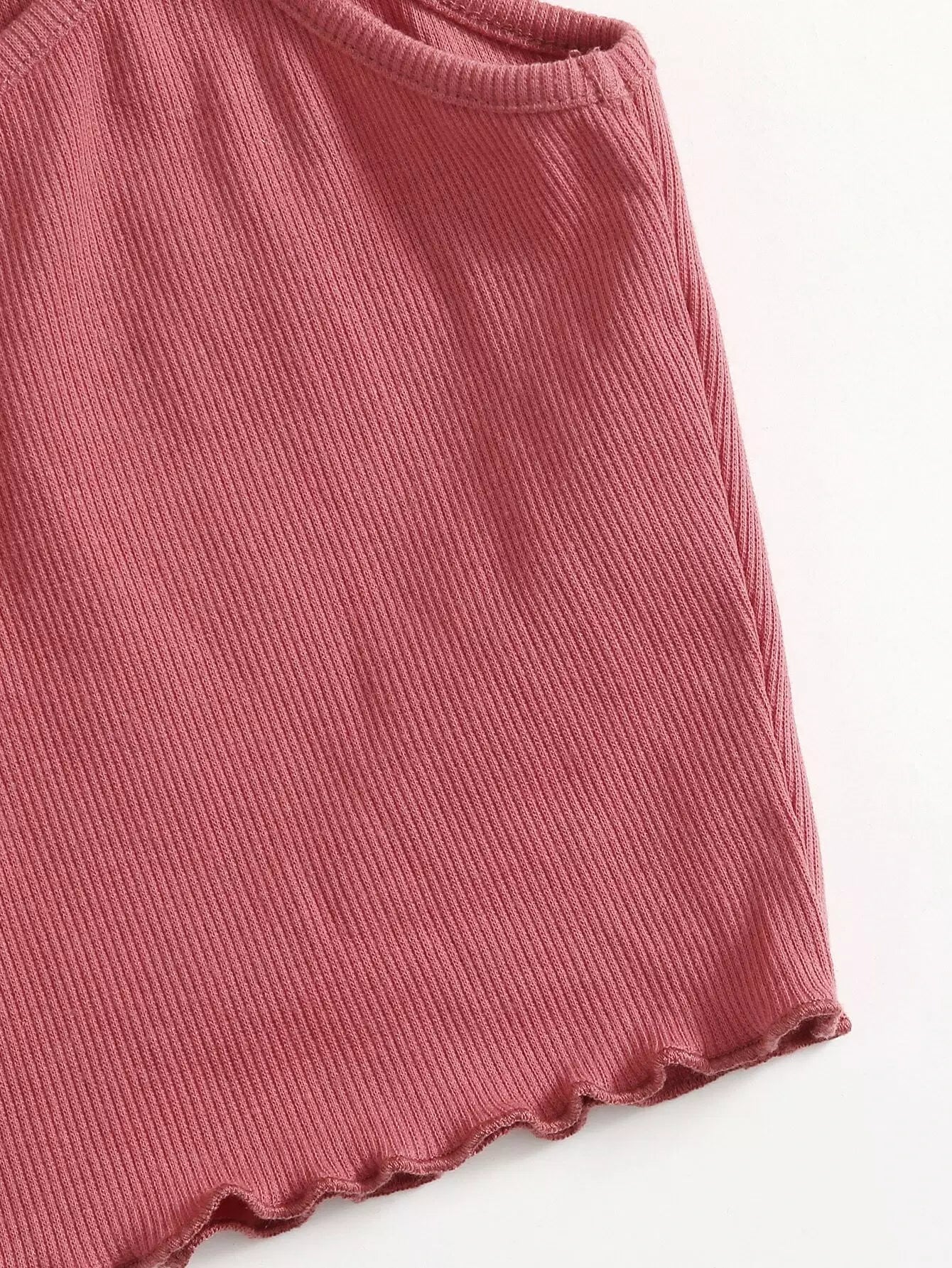 قميص قصير قصير محبوك على شكل ضلع محبوك بالخس