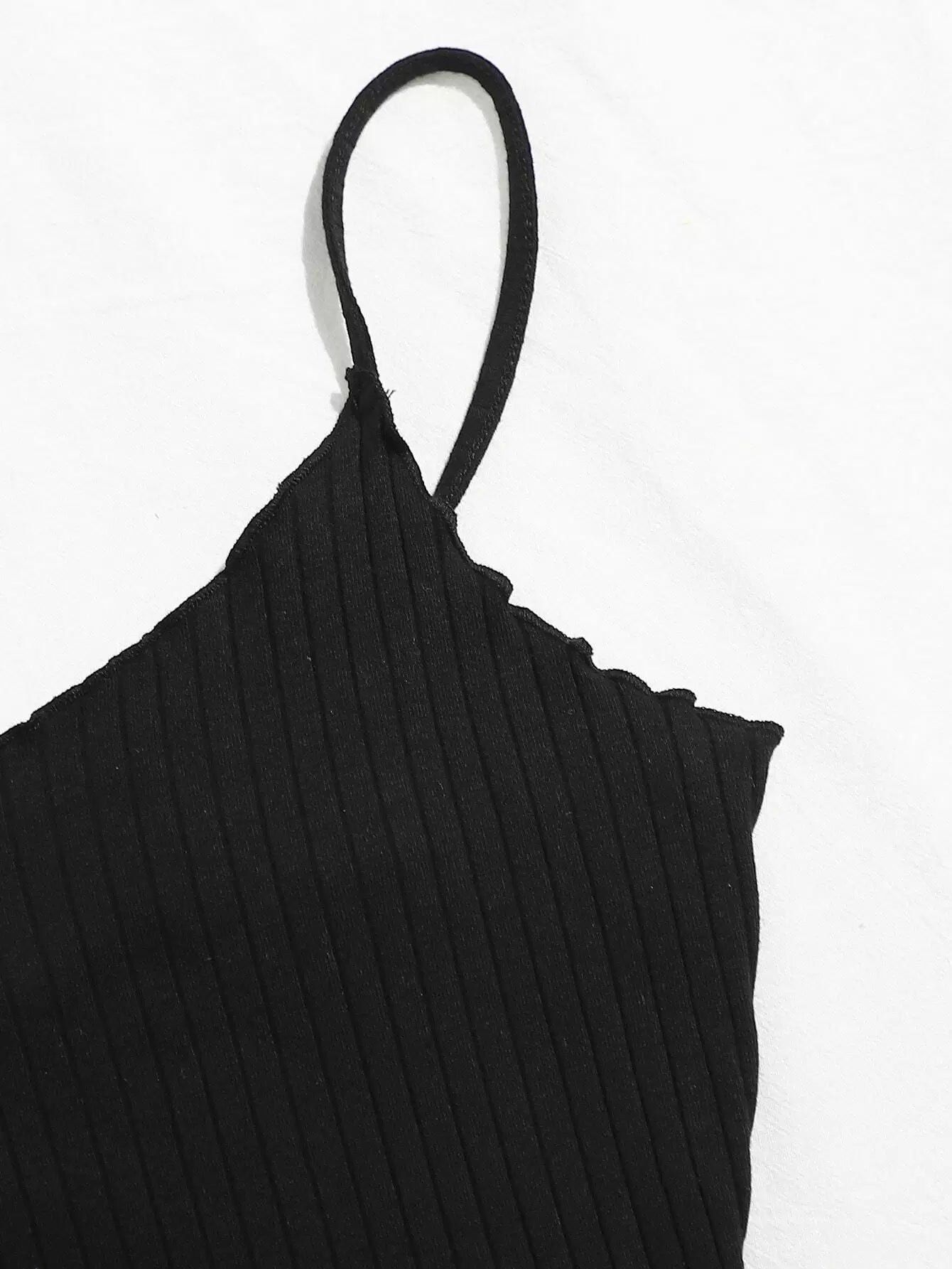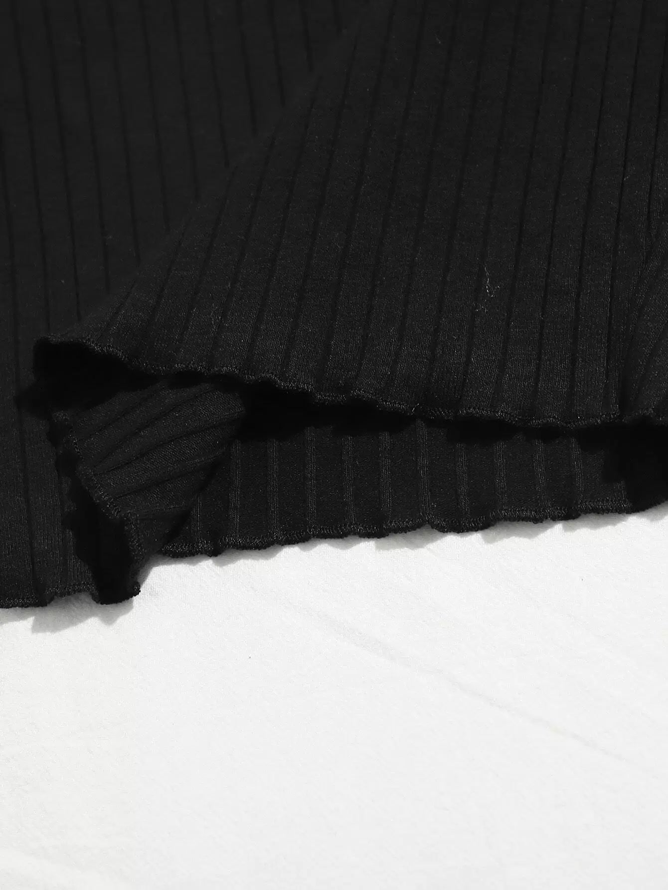 قميص قصير قصير محبوك على شكل ضلع محبوك بالخس