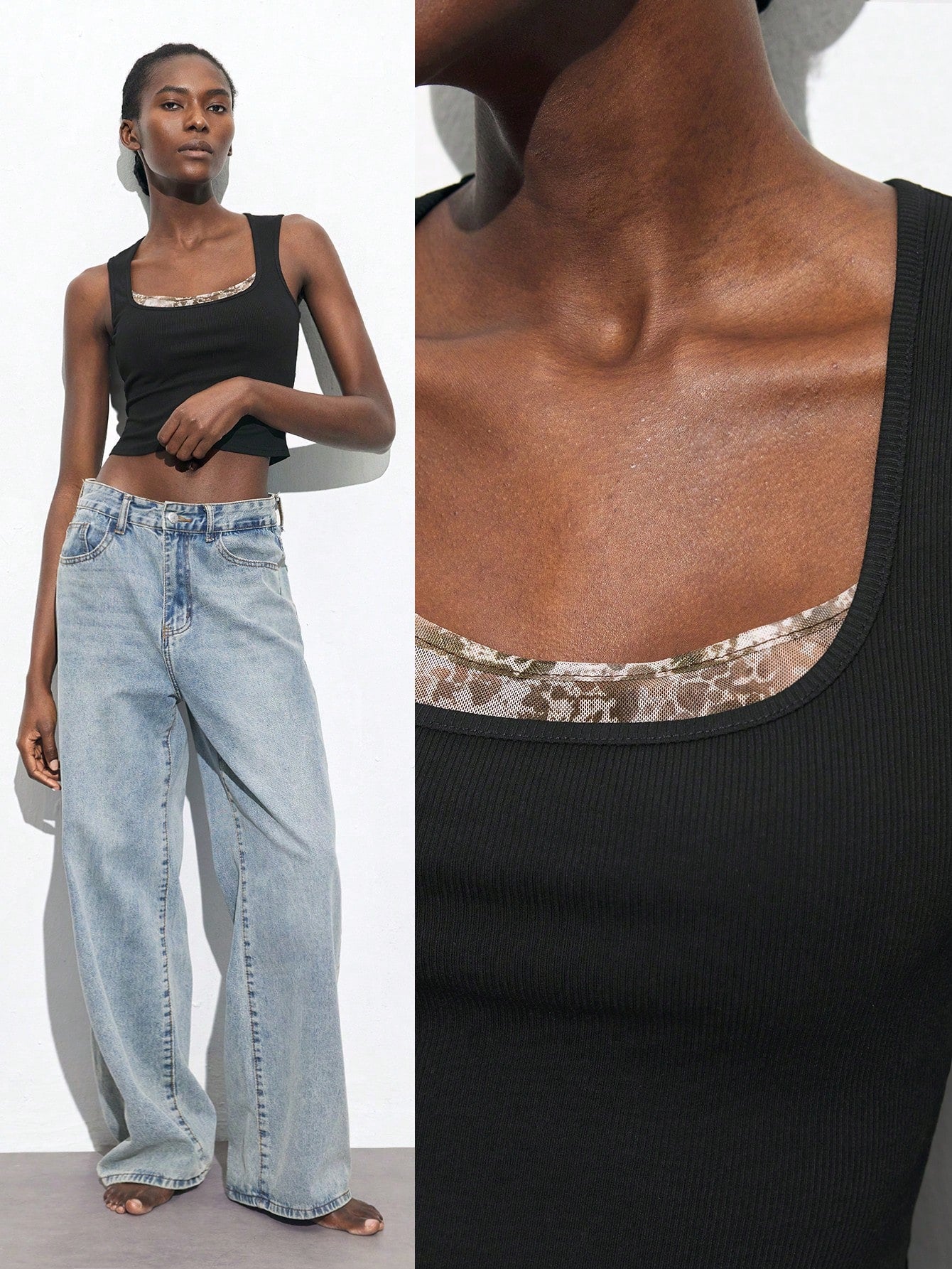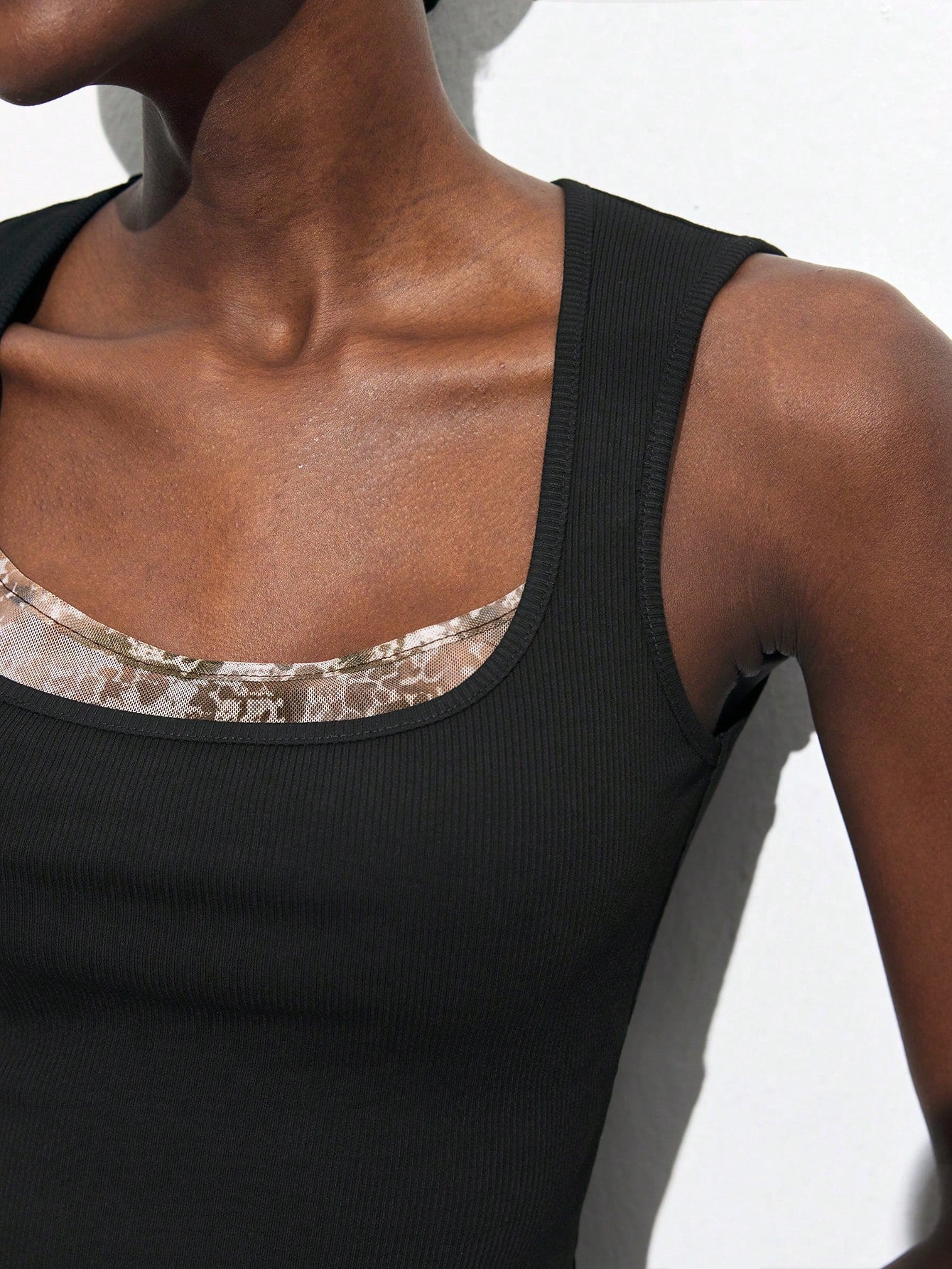 Maija New Spring And Summer Black Splicing Leopard Print 2 In 1 Waist Sexy Urban Vacation Modern Elegant