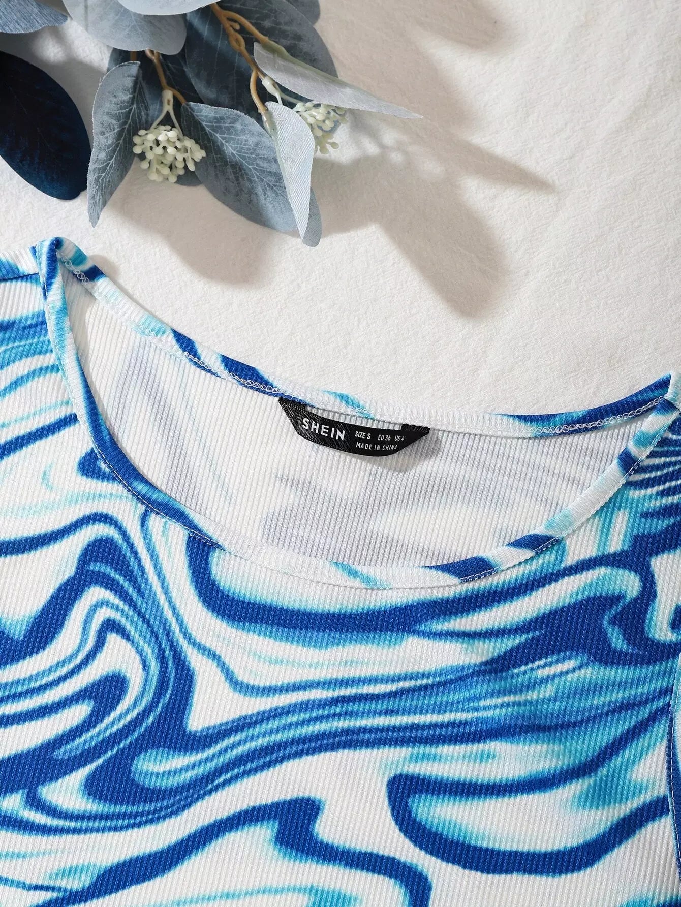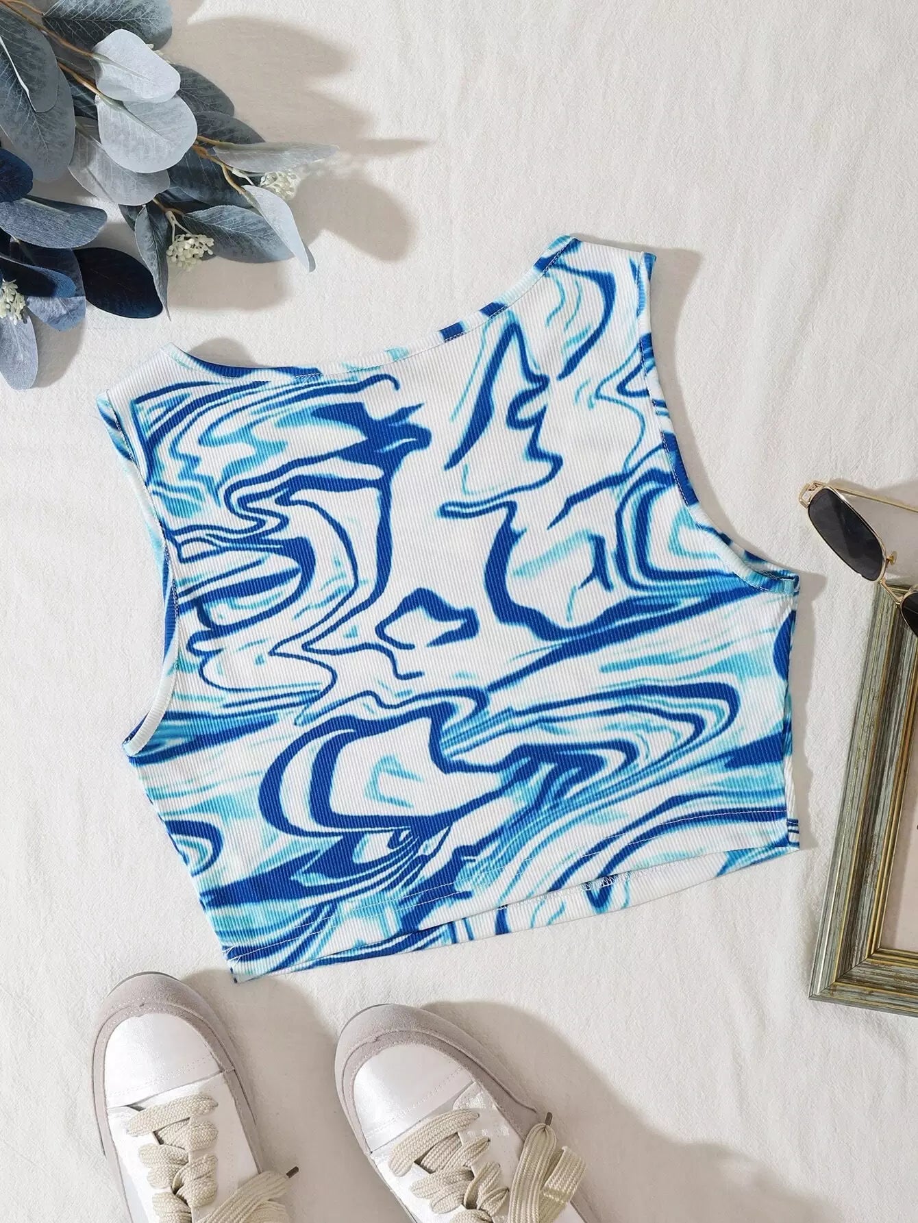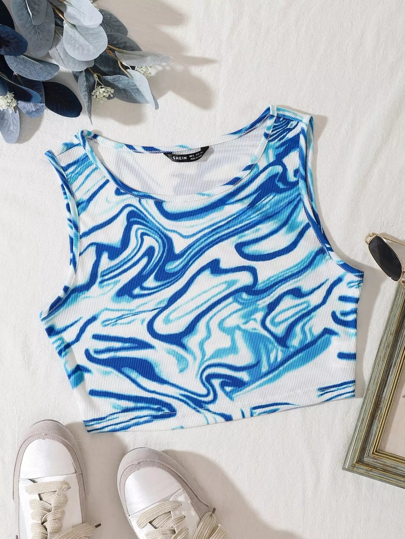 تانك بدون أكمام رخامي محبوك على شكل ضلع رخامي