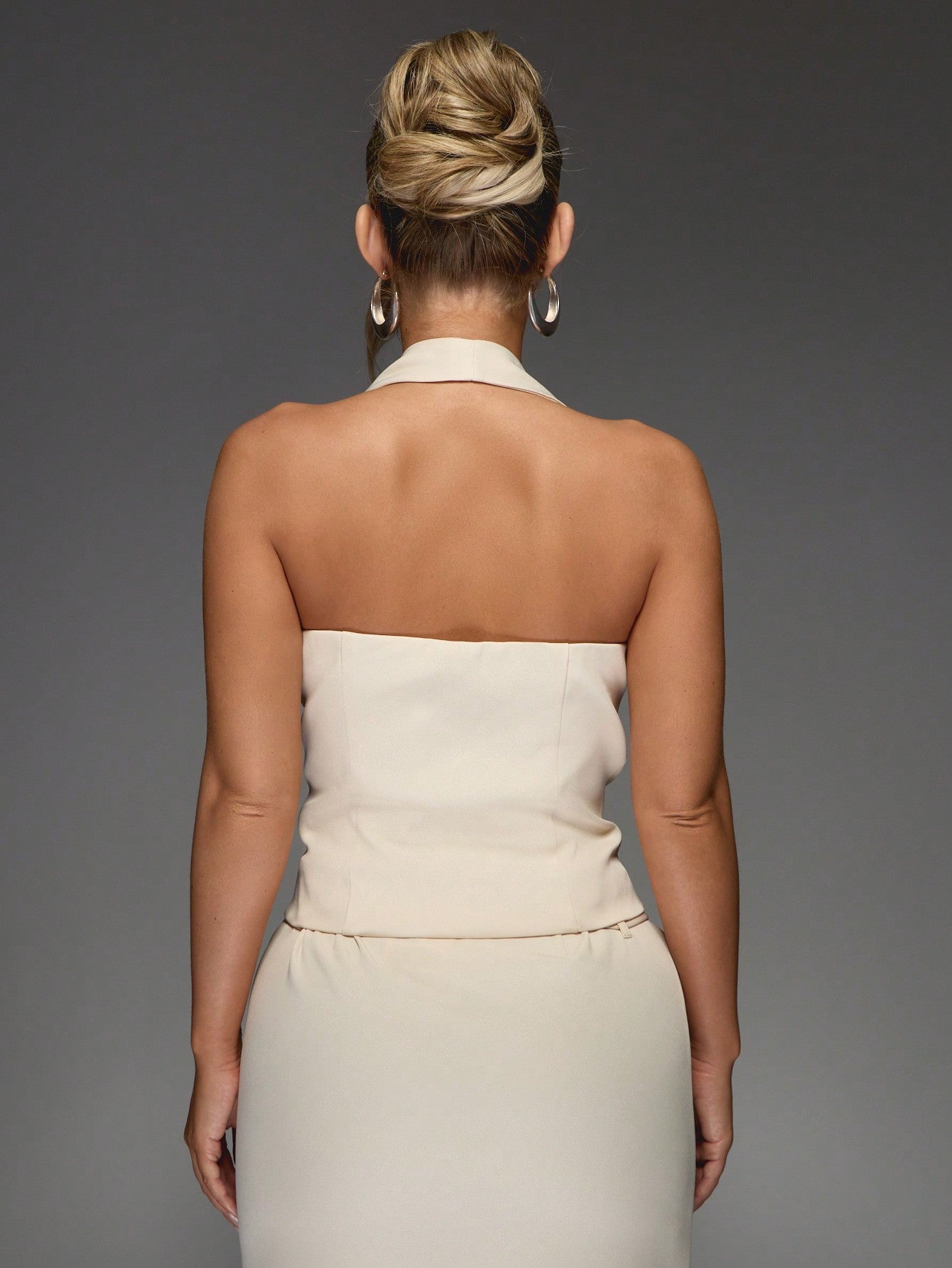 MISSGUIDED صدرية أنيقة بفتحة رقبة على شكل هالتر مع تفاصيل مشبك جانبي وتصميم مطوي ملفوف من الأمام