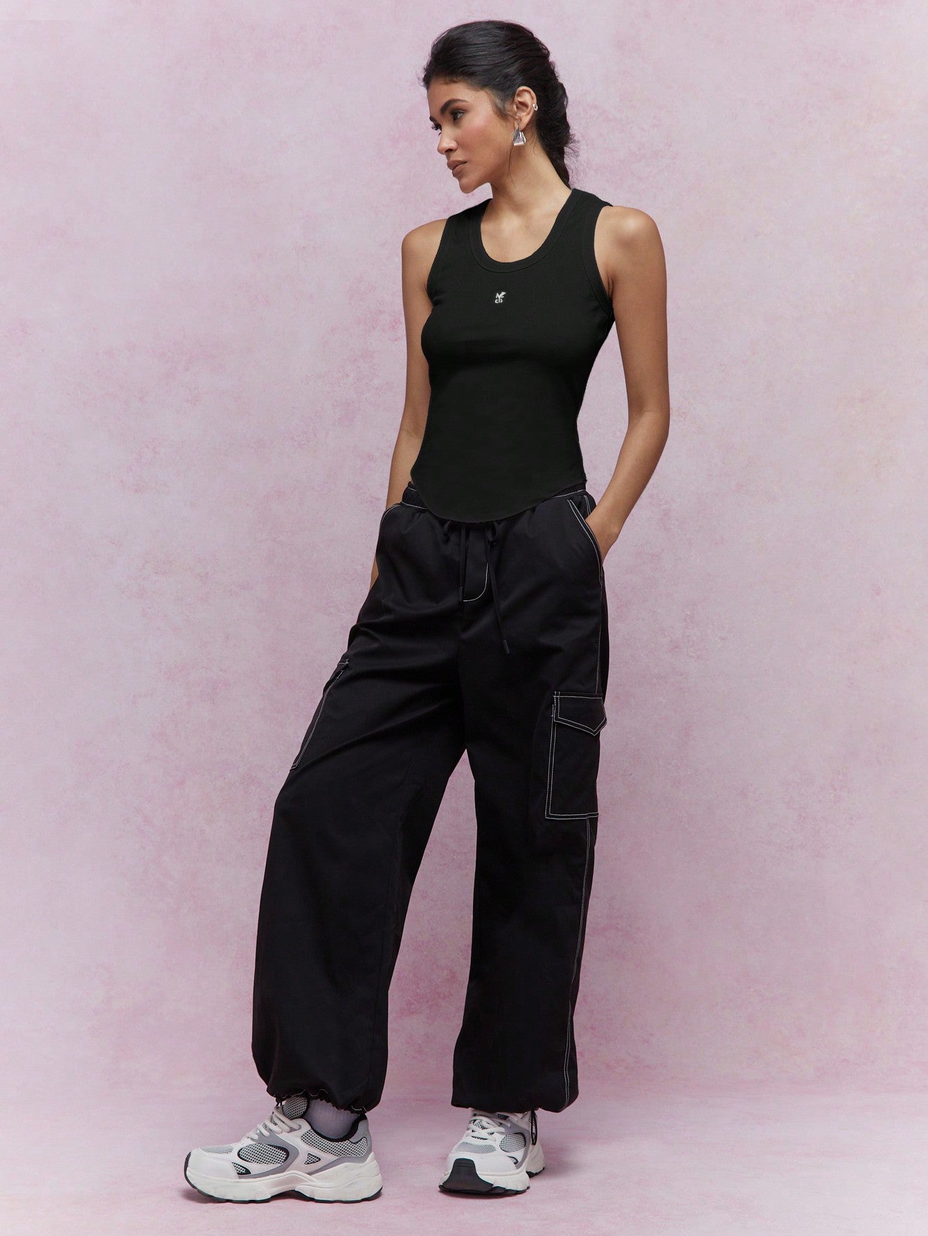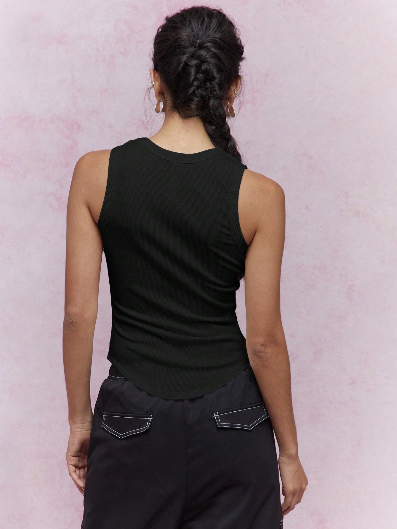 تيشيرت بدون أكمام من MISSGUIDED بشعار مطرز وحافة منحنية مضلعة