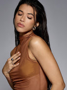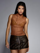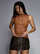MISSGUIDED Sleeveless Mesh Tank Top High Neck Form Fitting Ruched Side Draped Evening Cocktail Party