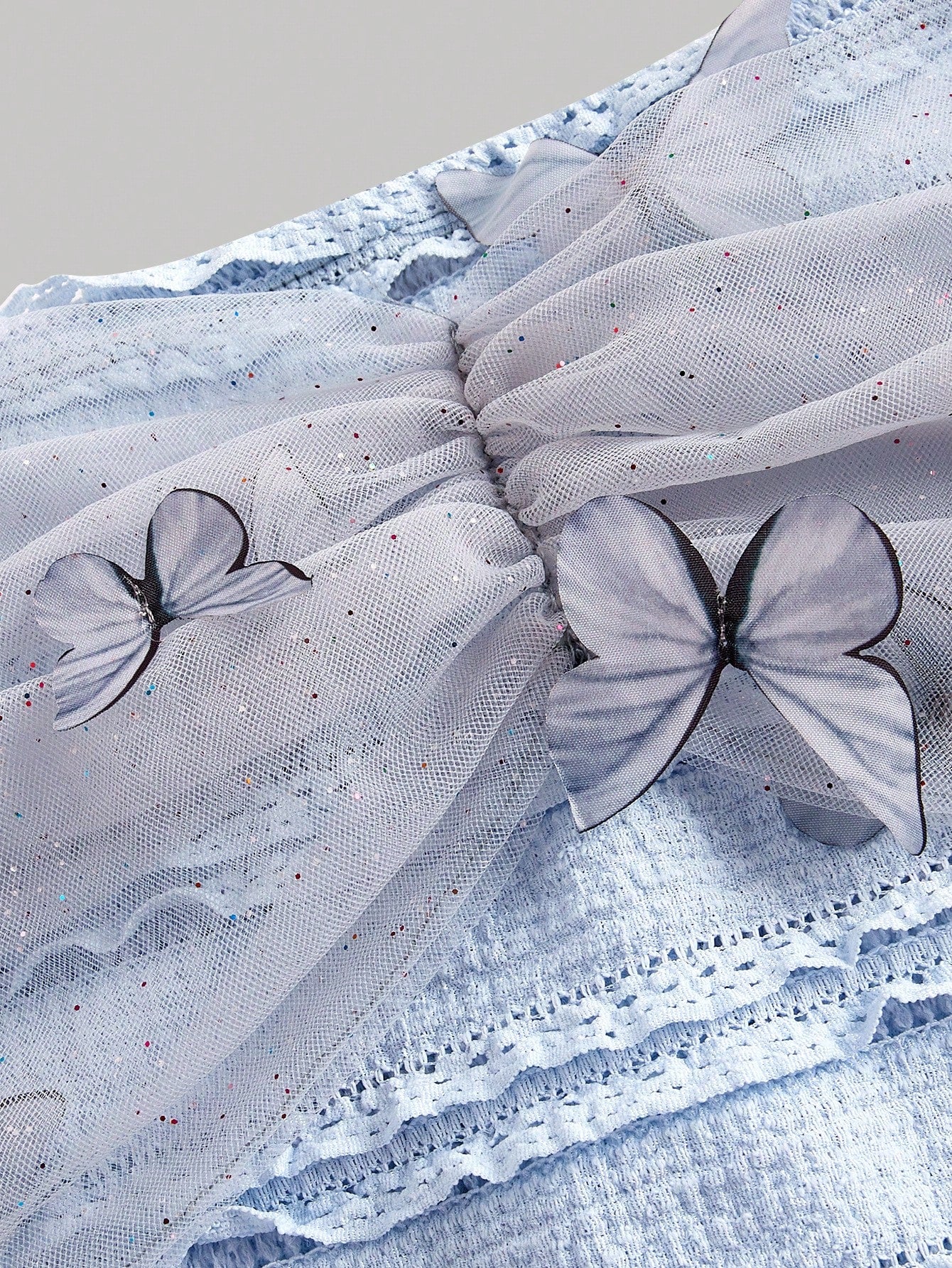 بلوزة صيفية لطيفة للفتيات من MOD بتصميم فراشة زرقاء وسلسلة لؤلؤية