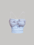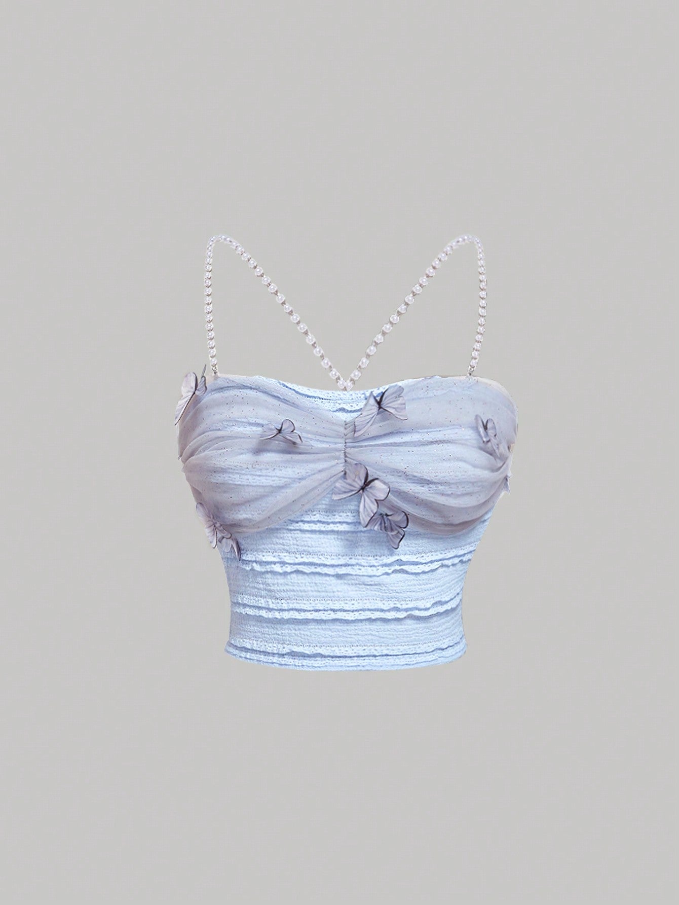 MOD Blue Butterfly Mesh Pearl Chain Cute Girls Summer Tank Top