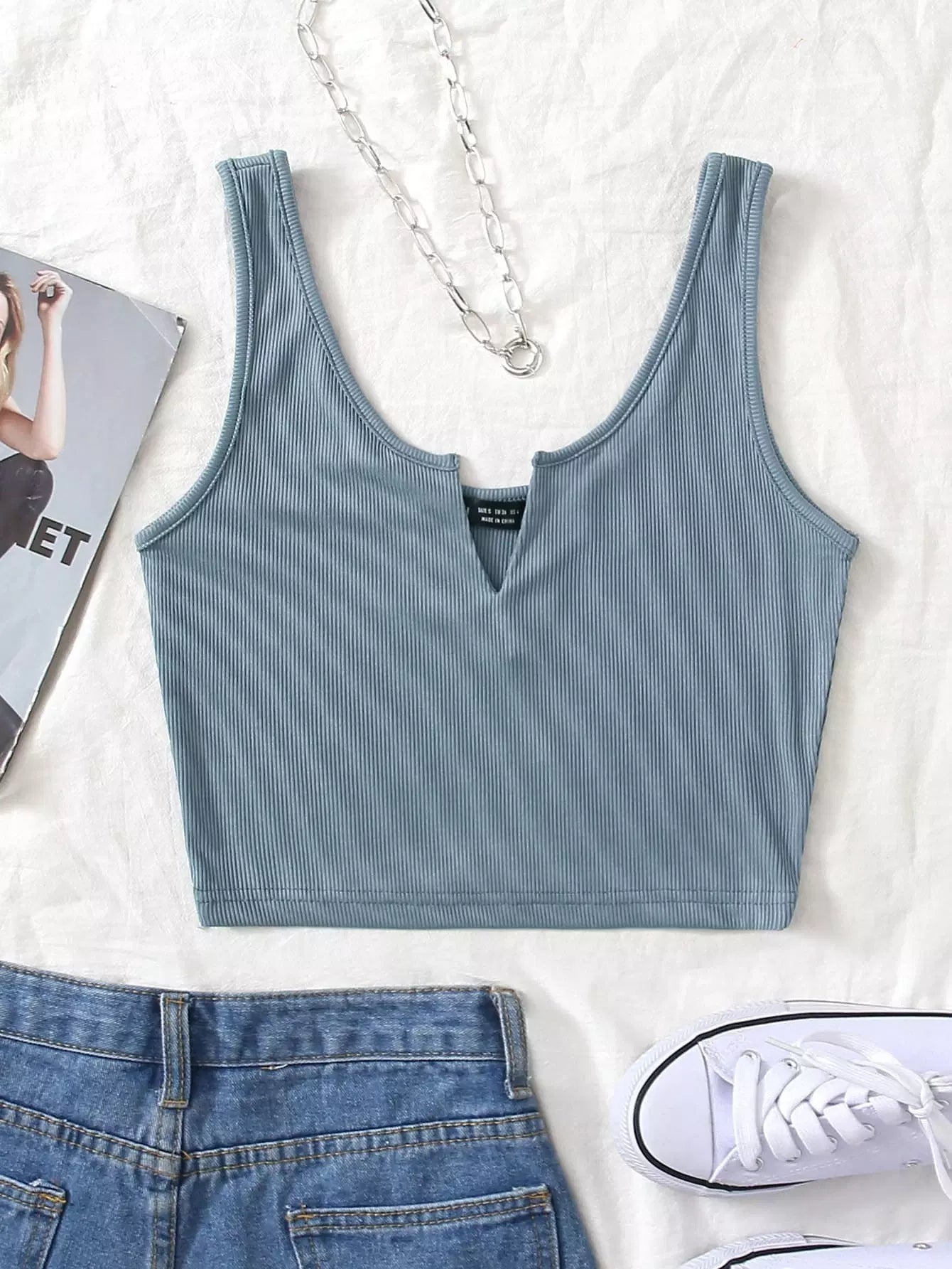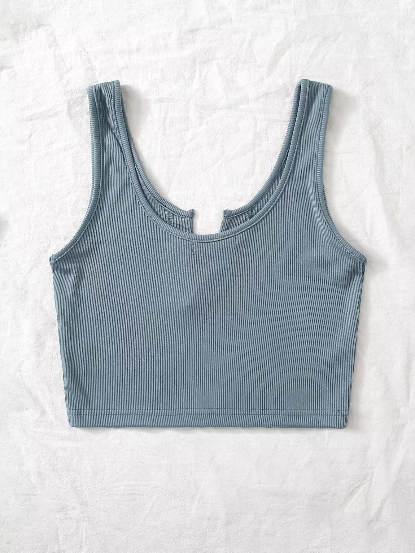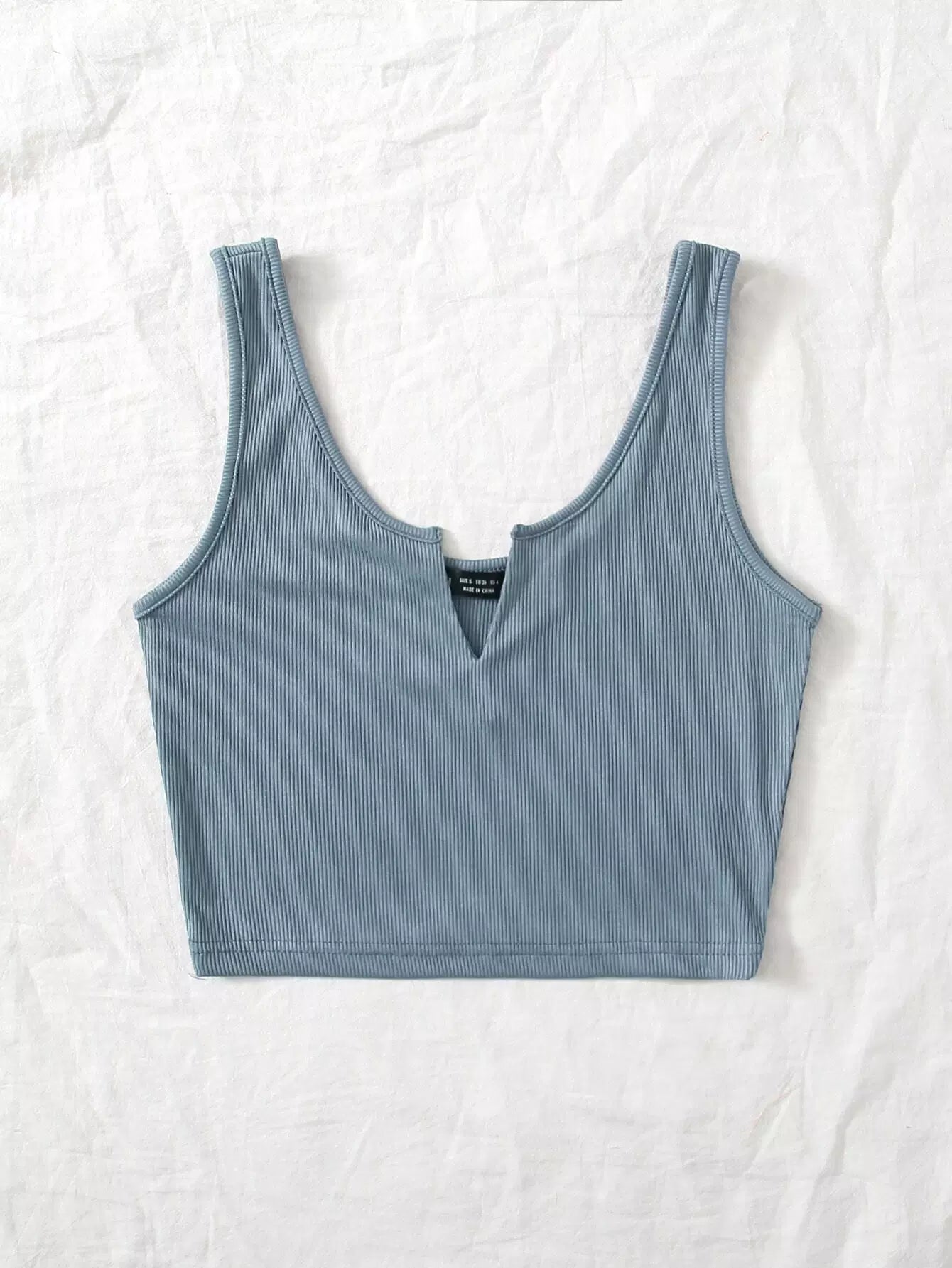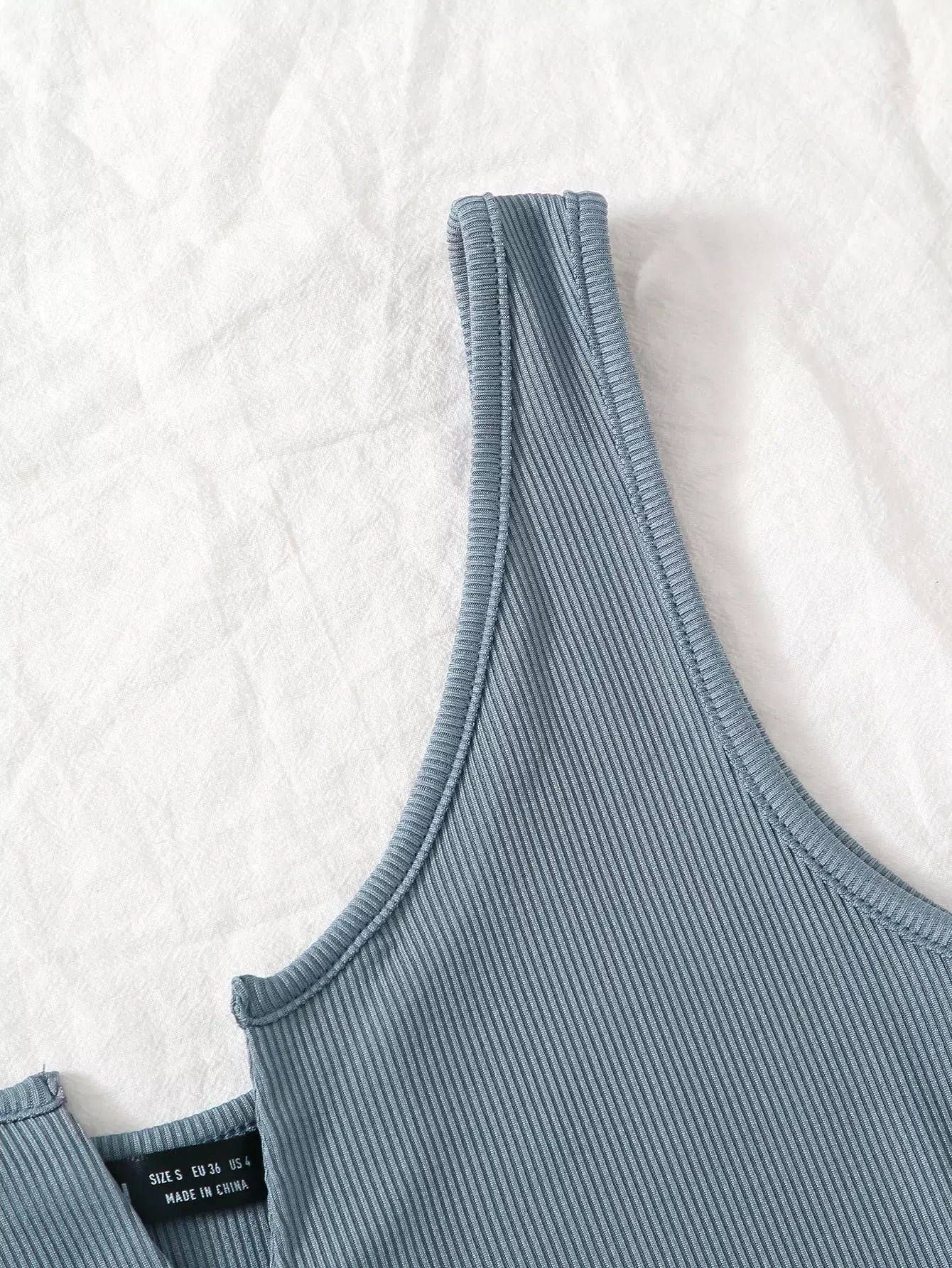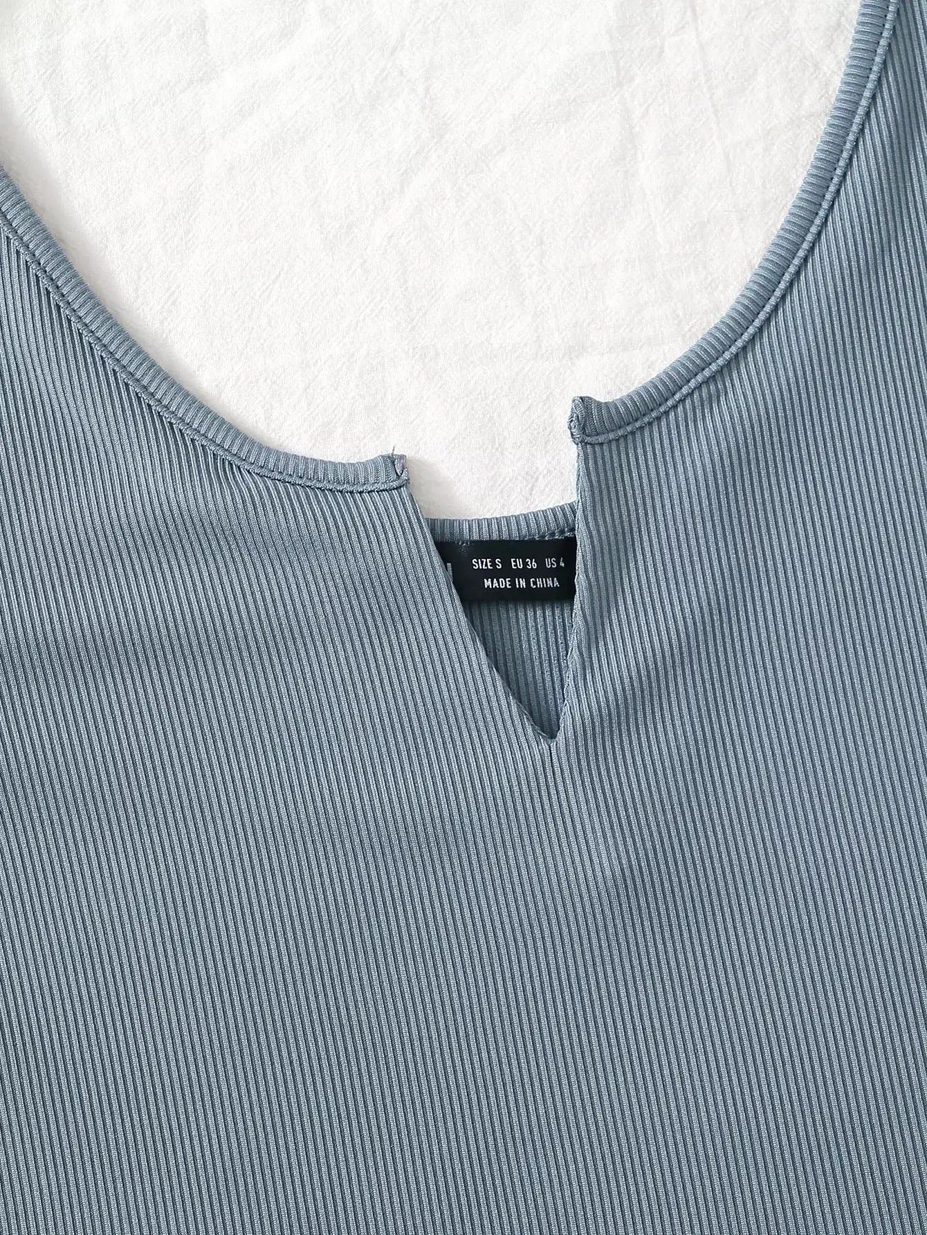 تي شيرت برقبة من دون أكمام بفتحة عنق على شكل ضلع محبوك